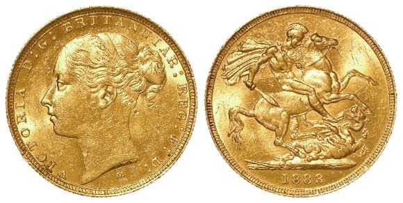 Sovereign 1883M St George (Melbourne, Australia) complete WW, S.3857C, GEF, tiny marks.