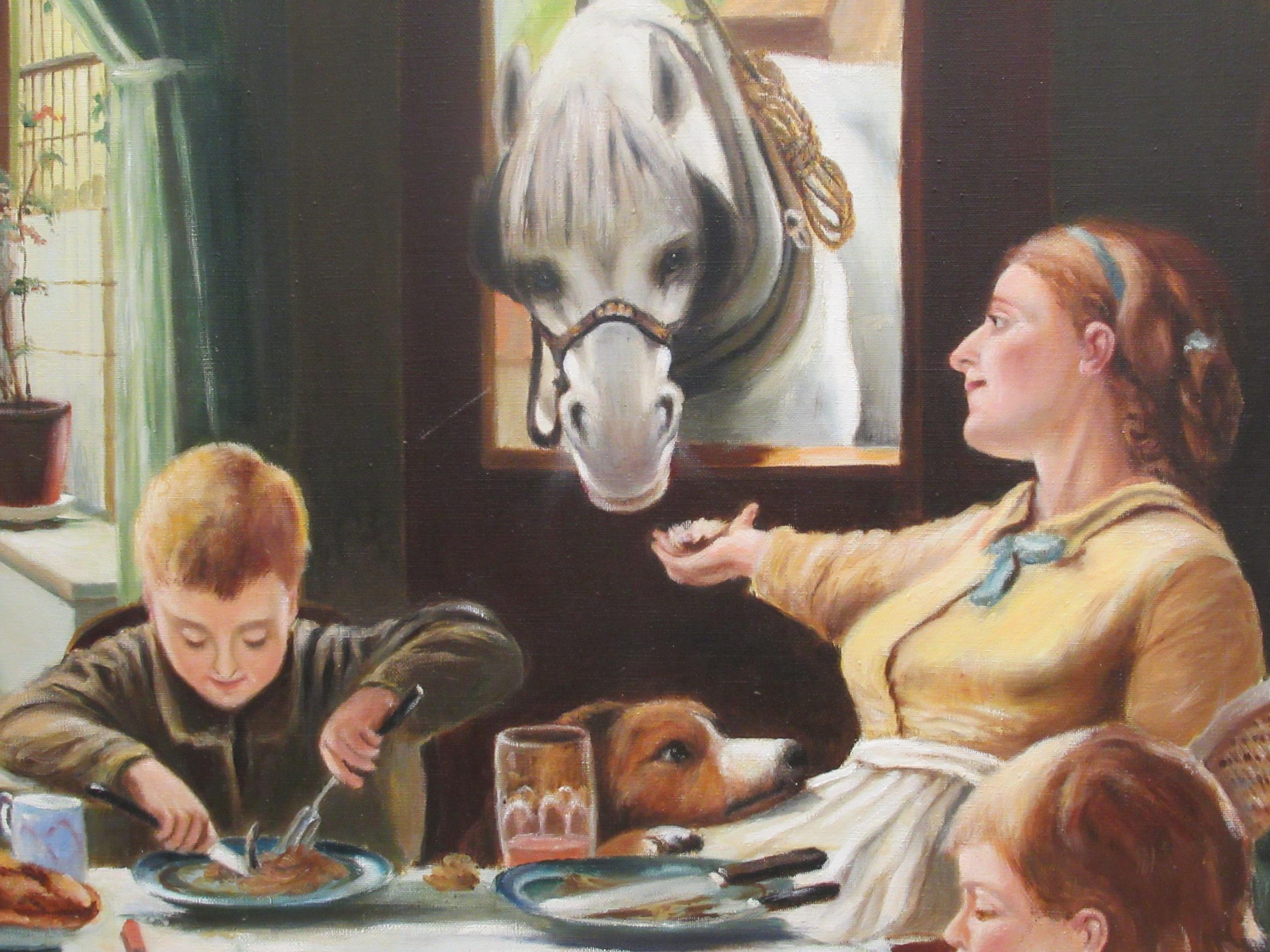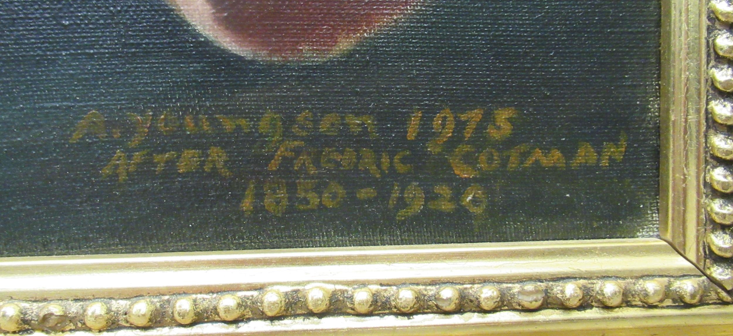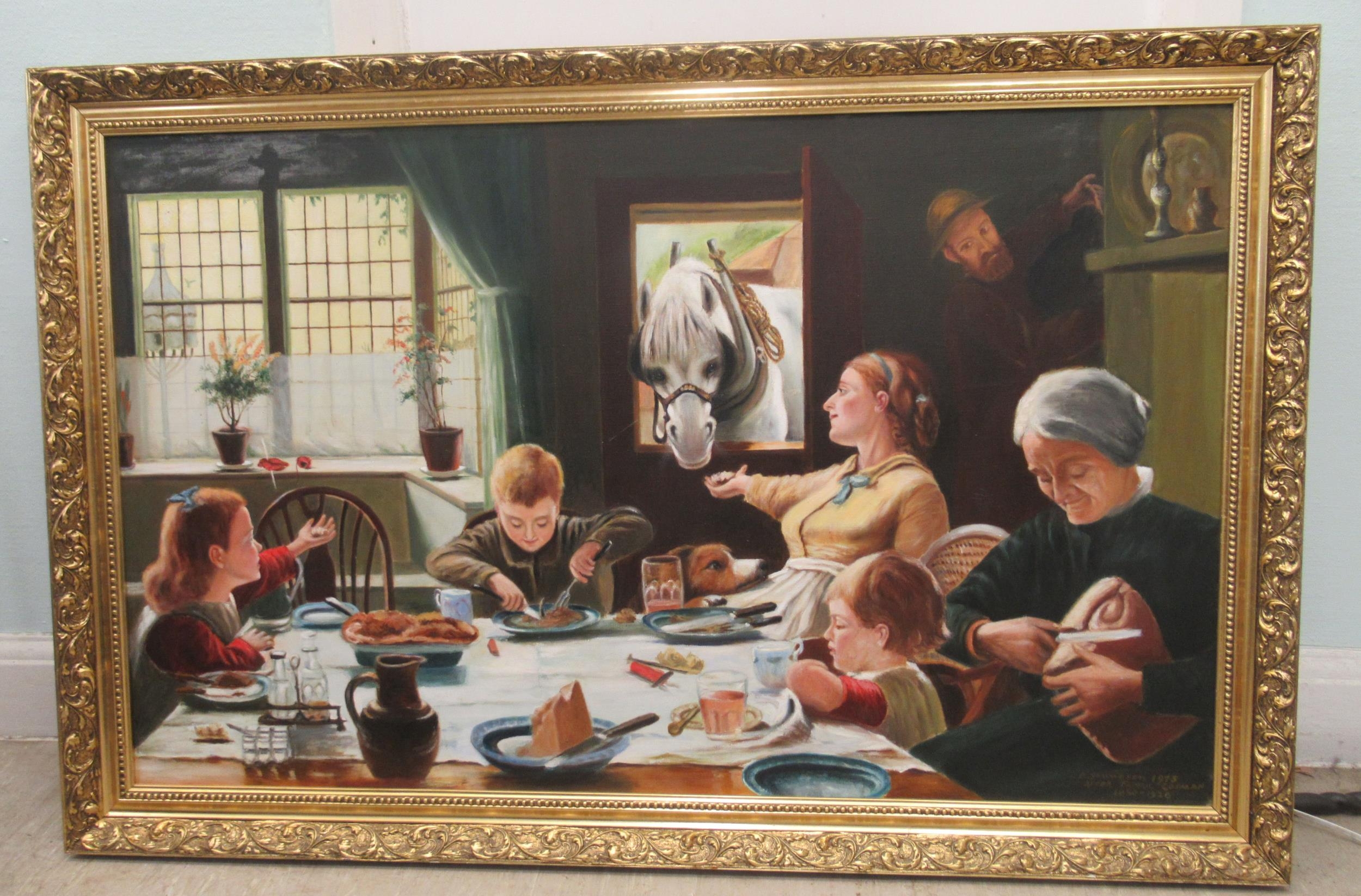 A Youngson - his version of 'One of the Family' after Frederick George Cotman oil on canvas bears a signature & dated 1973 47" x 29" framed