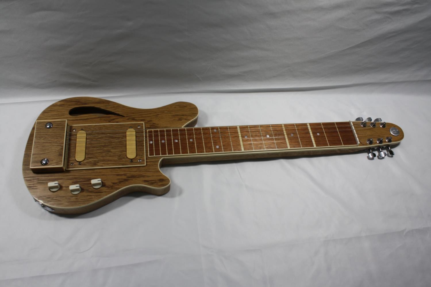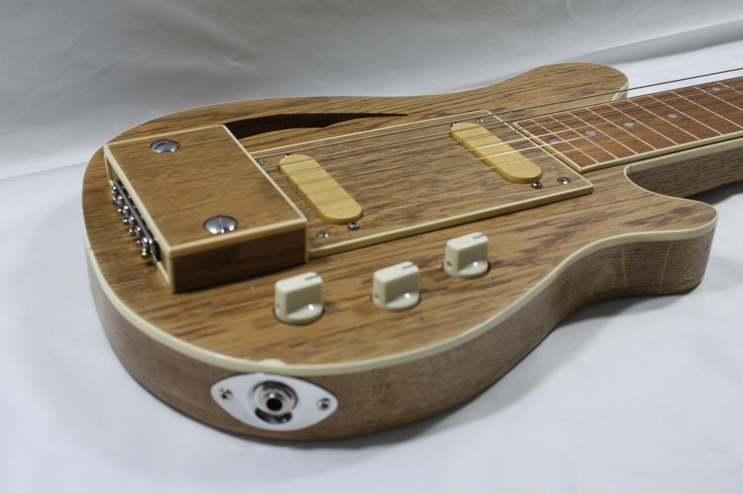 Oak Guitars (Local Manx Business) Lap Steel built 2011 unique! - All oak construction with bound chambered body, sapele fretboard and locking tuners, removable hand rest and top loading bridge / tailpiece, two 1970 single coil pickups - neck 6.6ohms and the bridge 6.6 ohms