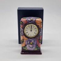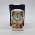 A Moorcroft 'Butterfly' pattern mantel clock, 16cm high, boxed.