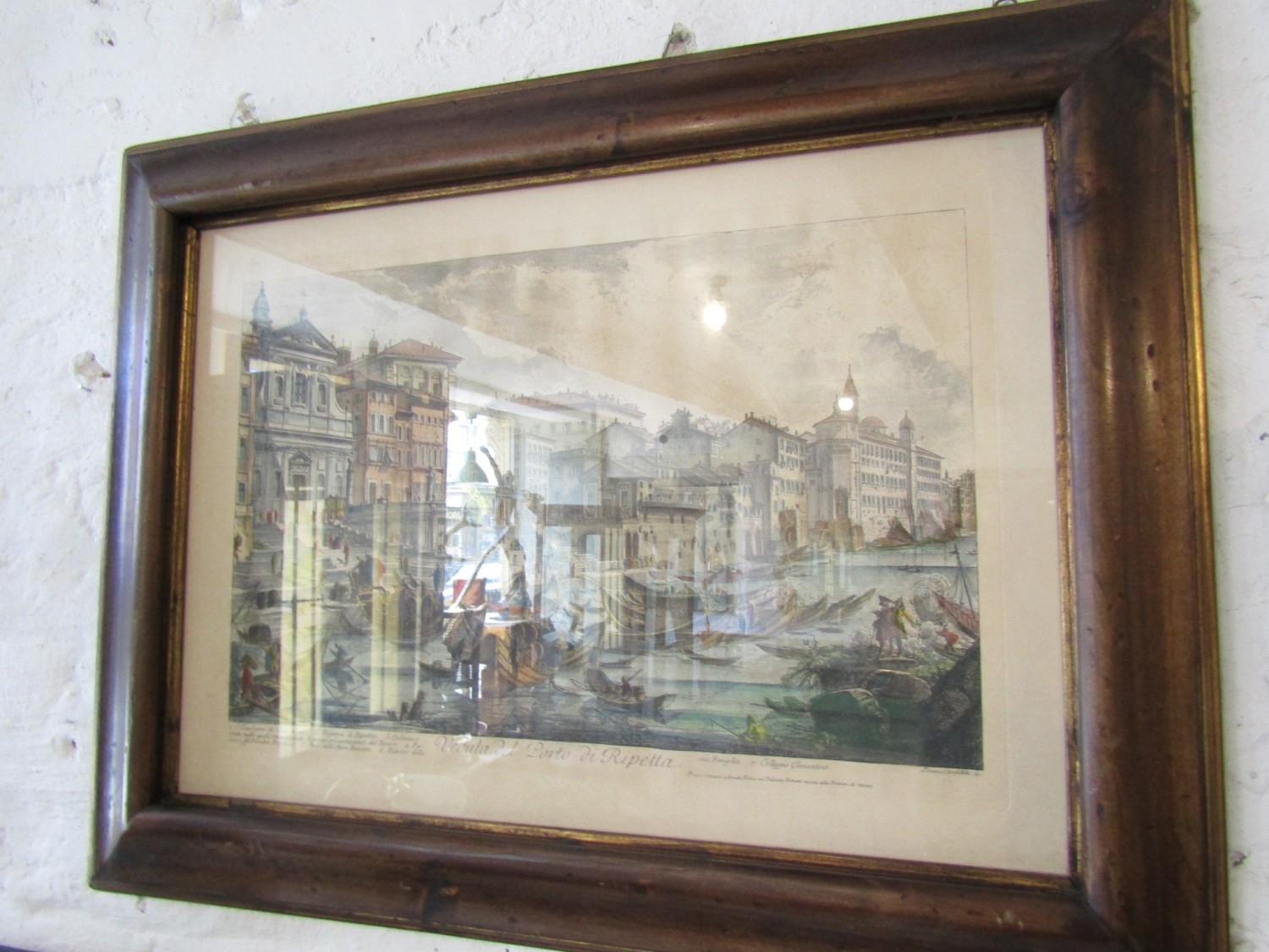 Antique Engraving Venice the Grand Canal Contained Within Gilded and Moulded Frame Approximately 32 Inches Wide x 20 Inches High Signed and Titled to Plate