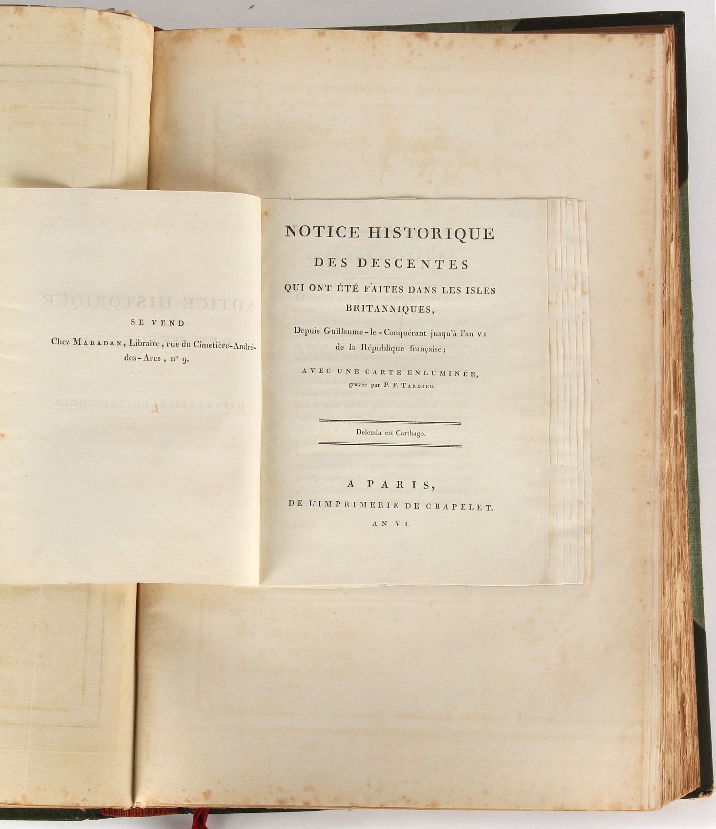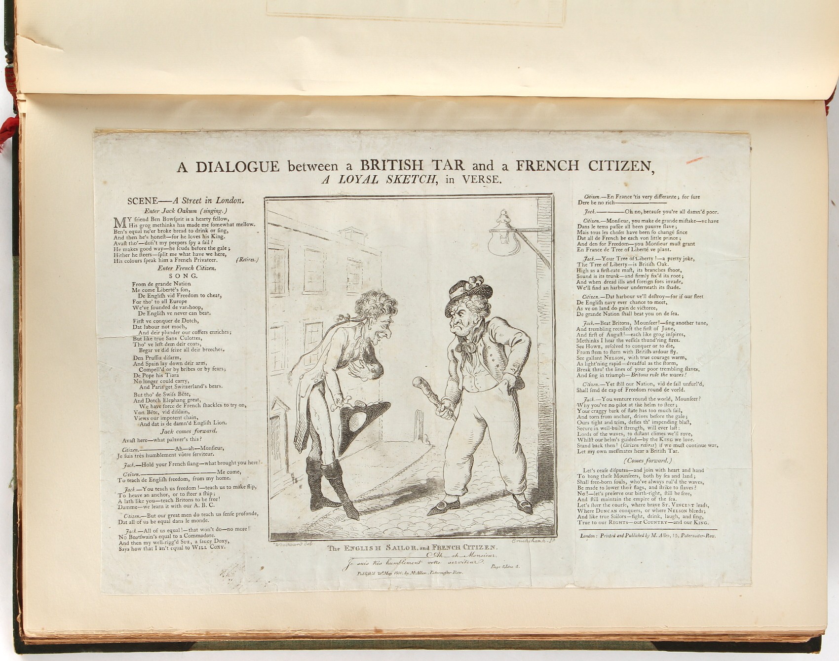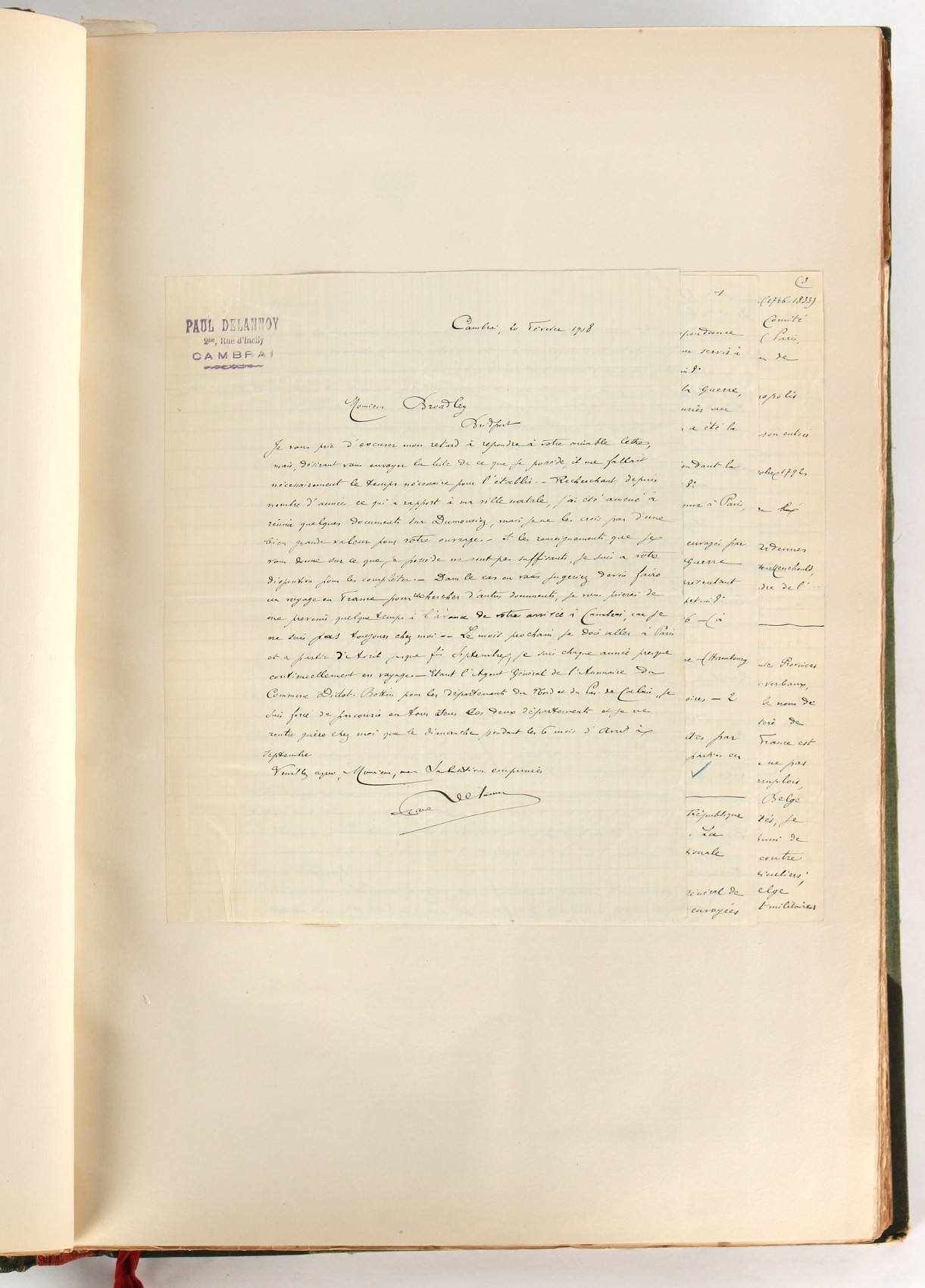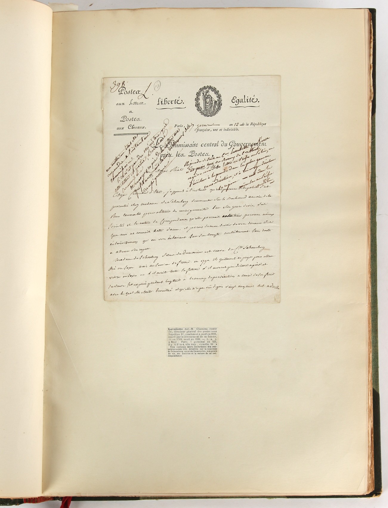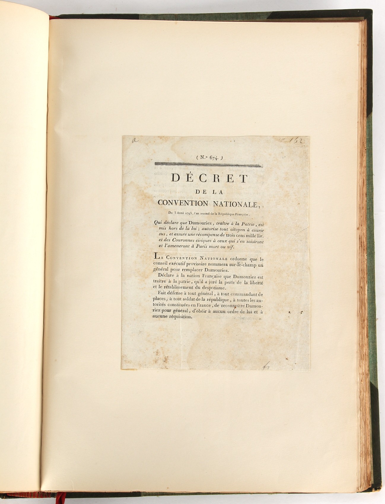 Property of a lady - Napoleonic historical interest - BROADLEY, Alexander Meyrick, and ROSE, John Holland - 'Dumouriez and the Defence of England against Napoleon' - two volume set, the personal 'Extra-Illustrated' or 'Grangerized' (or 'Grangerised') copies of Alexander Meyrick Broadley (1847-1916), London, John Lane, The Bodley Head, 1909, with tipped-in invoice from William Brendon & Son Limited Printers, Plymouth, dated 7th Sept. 1908 for £2 - - 'To one special copy pulled upon large paper, also 200 folio plain sheets', extra-illustrated or augmented with a large quantity of contemporarily hand-coloured and monochrome cartoon or caricature satirical prints, original drawings & watercolours, printed broadsides, etc., each affixed at the edges only into a window cut in to each plain folio sheet (so that backs are open & visible), Volume One including six tipped-in manuscript letters from Herbert H. Raphael (Major Sir Herbert Henry Raphael, 1st Baronet, 1859–1924) and twenty-six tipped-in manuscript letters from John Holland Rose (1855-1942) and two manuscript letters (one being four-sided) from Field Marshal Lord Roberts (1832-1914), and many other ms letters including some from Cambrai (Cambray), France (where Dumouriez was born), and the publishers (including the original contract between the authors and the publishers), all regarding the book and its compilation, also including twelve original ink manuscript letters by the subject of the book Charles Francois du Perier Dumouriez (1739-1823) (a further 16 letters by him are in Volume Two), the first dated 1765, the second (four sided) from Versailles dated 1772, the third (four sided) dated 1782, the fourth, fifth, sixth, seventh, eighth, ninth and tenth all dated 1792 when Dumouriez was Ministre des Affairs Etrangeres, Ministre de la Guerre, and Chef de L'Armee du Nord, an important ink manuscript letter from Dumouriez dated 1793 (two sided) consulting Charles James Fox on finding refuge in London (with letter from the dealer P.F. Madigan in Fifth Avenue, New York, regarding Boardley's purchase of this letter for $40), another ms letter from Dumouriez (two sided) dated 1796, and another from Antoine-Marie Chamans de Lavallette (Directeur General des Postes under Napoleon), the prints including Piercy Roberts after George Murgatroyd Woodward - 'John Bull and His Friends Commemorating The Peace' (1802); 'A Cock and Bull Story' (1803), published by Percy Roberts; a small pencil drawing portrait of Dumouriez initialled J.D. and dated 9 Oct. '69; 'La Retour en Angleterre' (we can find no record of this print); 'Carte des Descentes Faites en Angleterre et en Irlande Depuis Guillaume la Conquérant jusqu'à nos jours' (Map of the Invasions of England and Ireland from William the Conqueror to the Present) (1798), hand-coloured, with accompanying text; 'Capture of Bonaparte's Carriage', published by Edwards, 1818; a signed watercolour by G. Heberden entitled 'Genl. Dumouriez marching the Sans Culottes into Holland', 19.5 by 32.5cms.; 'A Dose for Dumourier, Evacuation of Holland and Brabant' (monochrome); and James Gillray - 'Dumourier dining in state at St James's, on the 15th of May, 1793' (monochrome), Volume Two including numerous broadsides or notices, some anti-Napoleon propaganda, one a folding monochrome broadside entitled 'An ABSTRACT of An Act for providing an Augmentation to the MILITIA, to be trained and exercised in the Manner therein directed; and for enabling His Majesty to cause the same to be embodied, in case of Necessity, for the Defence of these Kingdoms', printed by George Eyre and Andrew Strahan, 1796; lists of recruited foreign soldiers, etc.; an 'Army of Reserve Act' broadside for the Parish of St. Clement Danes, dated 1803; a Jan Kip folded engraving of Lulworth Castle entitled 'Lullworth Castle in Dorsetshire, The Seat of Humphry Weld'; other folding maps; several printed patriotic song scores of the period; a ms autograph ink sheet entitled 'Verses written on the threatened Invasion', by B. Atkinson of Bath'; a contemporary 60-page plus index ink ms booklet entitled 'Internal Defence of Essex', listing the names & number of carts & horses for each village or town to be called upon in the event of invasion; a printed list of 'Loyal Colchester Volunteers', dated July 1803; this second volume also includes a further 16 ink ms letters by Dumouriez dating from 1804 to 1822; and much more (helpfully, Broadley added a ms index of the extra illustrations); each volume approximately 20.5 by 14ins. (52 by 35.5cms.) (overall) (2). Footnote - Alexander Meyrick Broadley (1847-1916) was a British author, barrister, collector and social figure, known for defending Ahmed 'Urabi after the Urabi Revolt. Broadley penned numerous historical works later in life, particularly regarding Napoleon and his era. Among the works he authored or co-authored are 'Napoleon and the Invasion of England: The Story of the Great Terror' (London, 1908); 'Nelson’s Hardy: His Life, Letters and Friends' (London, 1909); 'Napoleon in Caricature 1795-1821' (London, 1911); and 'Napoleon in Exile' (London, 1914). Broadley was known as a celebrated grangeriser (or extra-illustrator) of books, and one of his greatest achievements was the creation, with the assistance of Daniell, of an extra-illustrated set of Rose’s 'Life of Napoleon I' and Rosebery’s 'Napoleon. The Last Phase', by inlaying and extending the works from three octavo to twenty-eight folio volumes with engravings, portraits, manuscripts, autograph letters, etc. over a period of four years. This monumental work was bought by George Nathaniel Curzon, Marquess Curzon of Kedleston at the auction of Broadley’s library held in four sales between 1916 and 1918, and Curzon later bequeathed the set to the Bodleian Library, Oxford.