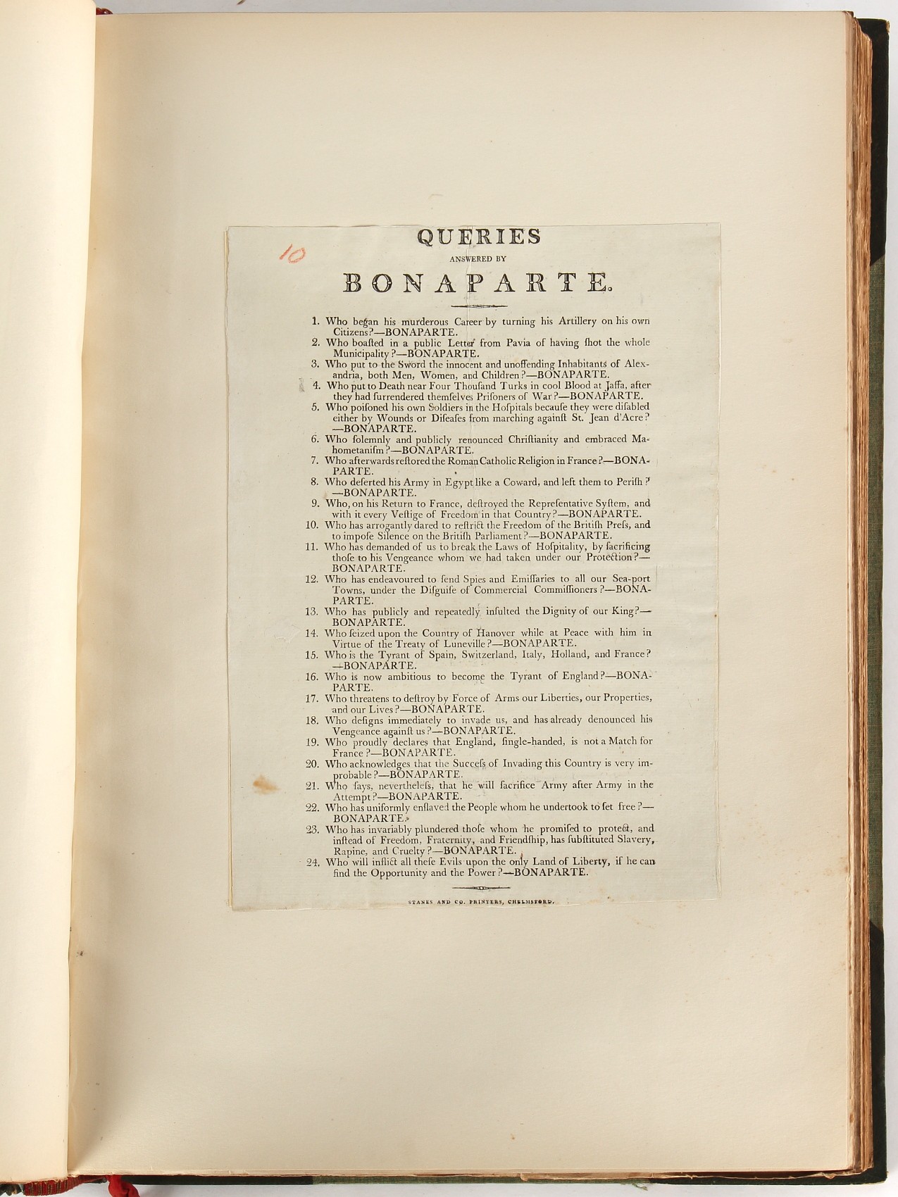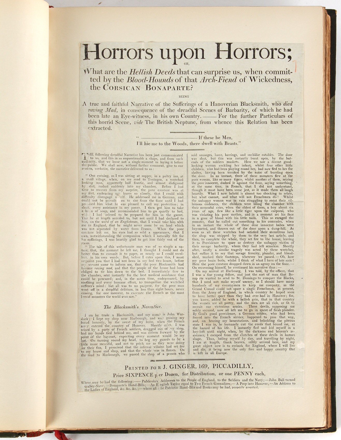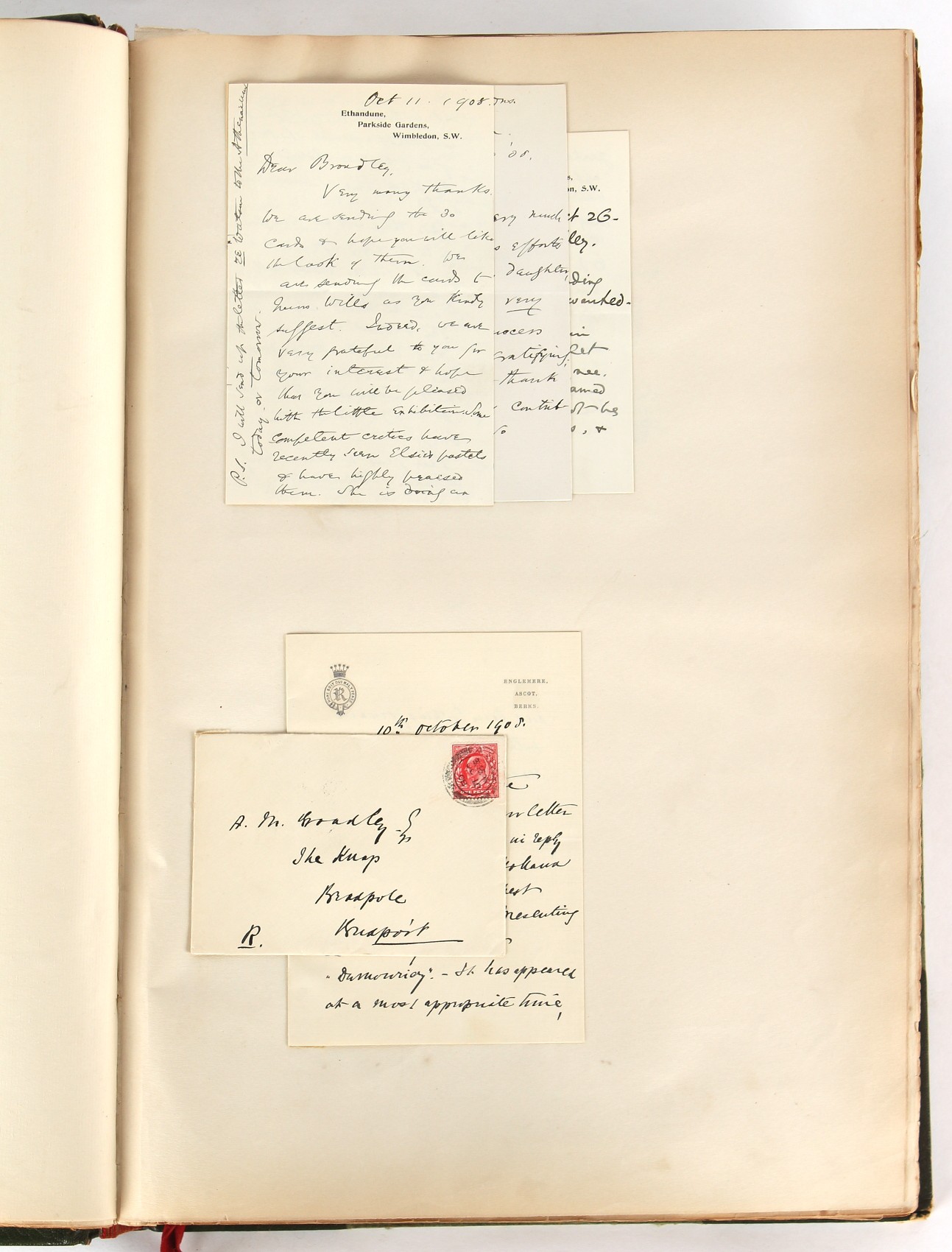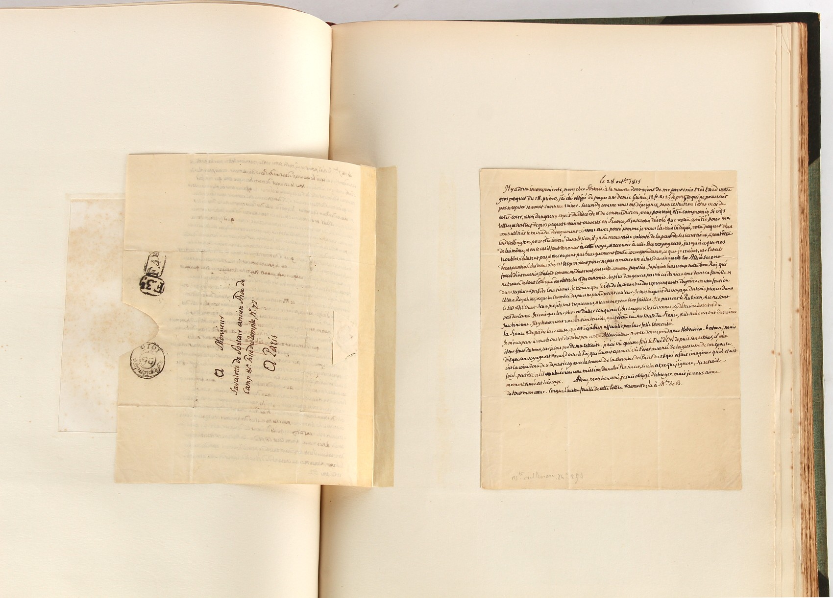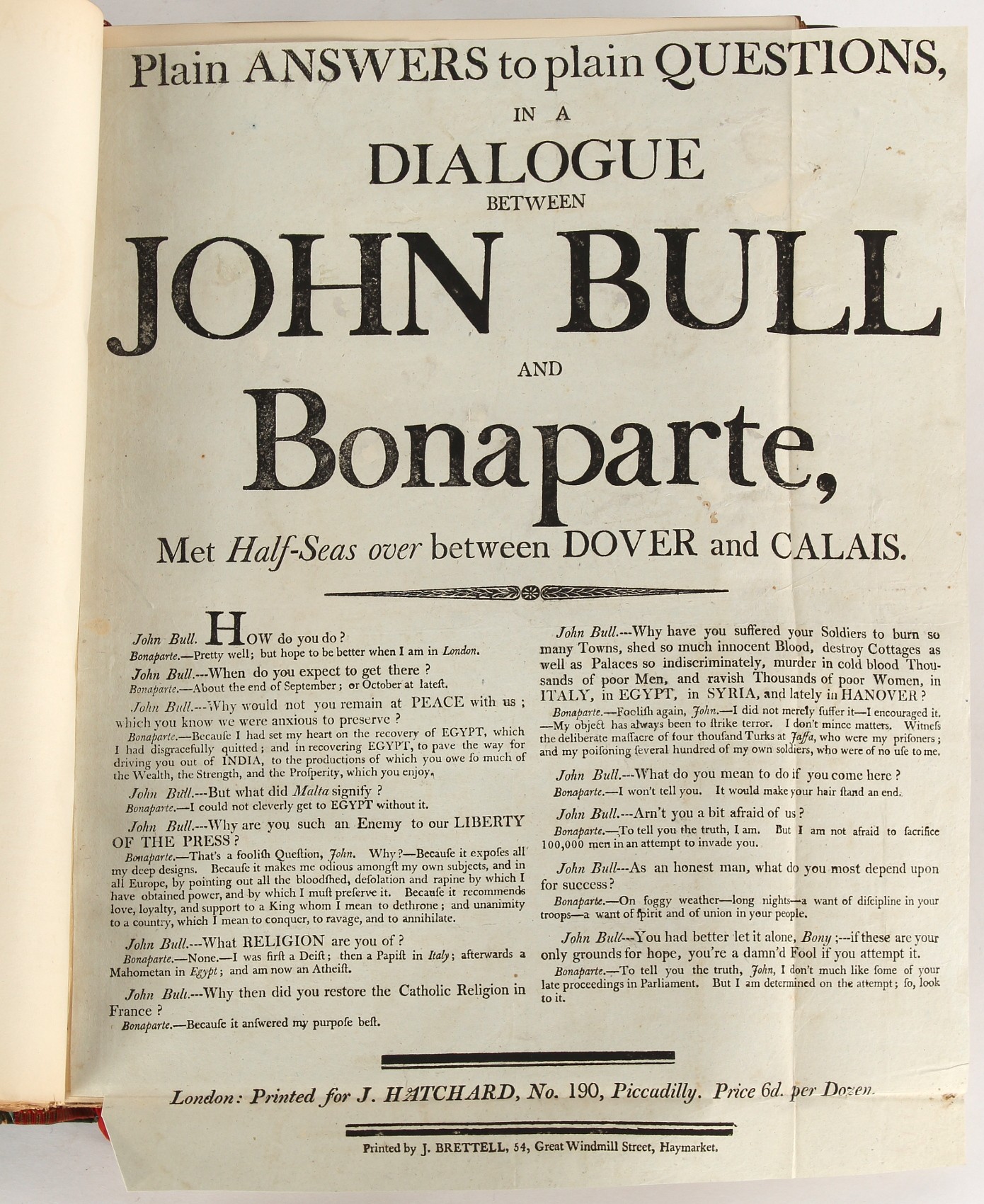 Property of a lady - Napoleonic historical interest - BROADLEY, Alexander Meyrick, and ROSE, John Holland - 'Dumouriez and the Defence of England against Napoleon' - two volume set, the personal 'Extra-Illustrated' or 'Grangerized' (or 'Grangerised') copies of Alexander Meyrick Broadley (1847-1916), London, John Lane, The Bodley Head, 1909, with tipped-in invoice from William Brendon & Son Limited Printers, Plymouth, dated 7th Sept. 1908 for £2 - - 'To one special copy pulled upon large paper, also 200 folio plain sheets', extra-illustrated or augmented with a large quantity of contemporarily hand-coloured and monochrome cartoon or caricature satirical prints, original drawings & watercolours, printed broadsides, etc., each affixed at the edges only into a window cut in to each plain folio sheet (so that backs are open & visible), Volume One including six tipped-in manuscript letters from Herbert H. Raphael (Major Sir Herbert Henry Raphael, 1st Baronet, 1859–1924) and twenty-six tipped-in manuscript letters from John Holland Rose (1855-1942) and two manuscript letters (one being four-sided) from Field Marshal Lord Roberts (1832-1914), and many other ms letters including some from Cambrai (Cambray), France (where Dumouriez was born), and the publishers (including the original contract between the authors and the publishers), all regarding the book and its compilation, also including twelve original ink manuscript letters by the subject of the book Charles Francois du Perier Dumouriez (1739-1823) (a further 16 letters by him are in Volume Two), the first dated 1765, the second (four sided) from Versailles dated 1772, the third (four sided) dated 1782, the fourth, fifth, sixth, seventh, eighth, ninth and tenth all dated 1792 when Dumouriez was Ministre des Affairs Etrangeres, Ministre de la Guerre, and Chef de L'Armee du Nord, an important ink manuscript letter from Dumouriez dated 1793 (two sided) consulting Charles James Fox on finding refuge in London (with letter from the dealer P.F. Madigan in Fifth Avenue, New York, regarding Boardley's purchase of this letter for $40), another ms letter from Dumouriez (two sided) dated 1796, and another from Antoine-Marie Chamans de Lavallette (Directeur General des Postes under Napoleon), the prints including Piercy Roberts after George Murgatroyd Woodward - 'John Bull and His Friends Commemorating The Peace' (1802); 'A Cock and Bull Story' (1803), published by Percy Roberts; a small pencil drawing portrait of Dumouriez initialled J.D. and dated 9 Oct. '69; 'La Retour en Angleterre' (we can find no record of this print); 'Carte des Descentes Faites en Angleterre et en Irlande Depuis Guillaume la Conquérant jusqu'à nos jours' (Map of the Invasions of England and Ireland from William the Conqueror to the Present) (1798), hand-coloured, with accompanying text; 'Capture of Bonaparte's Carriage', published by Edwards, 1818; a signed watercolour by G. Heberden entitled 'Genl. Dumouriez marching the Sans Culottes into Holland', 19.5 by 32.5cms.; 'A Dose for Dumourier, Evacuation of Holland and Brabant' (monochrome); and James Gillray - 'Dumourier dining in state at St James's, on the 15th of May, 1793' (monochrome), Volume Two including numerous broadsides or notices, some anti-Napoleon propaganda, one a folding monochrome broadside entitled 'An ABSTRACT of An Act for providing an Augmentation to the MILITIA, to be trained and exercised in the Manner therein directed; and for enabling His Majesty to cause the same to be embodied, in case of Necessity, for the Defence of these Kingdoms', printed by George Eyre and Andrew Strahan, 1796; lists of recruited foreign soldiers, etc.; an 'Army of Reserve Act' broadside for the Parish of St. Clement Danes, dated 1803; a Jan Kip folded engraving of Lulworth Castle entitled 'Lullworth Castle in Dorsetshire, The Seat of Humphry Weld'; other folding maps; several printed patriotic song scores of the period; a ms autograph ink sheet entitled 'Verses written on the threatened Invasion', by B. Atkinson of Bath'; a contemporary 60-page plus index ink ms booklet entitled 'Internal Defence of Essex', listing the names & number of carts & horses for each village or town to be called upon in the event of invasion; a printed list of 'Loyal Colchester Volunteers', dated July 1803; this second volume also includes a further 16 ink ms letters by Dumouriez dating from 1804 to 1822; and much more (helpfully, Broadley added a ms index of the extra illustrations); each volume approximately 20.5 by 14ins. (52 by 35.5cms.) (overall) (2). Footnote - Alexander Meyrick Broadley (1847-1916) was a British author, barrister, collector and social figure, known for defending Ahmed 'Urabi after the Urabi Revolt. Broadley penned numerous historical works later in life, particularly regarding Napoleon and his era. Among the works he authored or co-authored are 'Napoleon and the Invasion of England: The Story of the Great Terror' (London, 1908); 'Nelson’s Hardy: His Life, Letters and Friends' (London, 1909); 'Napoleon in Caricature 1795-1821' (London, 1911); and 'Napoleon in Exile' (London, 1914). Broadley was known as a celebrated grangeriser (or extra-illustrator) of books, and one of his greatest achievements was the creation, with the assistance of Daniell, of an extra-illustrated set of Rose’s 'Life of Napoleon I' and Rosebery’s 'Napoleon. The Last Phase', by inlaying and extending the works from three octavo to twenty-eight folio volumes with engravings, portraits, manuscripts, autograph letters, etc. over a period of four years. This monumental work was bought by George Nathaniel Curzon, Marquess Curzon of Kedleston at the auction of Broadley’s library held in four sales between 1916 and 1918, and Curzon later bequeathed the set to the Bodleian Library, Oxford.