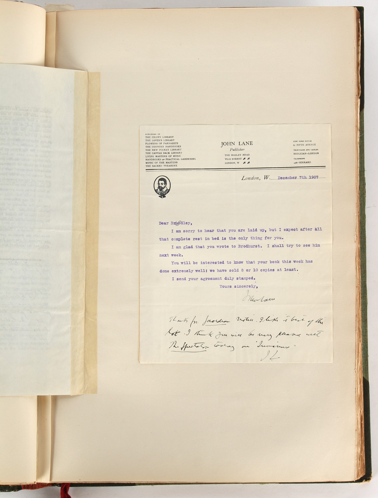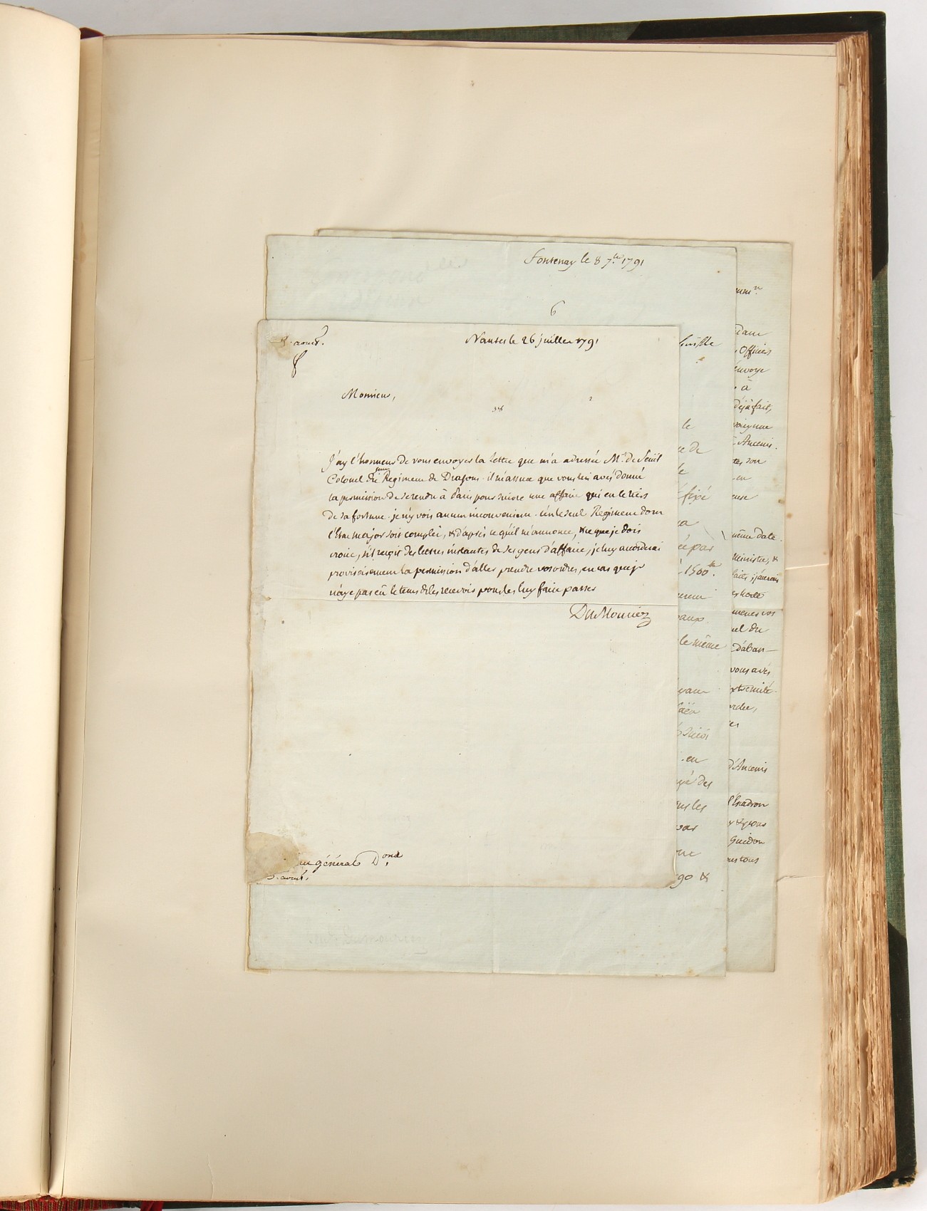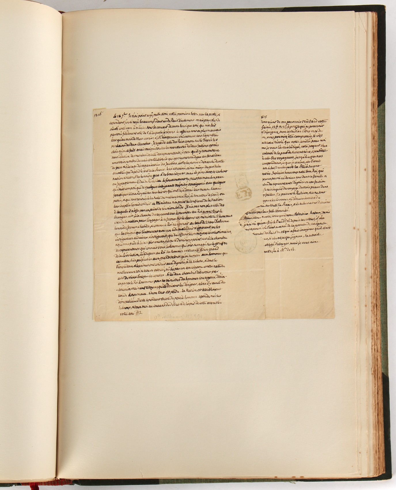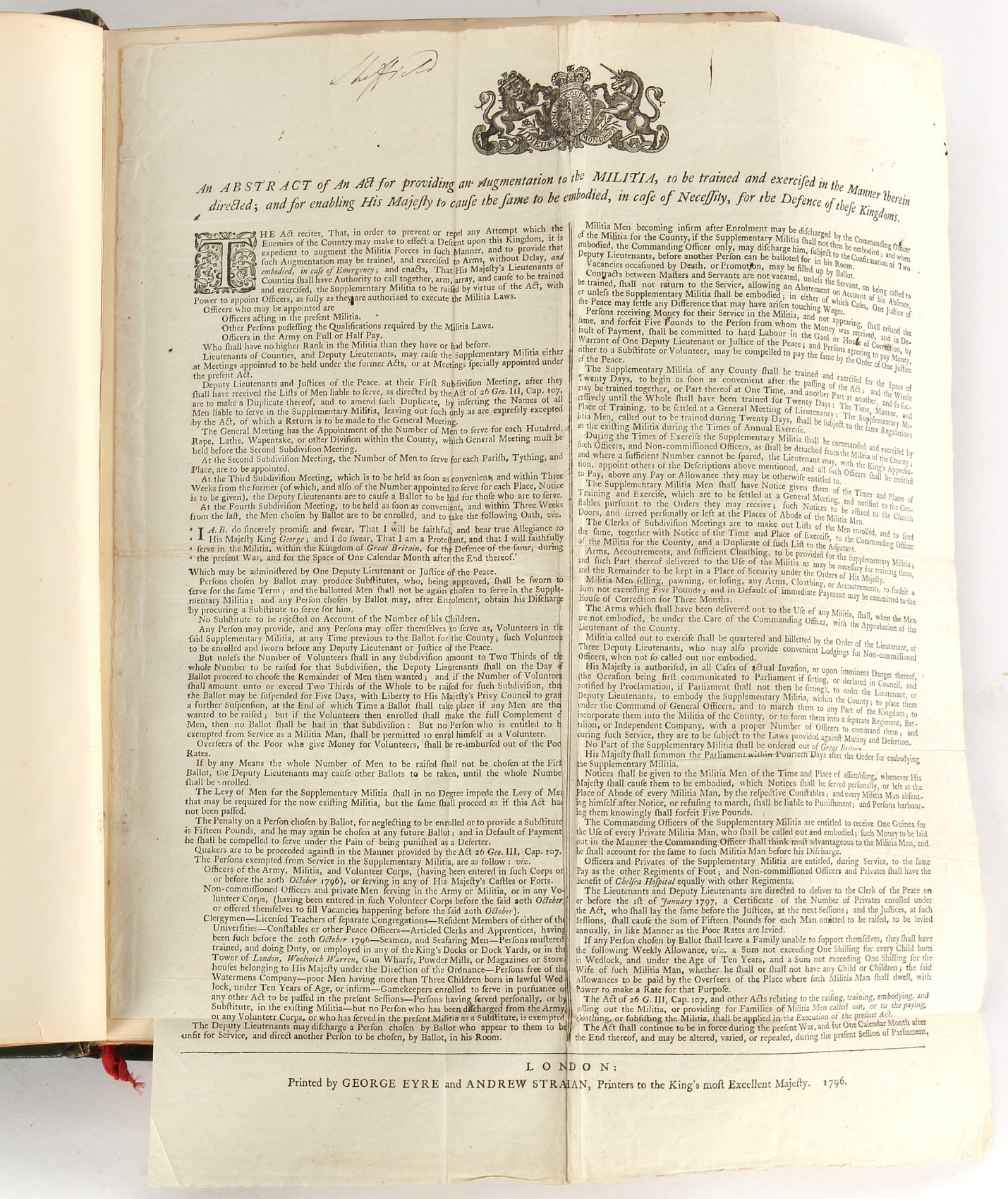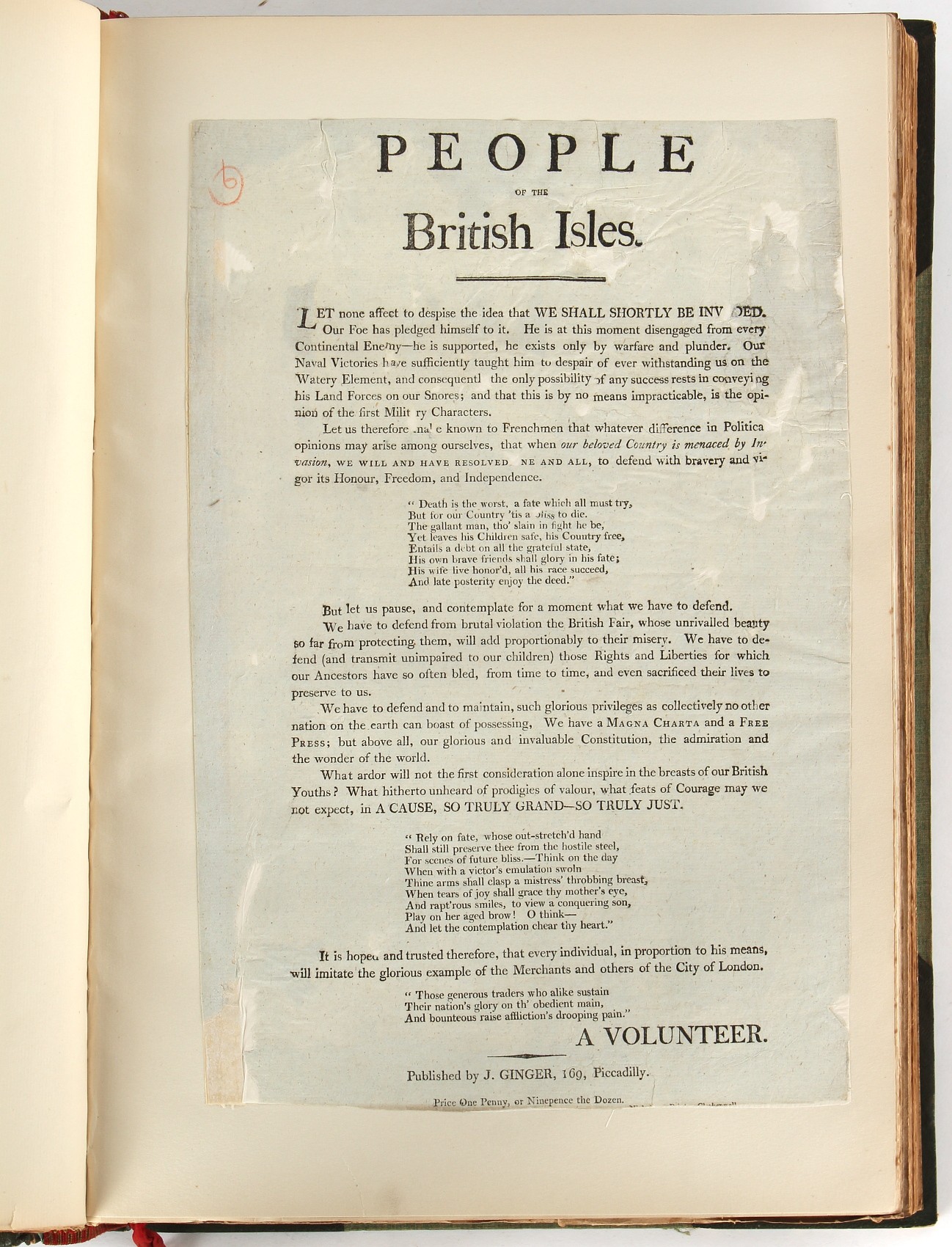 Property of a lady - Napoleonic historical interest - BROADLEY, Alexander Meyrick, and ROSE, John Holland - 'Dumouriez and the Defence of England against Napoleon' - two volume set, the personal 'Extra-Illustrated' or 'Grangerized' (or 'Grangerised') copies of Alexander Meyrick Broadley (1847-1916), London, John Lane, The Bodley Head, 1909, with tipped-in invoice from William Brendon & Son Limited Printers, Plymouth, dated 7th Sept. 1908 for £2 - - 'To one special copy pulled upon large paper, also 200 folio plain sheets', extra-illustrated or augmented with a large quantity of contemporarily hand-coloured and monochrome cartoon or caricature satirical prints, original drawings & watercolours, printed broadsides, etc., each affixed at the edges only into a window cut in to each plain folio sheet (so that backs are open & visible), Volume One including six tipped-in manuscript letters from Herbert H. Raphael (Major Sir Herbert Henry Raphael, 1st Baronet, 1859–1924) and twenty-six tipped-in manuscript letters from John Holland Rose (1855-1942) and two manuscript letters (one being four-sided) from Field Marshal Lord Roberts (1832-1914), and many other ms letters including some from Cambrai (Cambray), France (where Dumouriez was born), and the publishers (including the original contract between the authors and the publishers), all regarding the book and its compilation, also including twelve original ink manuscript letters by the subject of the book Charles Francois du Perier Dumouriez (1739-1823) (a further 16 letters by him are in Volume Two), the first dated 1765, the second (four sided) from Versailles dated 1772, the third (four sided) dated 1782, the fourth, fifth, sixth, seventh, eighth, ninth and tenth all dated 1792 when Dumouriez was Ministre des Affairs Etrangeres, Ministre de la Guerre, and Chef de L'Armee du Nord, an important ink manuscript letter from Dumouriez dated 1793 (two sided) consulting Charles James Fox on finding refuge in London (with letter from the dealer P.F. Madigan in Fifth Avenue, New York, regarding Boardley's purchase of this letter for $40), another ms letter from Dumouriez (two sided) dated 1796, and another from Antoine-Marie Chamans de Lavallette (Directeur General des Postes under Napoleon), the prints including Piercy Roberts after George Murgatroyd Woodward - 'John Bull and His Friends Commemorating The Peace' (1802); 'A Cock and Bull Story' (1803), published by Percy Roberts; a small pencil drawing portrait of Dumouriez initialled J.D. and dated 9 Oct. '69; 'La Retour en Angleterre' (we can find no record of this print); 'Carte des Descentes Faites en Angleterre et en Irlande Depuis Guillaume la Conquérant jusqu'à nos jours' (Map of the Invasions of England and Ireland from William the Conqueror to the Present) (1798), hand-coloured, with accompanying text; 'Capture of Bonaparte's Carriage', published by Edwards, 1818; a signed watercolour by G. Heberden entitled 'Genl. Dumouriez marching the Sans Culottes into Holland', 19.5 by 32.5cms.; 'A Dose for Dumourier, Evacuation of Holland and Brabant' (monochrome); and James Gillray - 'Dumourier dining in state at St James's, on the 15th of May, 1793' (monochrome), Volume Two including numerous broadsides or notices, some anti-Napoleon propaganda, one a folding monochrome broadside entitled 'An ABSTRACT of An Act for providing an Augmentation to the MILITIA, to be trained and exercised in the Manner therein directed; and for enabling His Majesty to cause the same to be embodied, in case of Necessity, for the Defence of these Kingdoms', printed by George Eyre and Andrew Strahan, 1796; lists of recruited foreign soldiers, etc.; an 'Army of Reserve Act' broadside for the Parish of St. Clement Danes, dated 1803; a Jan Kip folded engraving of Lulworth Castle entitled 'Lullworth Castle in Dorsetshire, The Seat of Humphry Weld'; other folding maps; several printed patriotic song scores of the period; a ms autograph ink sheet entitled 'Verses written on the threatened Invasion', by B. Atkinson of Bath'; a contemporary 60-page plus index ink ms booklet entitled 'Internal Defence of Essex', listing the names & number of carts & horses for each village or town to be called upon in the event of invasion; a printed list of 'Loyal Colchester Volunteers', dated July 1803; this second volume also includes a further 16 ink ms letters by Dumouriez dating from 1804 to 1822; and much more (helpfully, Broadley added a ms index of the extra illustrations); each volume approximately 20.5 by 14ins. (52 by 35.5cms.) (overall) (2). Footnote - Alexander Meyrick Broadley (1847-1916) was a British author, barrister, collector and social figure, known for defending Ahmed 'Urabi after the Urabi Revolt. Broadley penned numerous historical works later in life, particularly regarding Napoleon and his era. Among the works he authored or co-authored are 'Napoleon and the Invasion of England: The Story of the Great Terror' (London, 1908); 'Nelson’s Hardy: His Life, Letters and Friends' (London, 1909); 'Napoleon in Caricature 1795-1821' (London, 1911); and 'Napoleon in Exile' (London, 1914). Broadley was known as a celebrated grangeriser (or extra-illustrator) of books, and one of his greatest achievements was the creation, with the assistance of Daniell, of an extra-illustrated set of Rose’s 'Life of Napoleon I' and Rosebery’s 'Napoleon. The Last Phase', by inlaying and extending the works from three octavo to twenty-eight folio volumes with engravings, portraits, manuscripts, autograph letters, etc. over a period of four years. This monumental work was bought by George Nathaniel Curzon, Marquess Curzon of Kedleston at the auction of Broadley’s library held in four sales between 1916 and 1918, and Curzon later bequeathed the set to the Bodleian Library, Oxford.