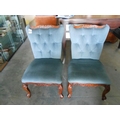 x2 Vintage Carved Wood Framed Upholstered Navy Blue Chairs