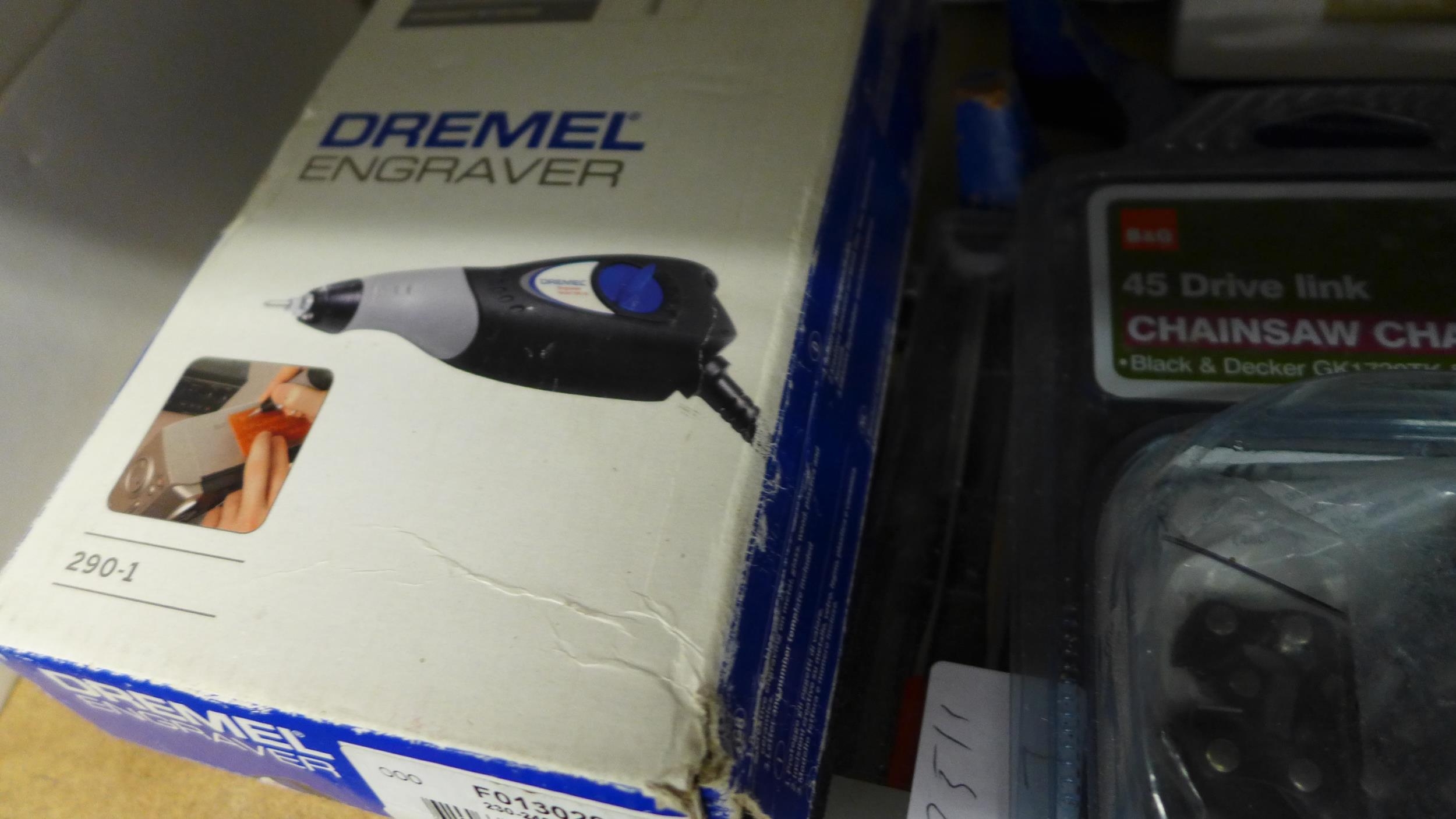 Dremel engraver tool, roll of 3M duck tape, 45 link chainsaw chain & Powerfix files
