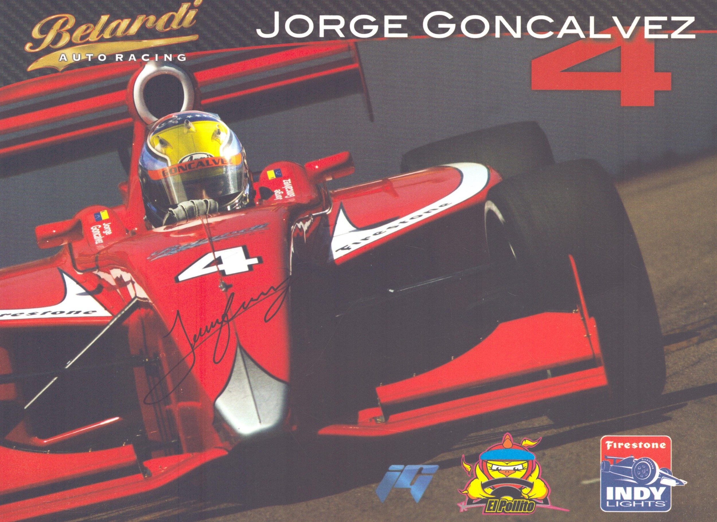 Jorge Goncalvez signed Belardi Auto racing promo card, 11x9inch.