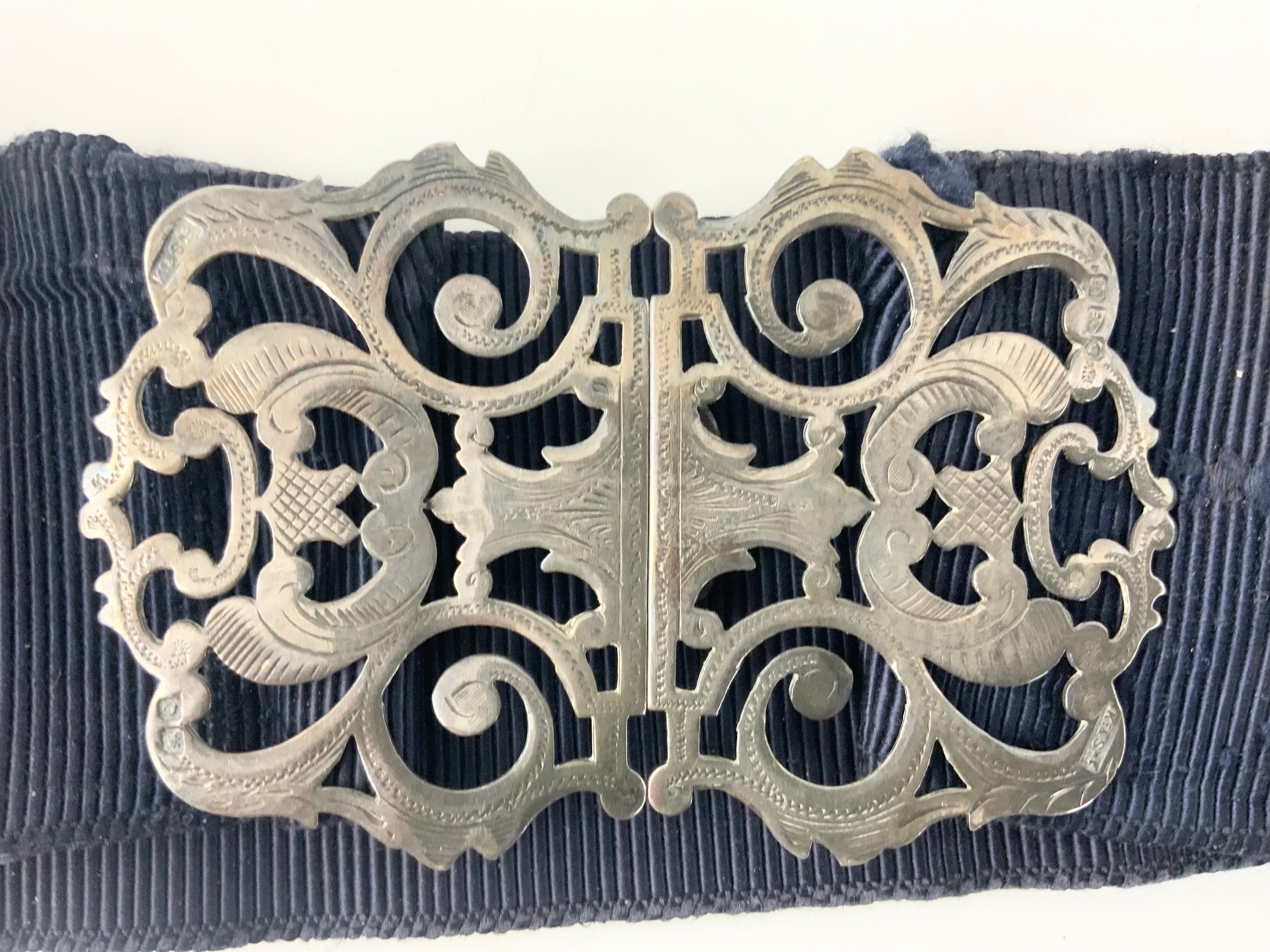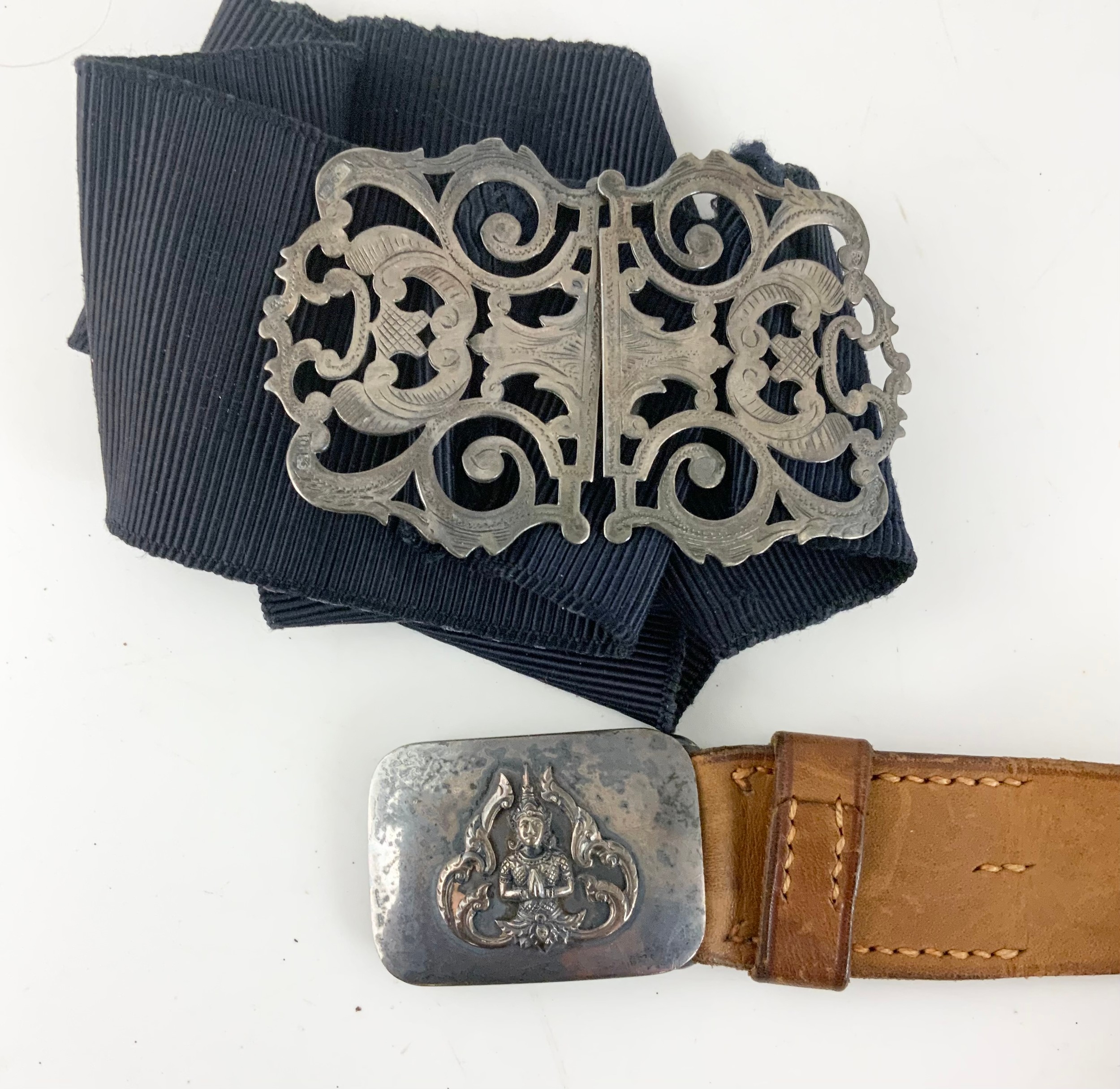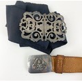CHESTER HALLMARKED SILVER NURSES BELT BUCKLE & A EMBOSSED BUCKLE STAMPED STERLING