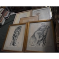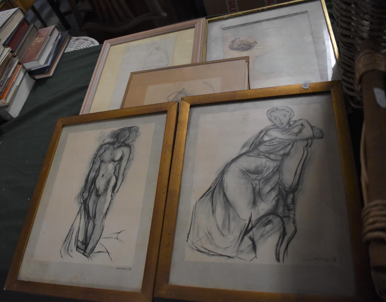 A Collection of Five Framed Pencil and Charcoal Prints of Nudes Etc