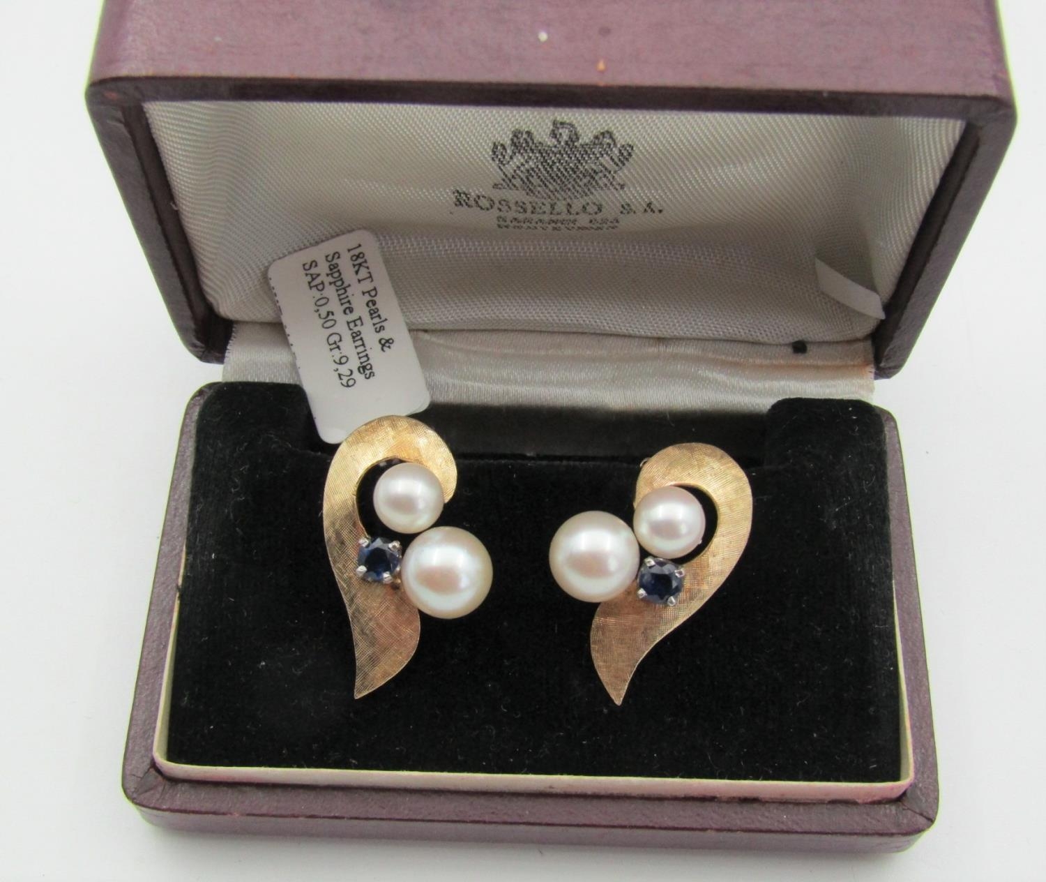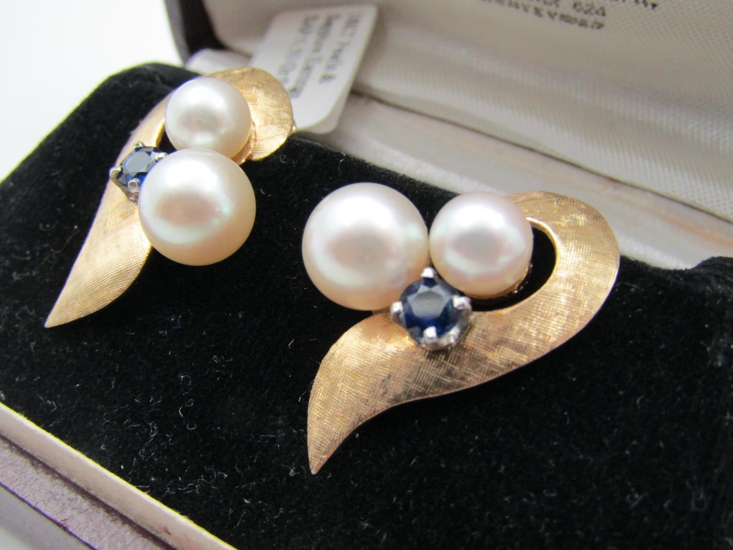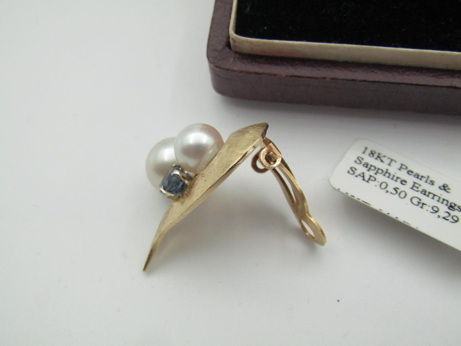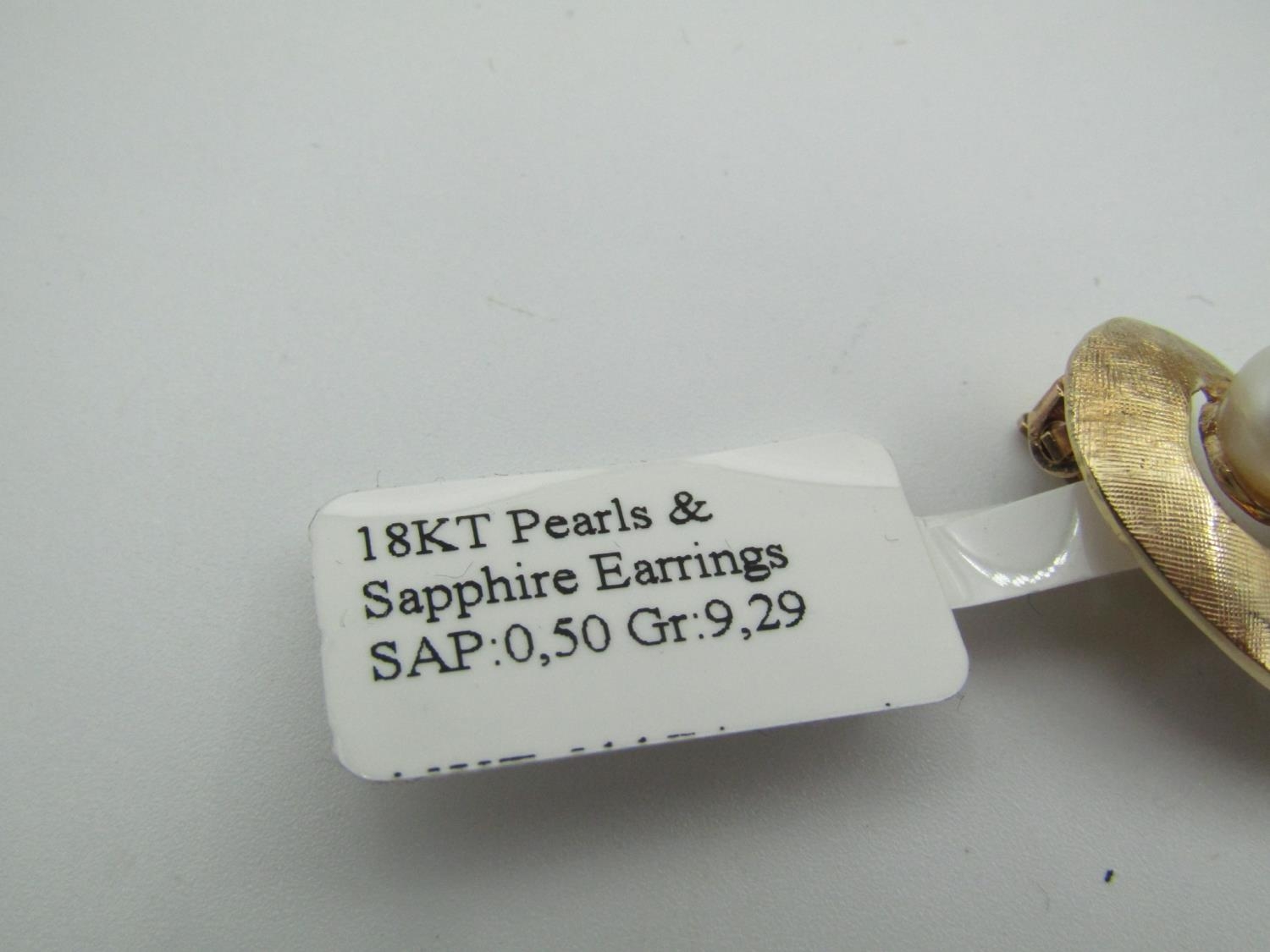 Pair of 18 Carat Pearl and Sapphire Set Ladies Earrings Vintage Each Approximately 3cm High