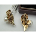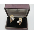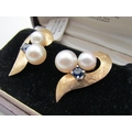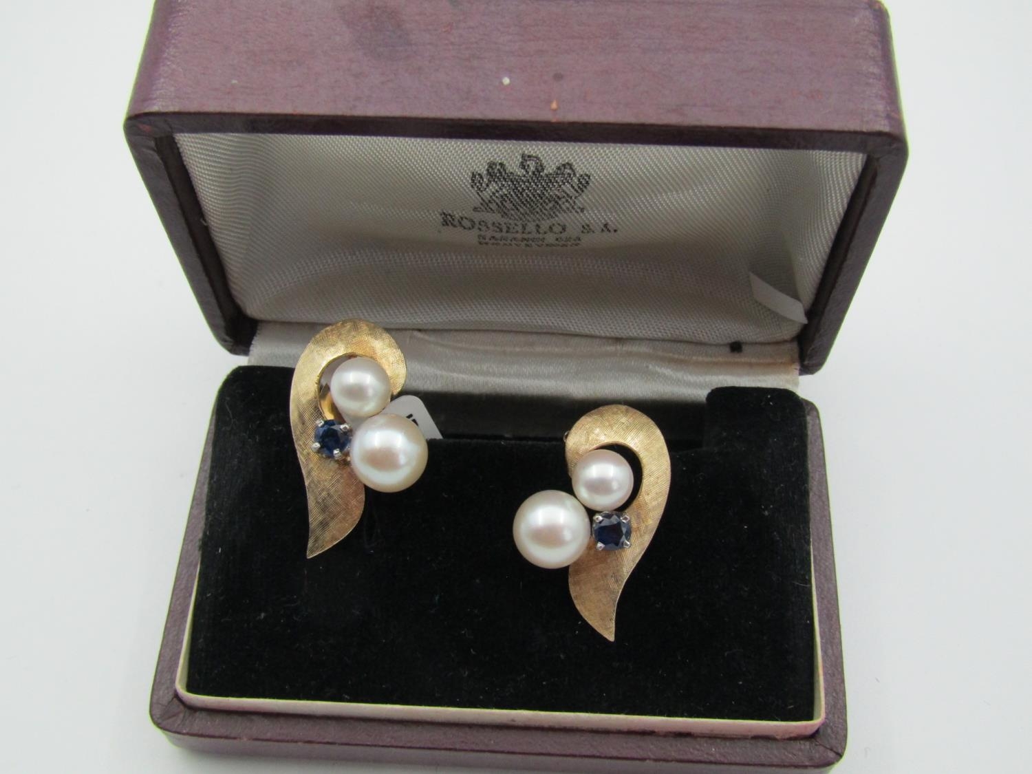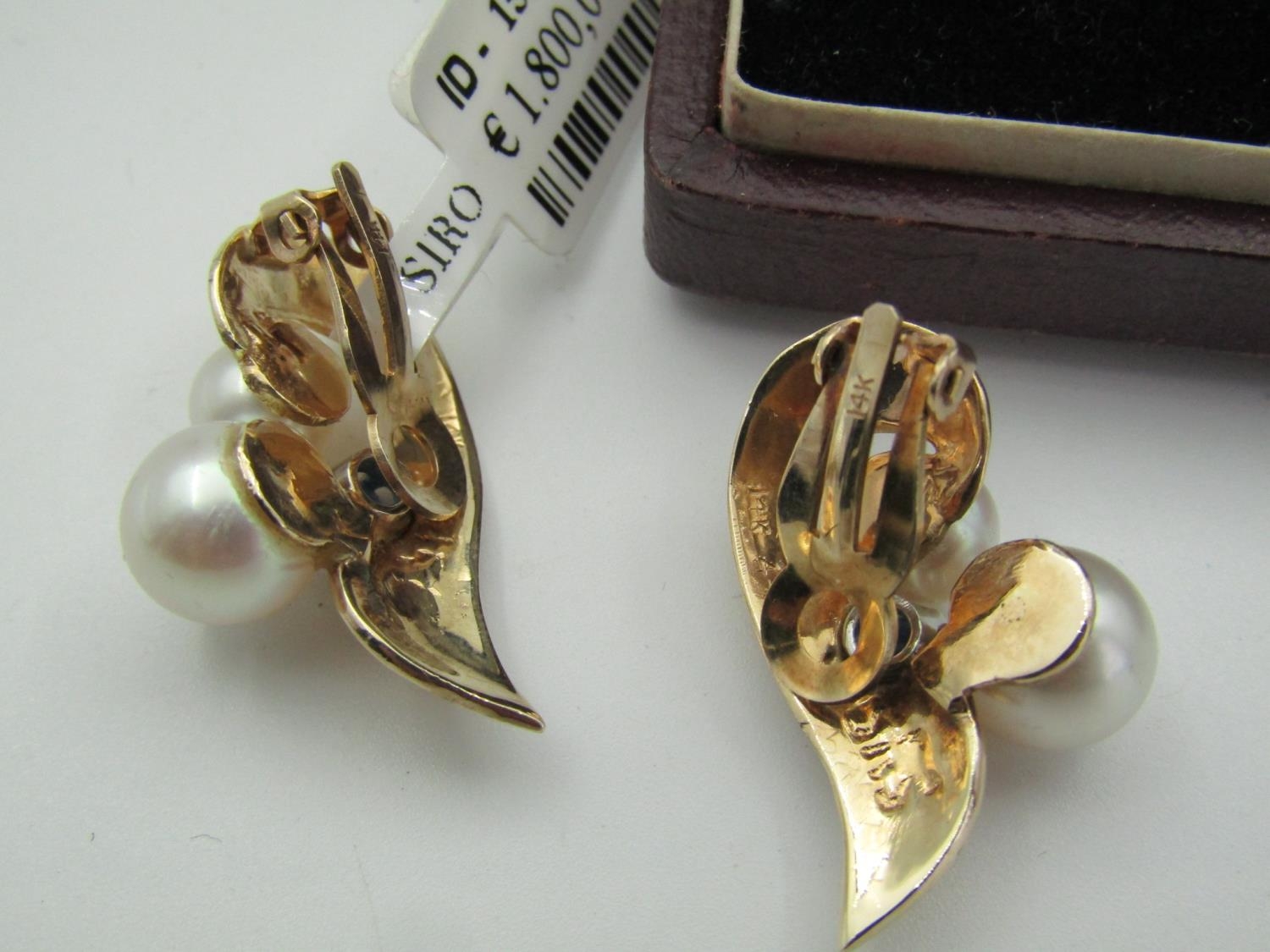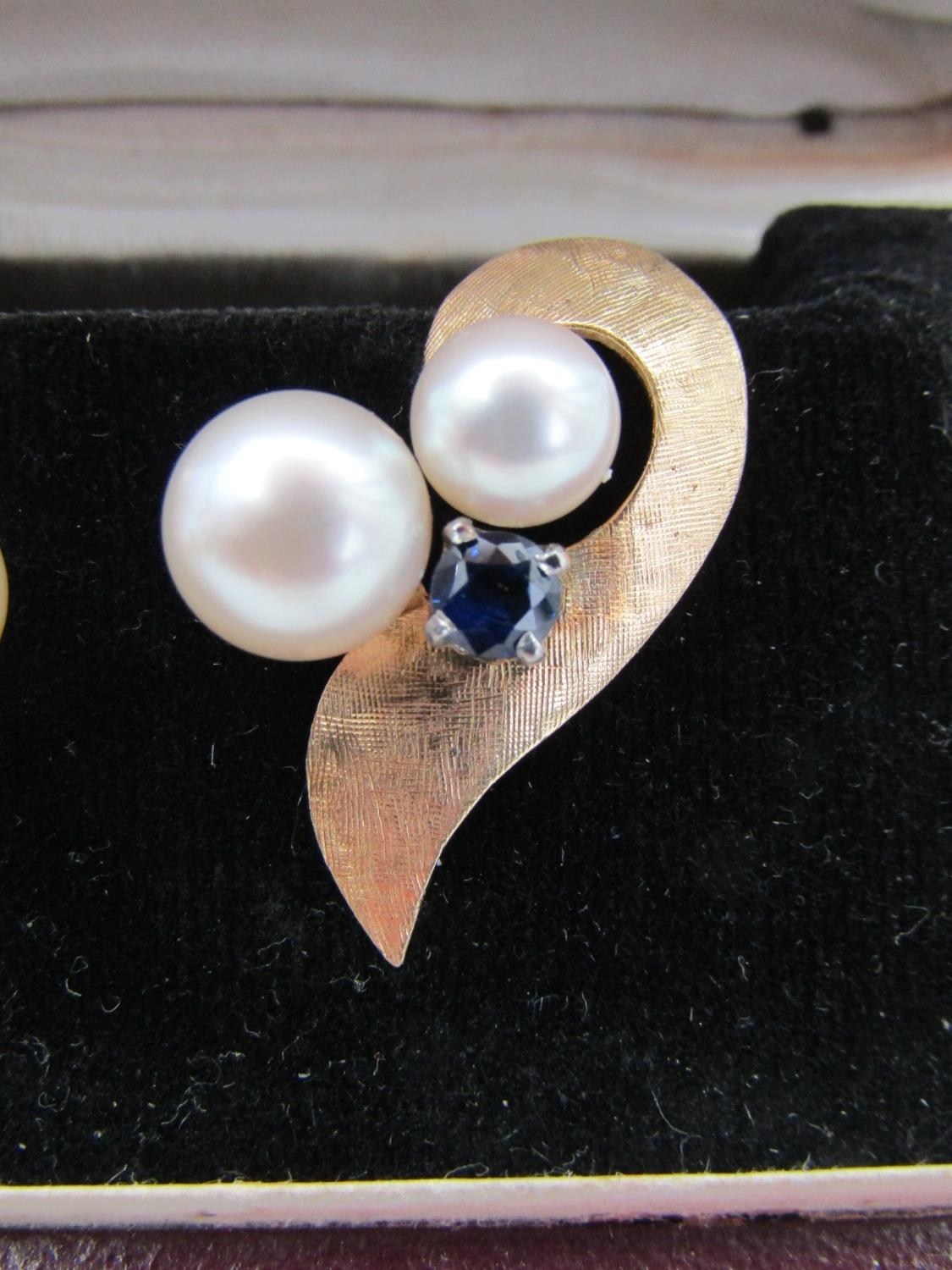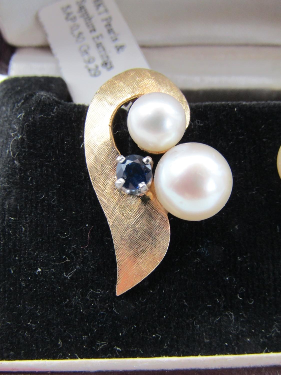 Pair of 18 Carat Pearl and Sapphire Set Ladies Earrings Vintage Each Approximately 3cm High