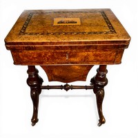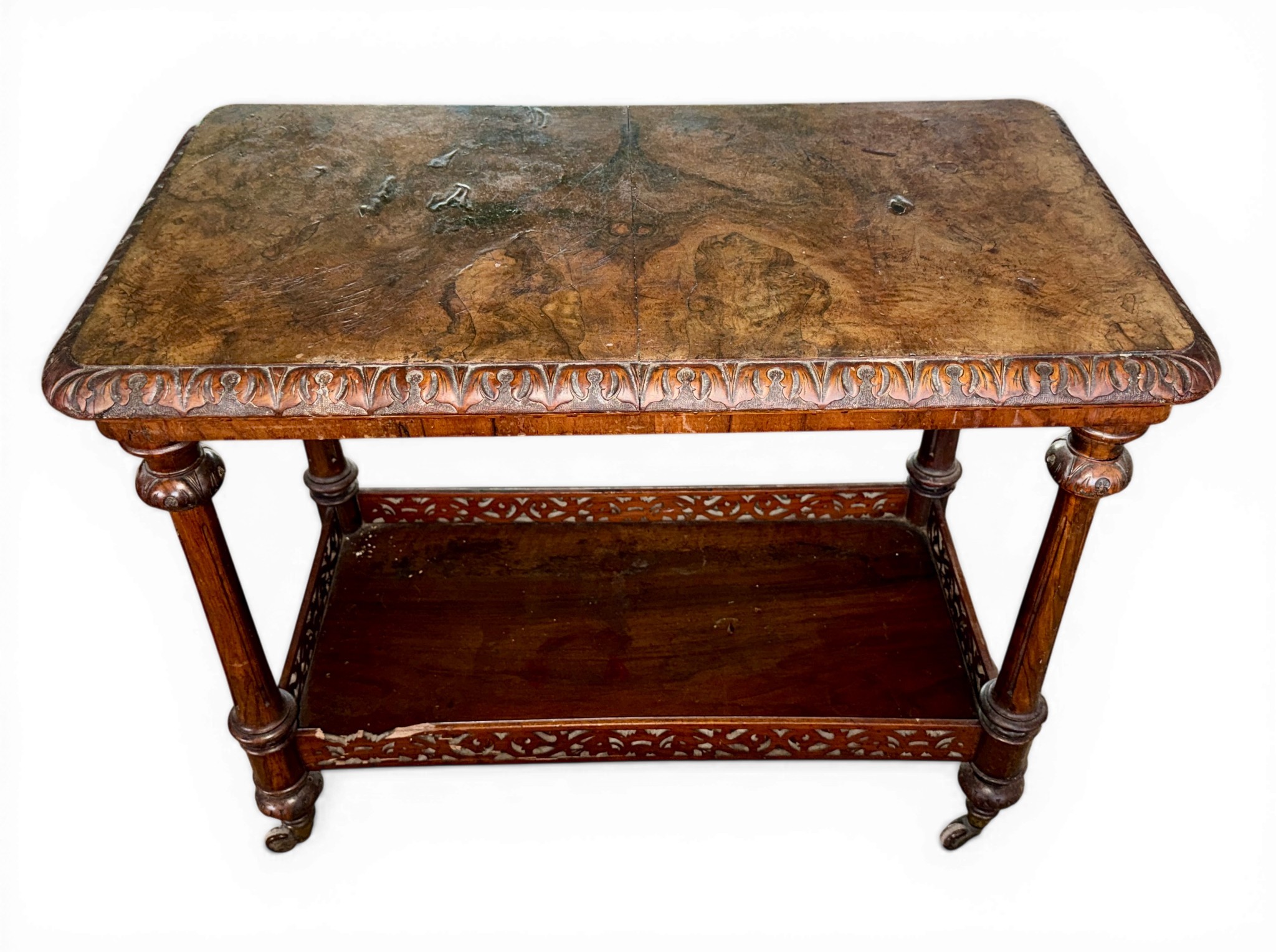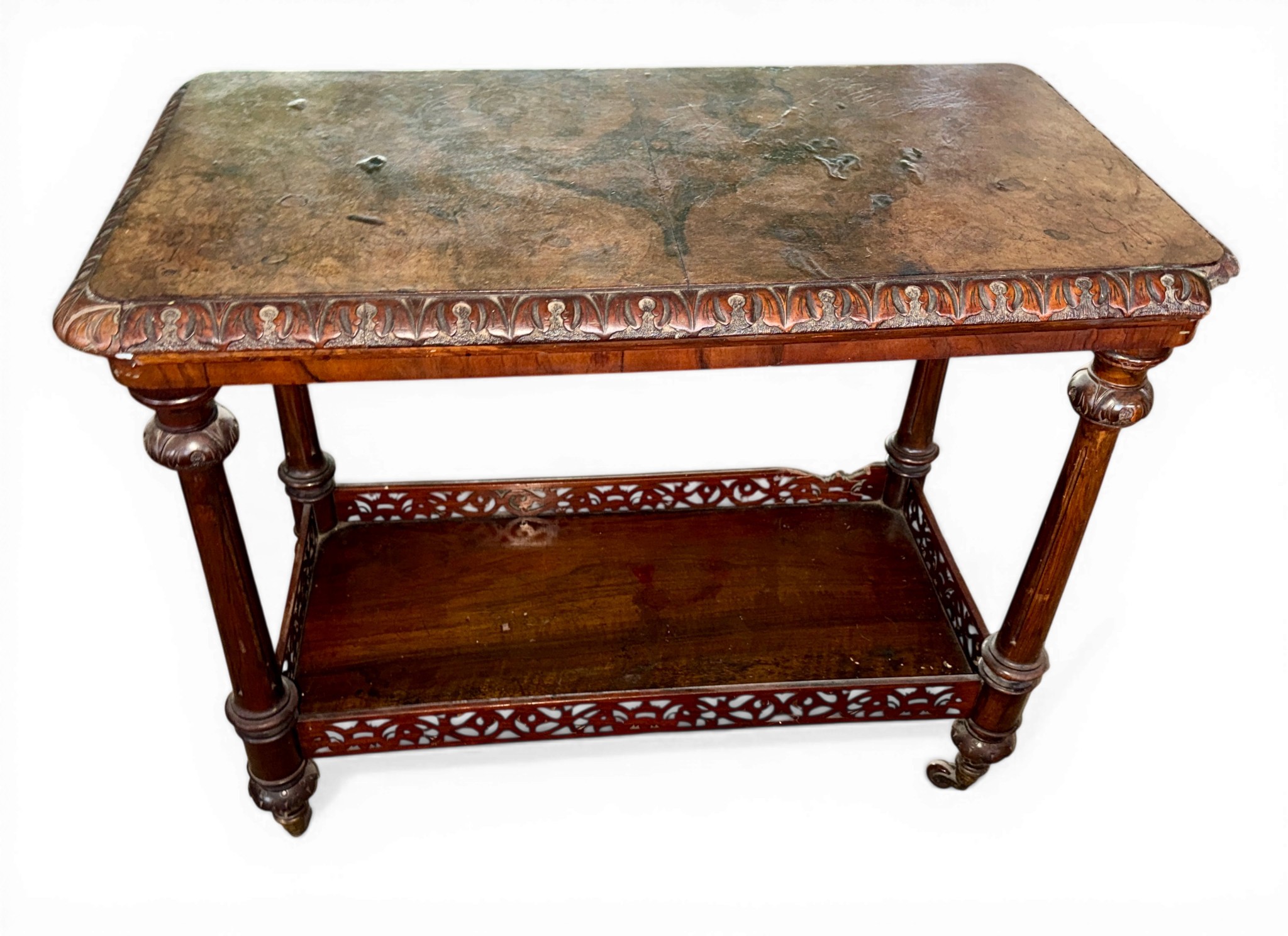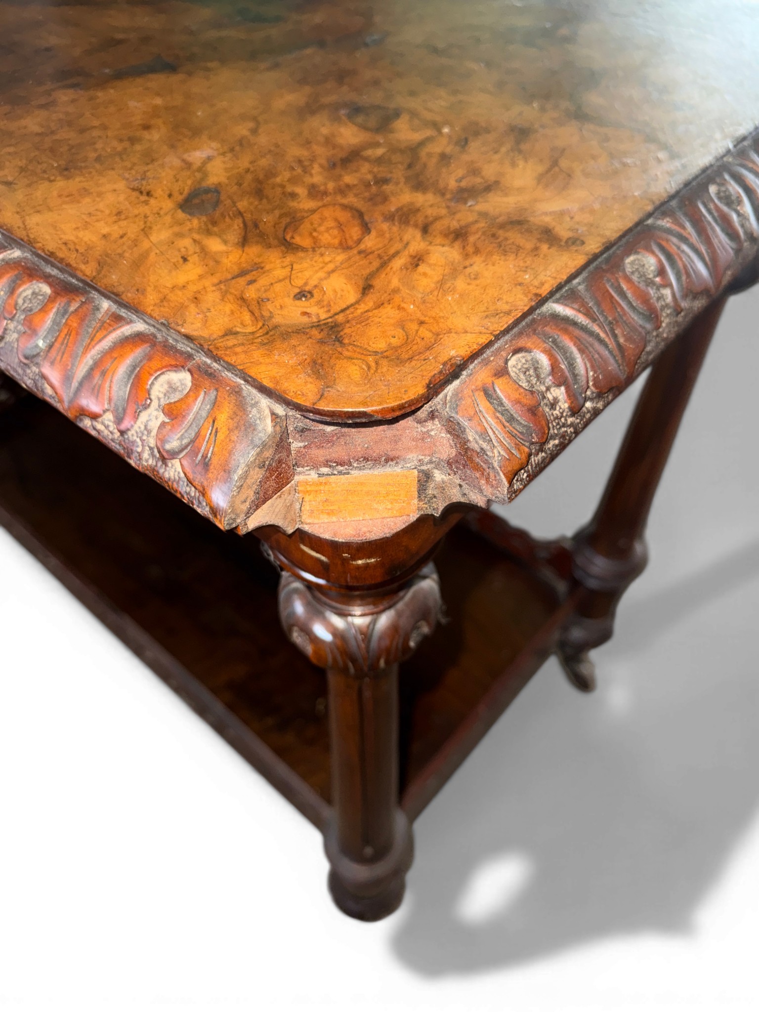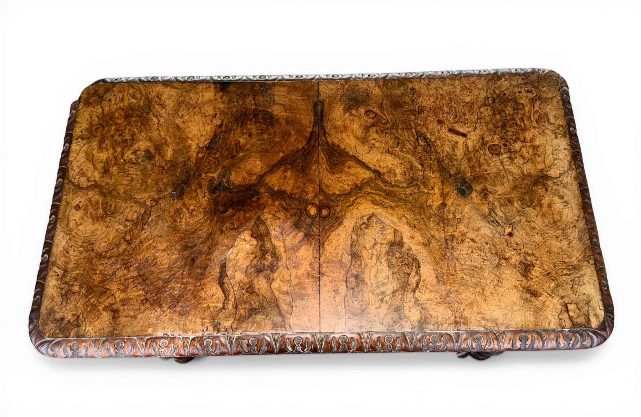 A 19thC burr walnut veneered side table. 87cm x 49cm x 71cm h.