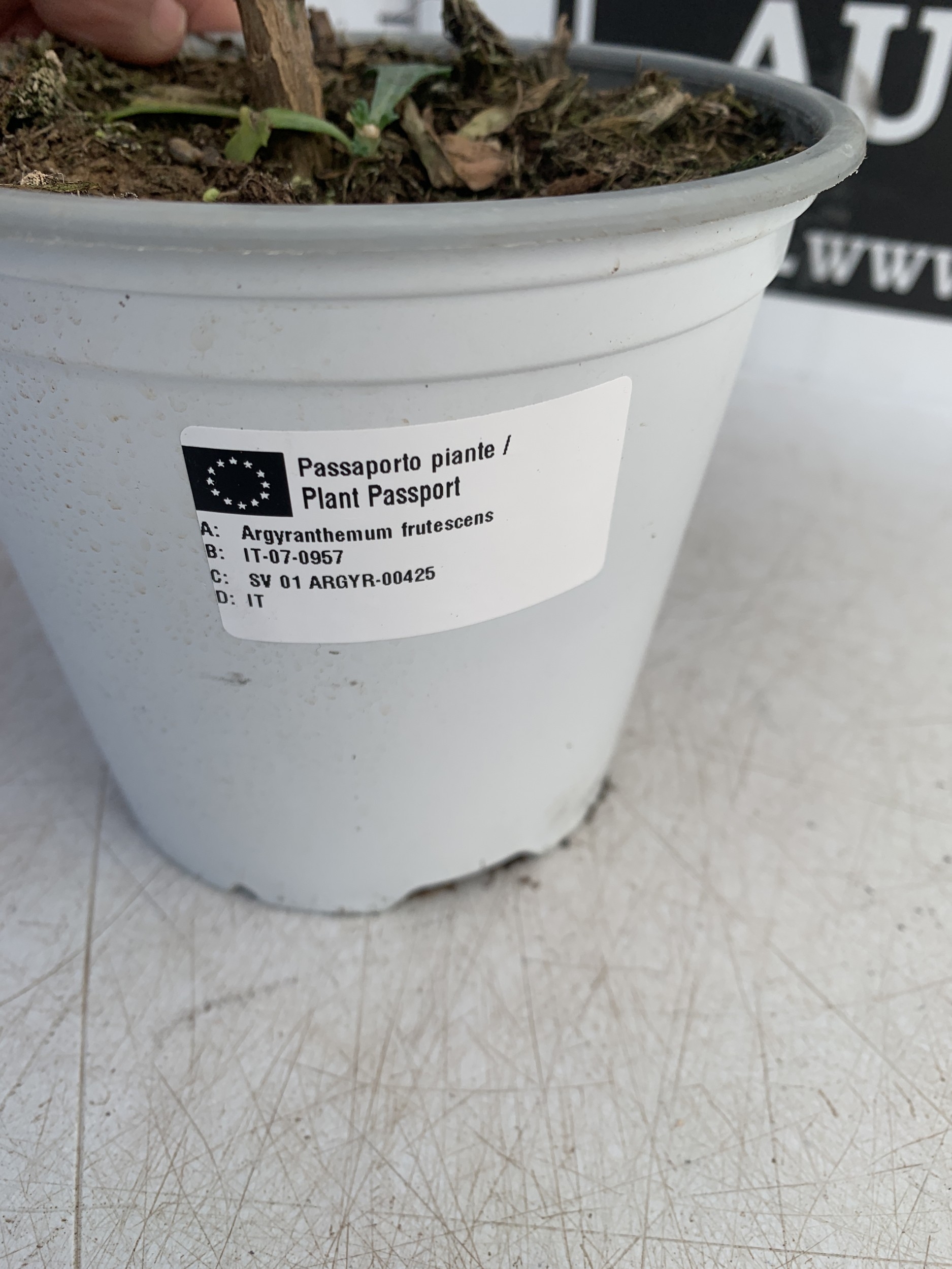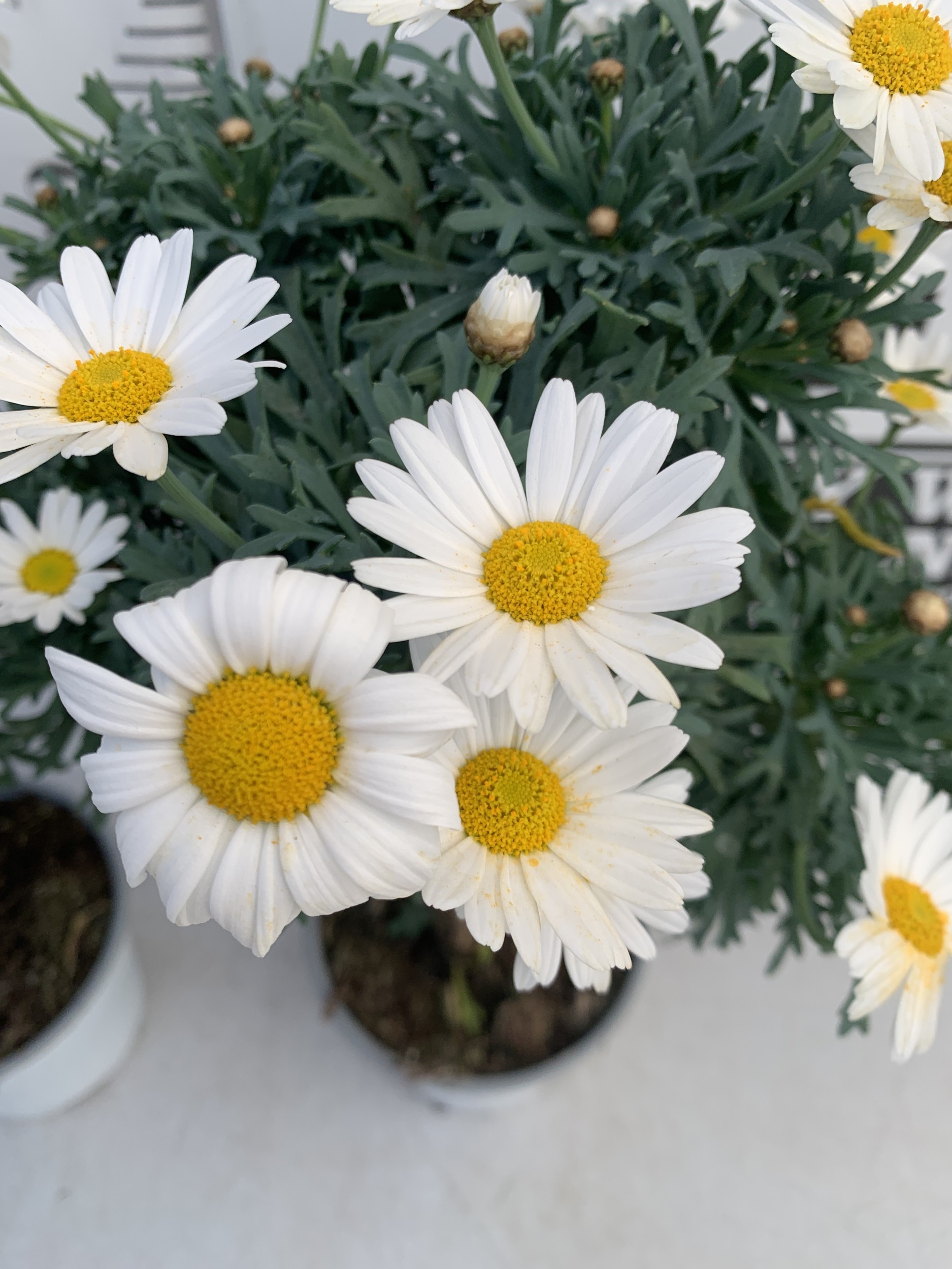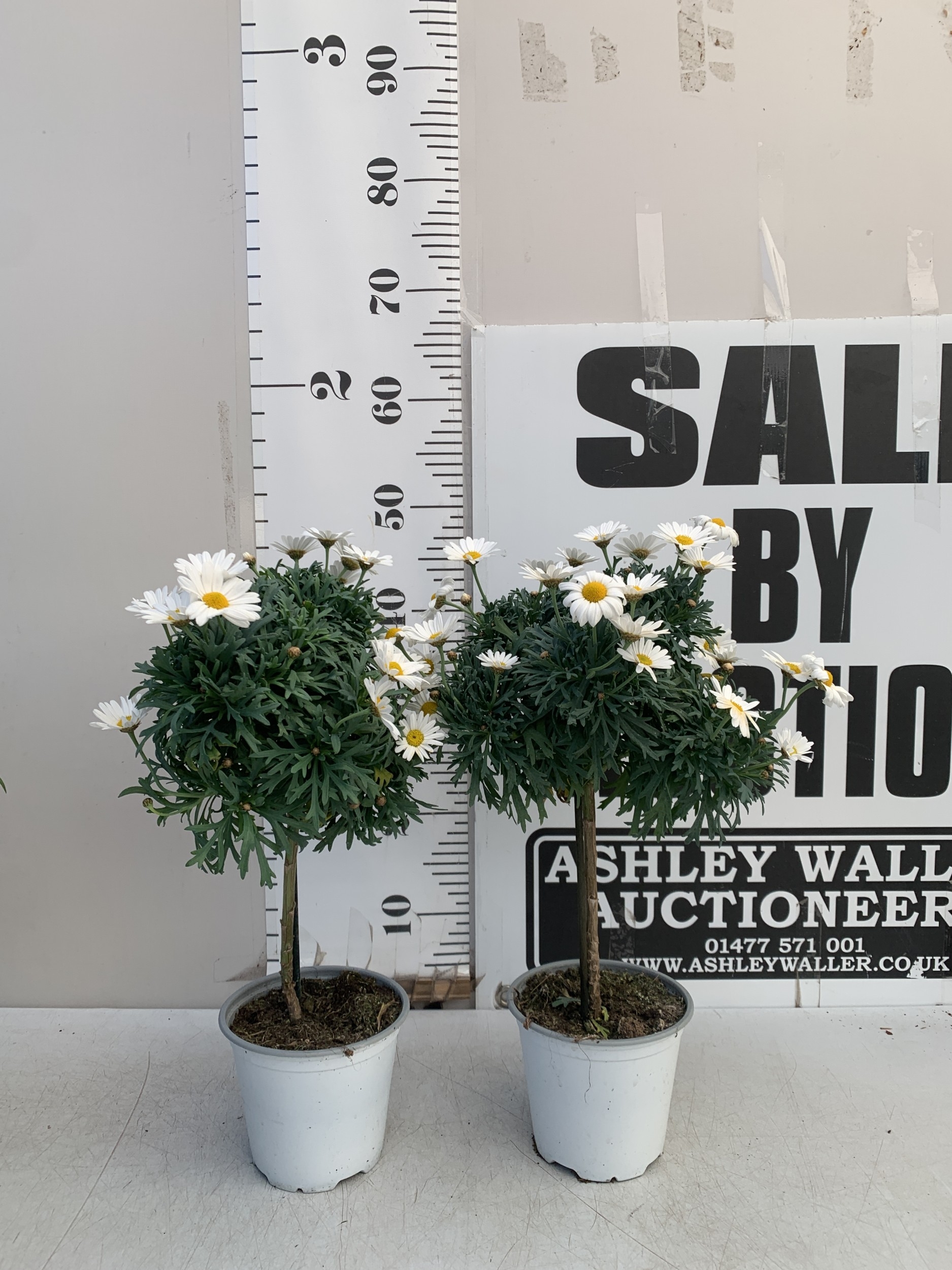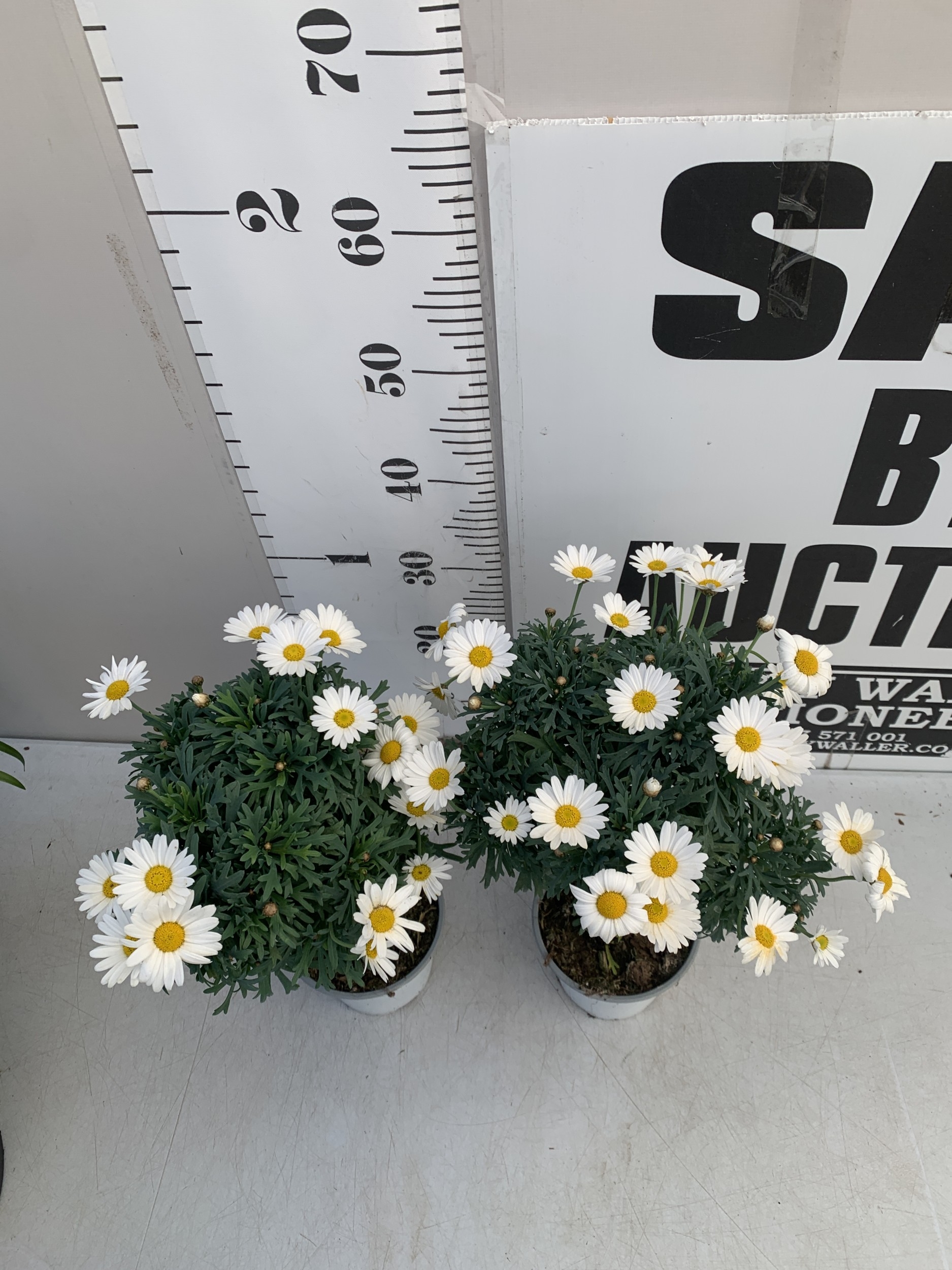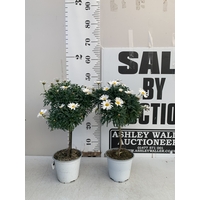 TWO WHITE CHRYSANTHEMUM FRUTESCENS IN 1.5 LTR POTS. APPROX 50CM TALL, TO BE SOLD FOR THE TWO