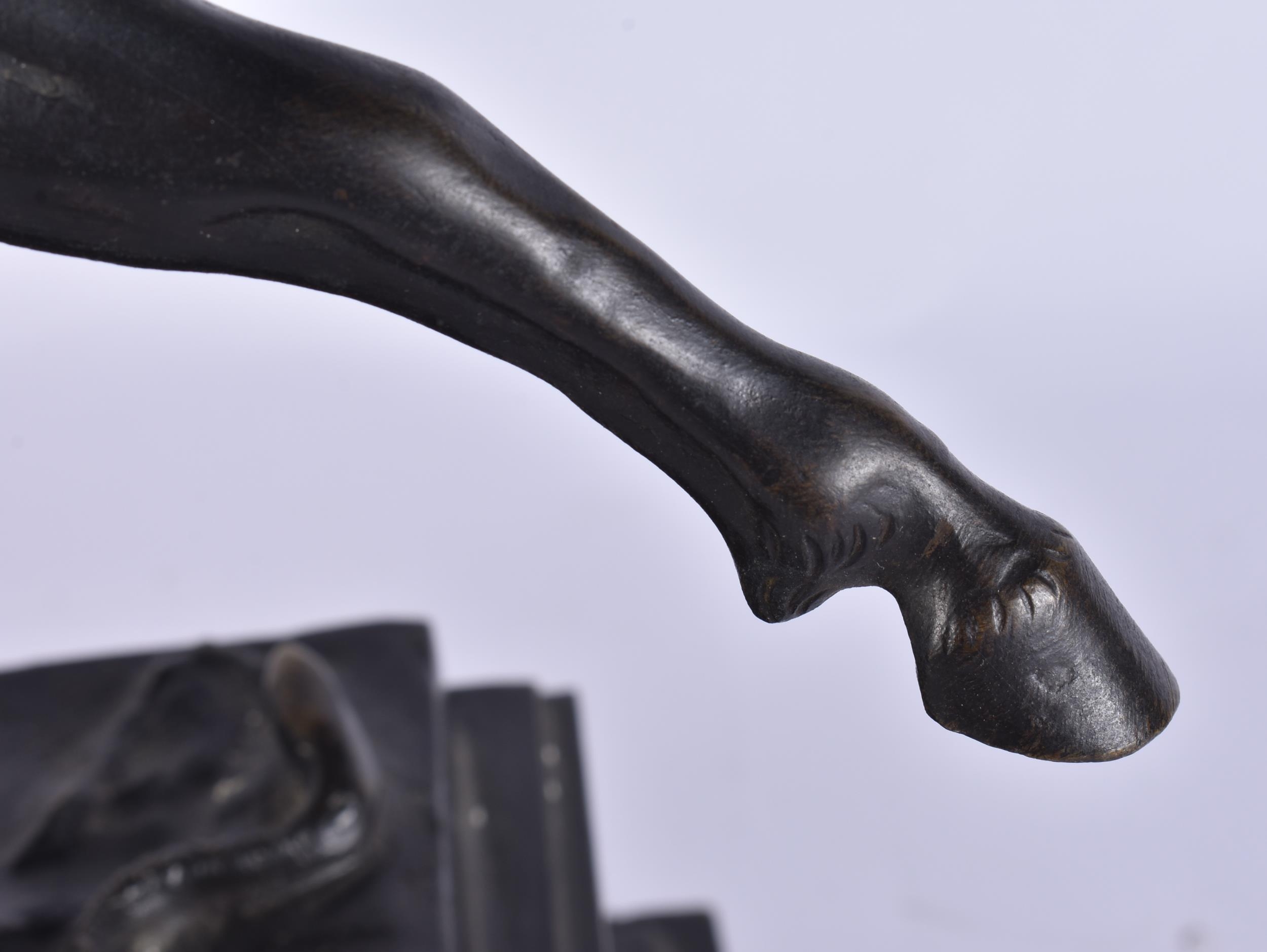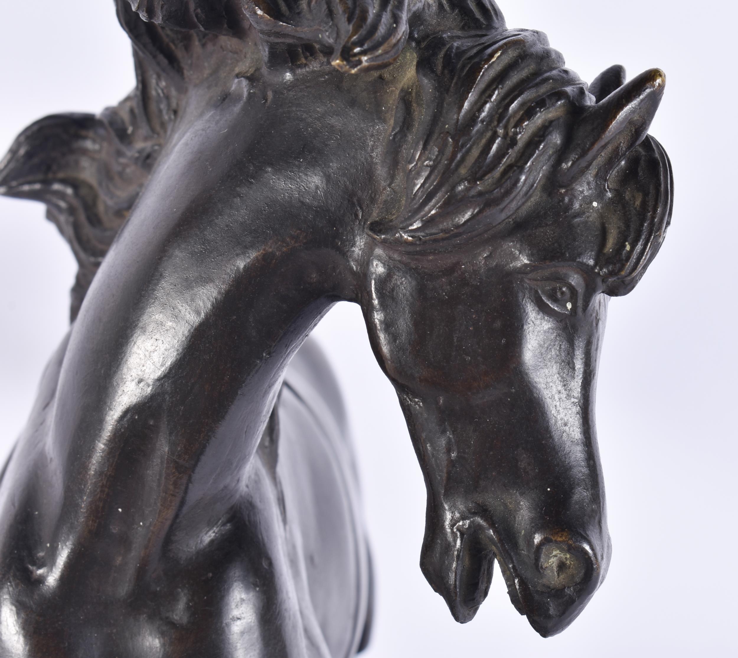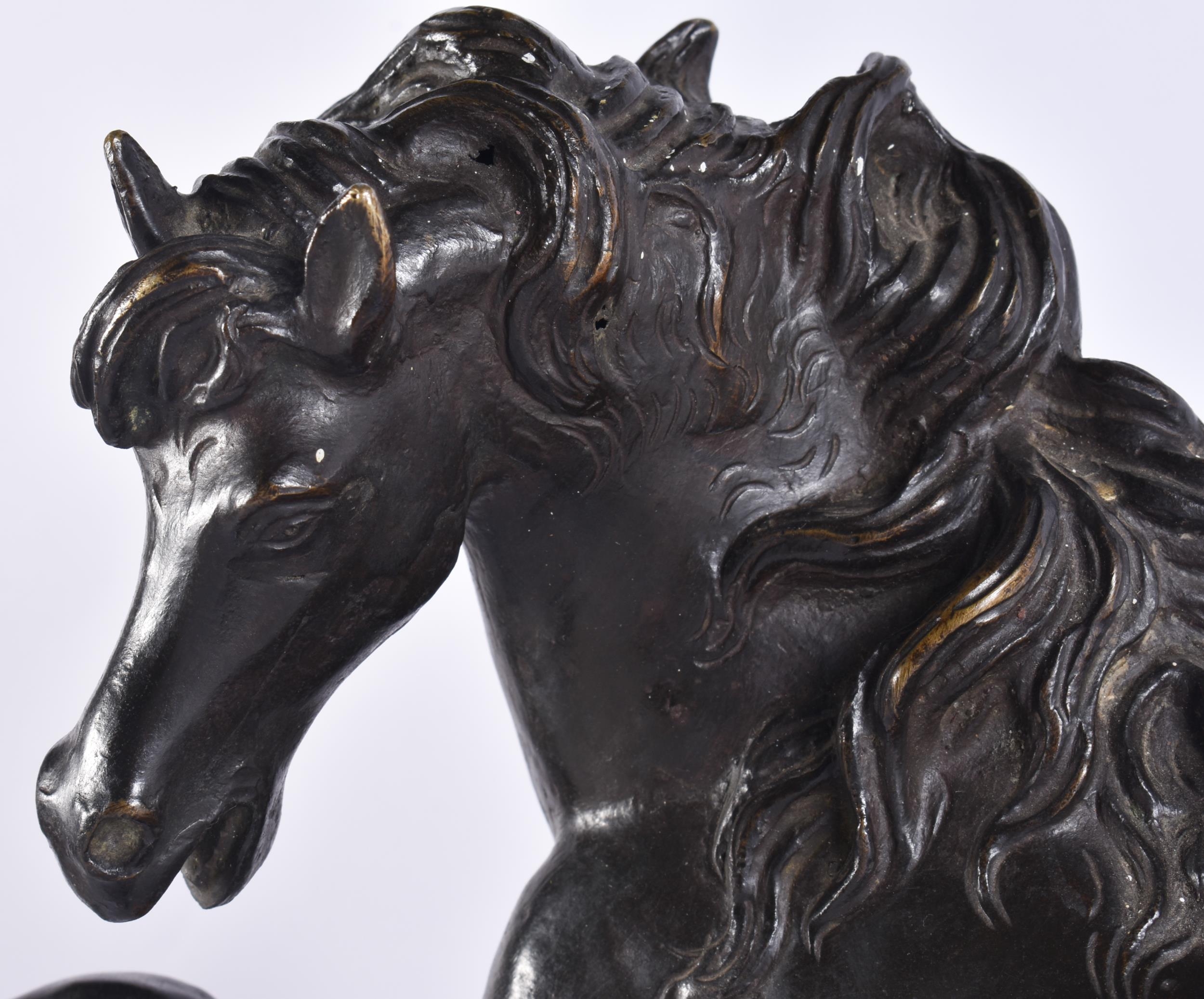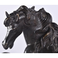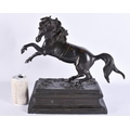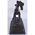 A LARGE 19TH CENTURY EUROPEAN GRAND TOUR BRONZE FIGURE OF A HORSE modelled rearing upon a rectangular base. 35 cm x 35 cm.