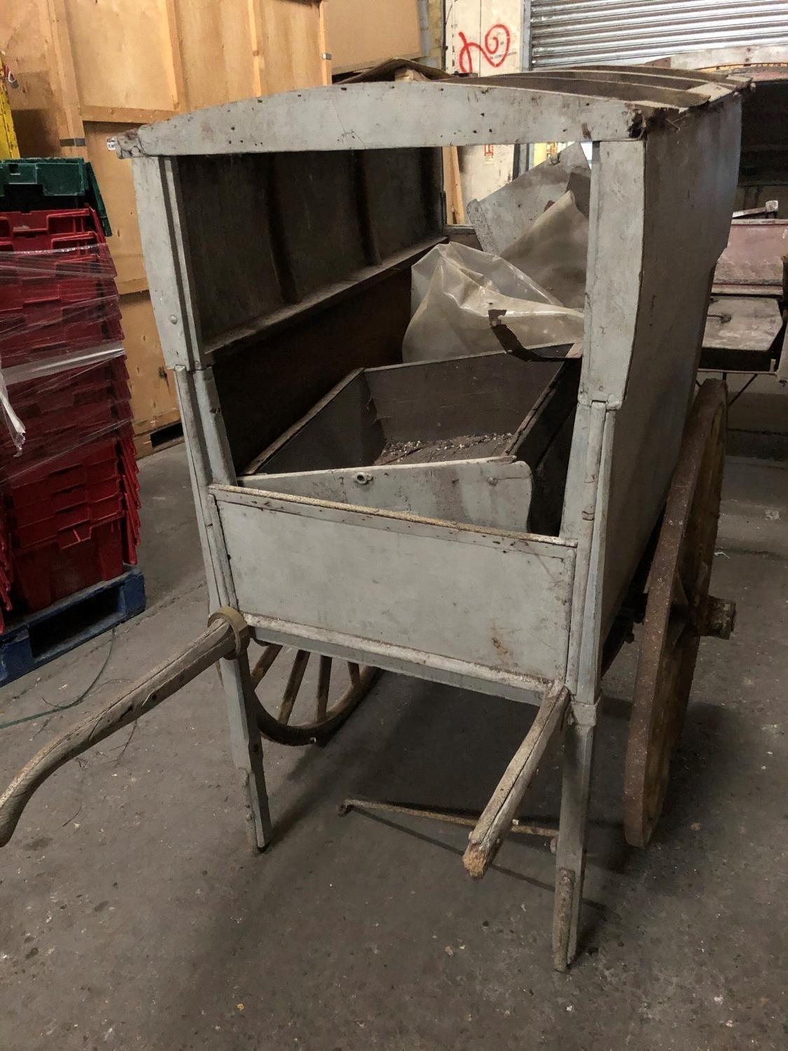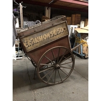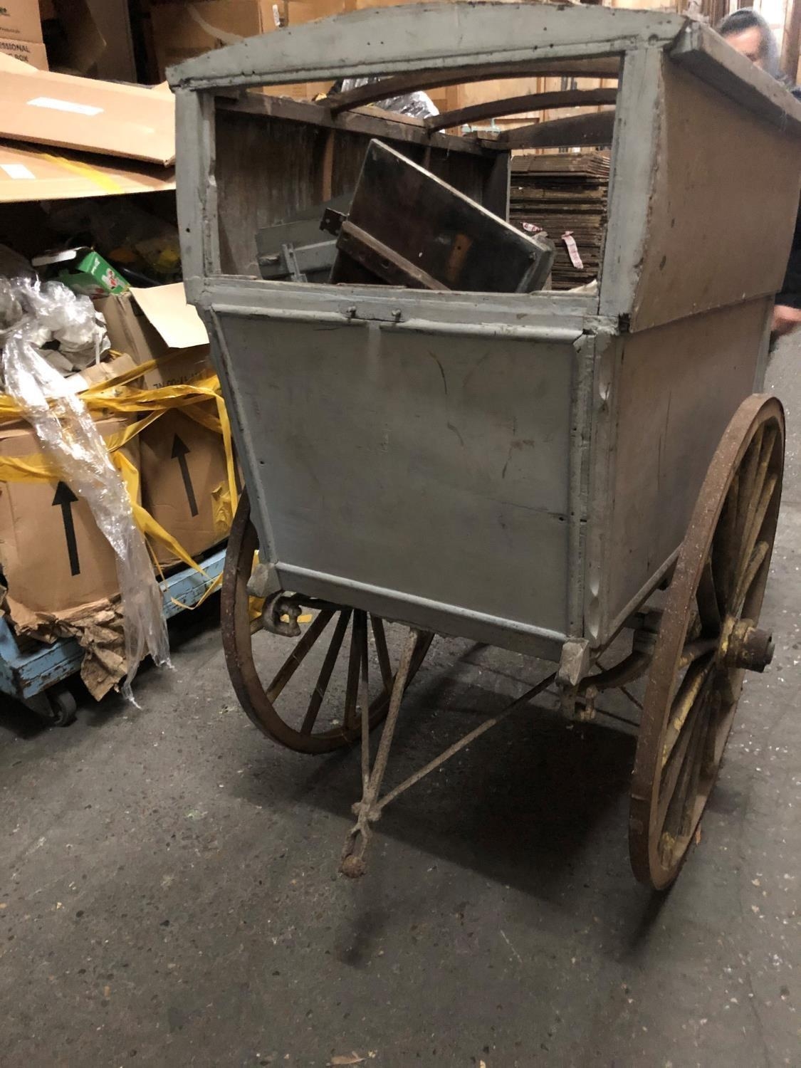 AN EDWARDIAN WOODEN TRADESMANS COVERED HAND CART