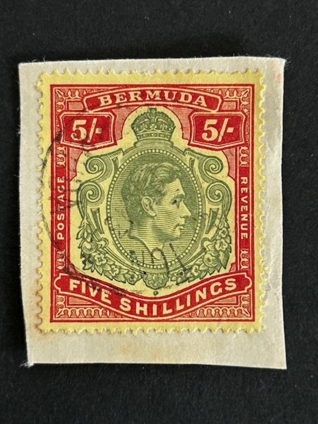 Bermuda 1938-53 5/- SG 118D superb used on piece Oct 43 date. (1) (S)
