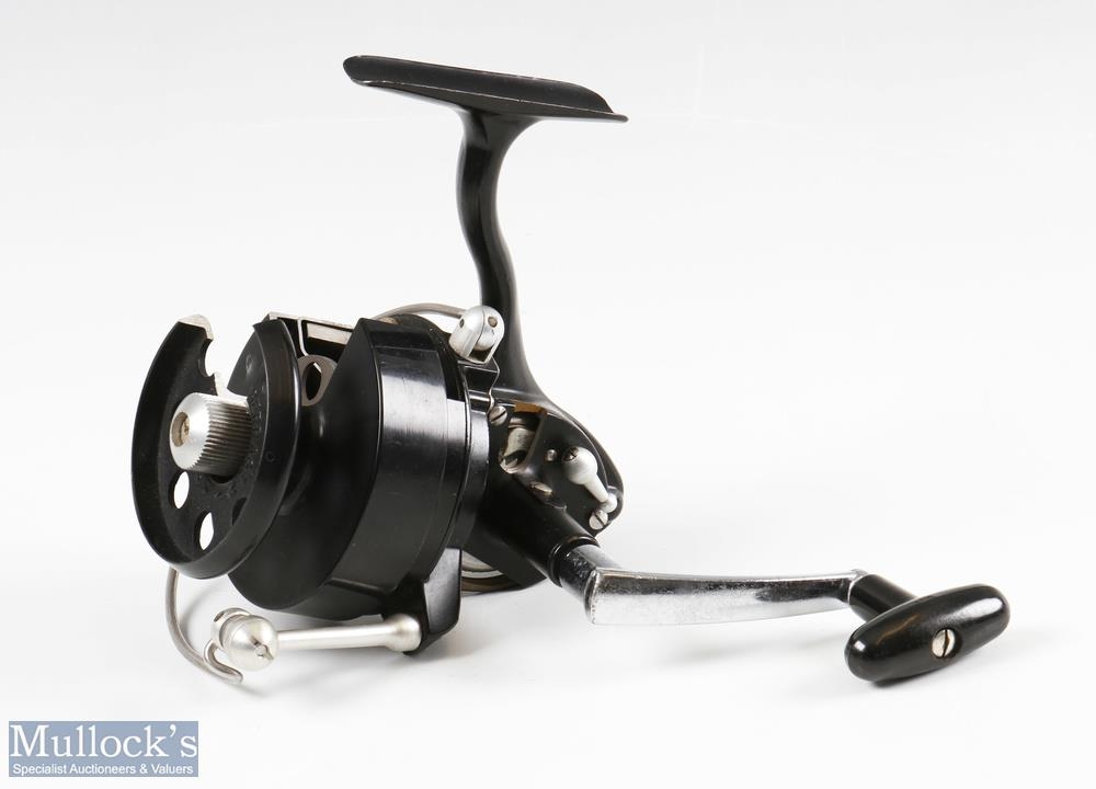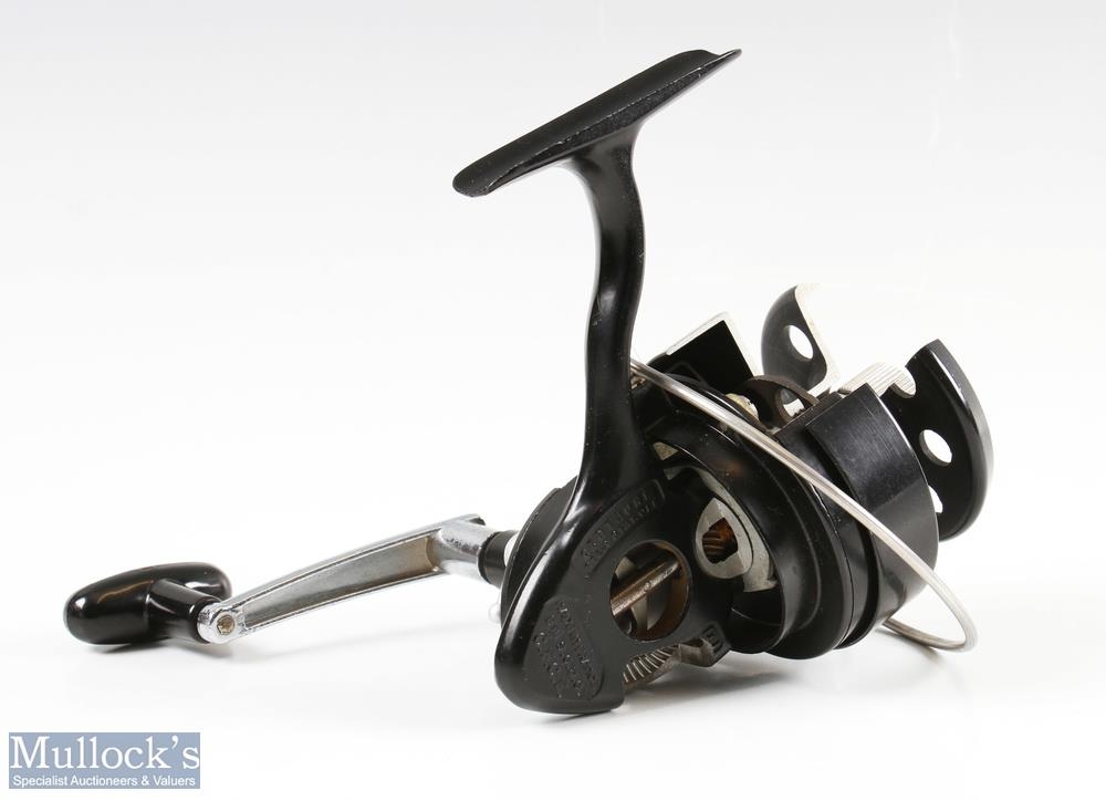 Rare Centaure Made in France Salesman Cut Away Display Spinning Reel in black finish and black handle with cut out sections to body showing gearing and mechanisms plus cut out section to spool
