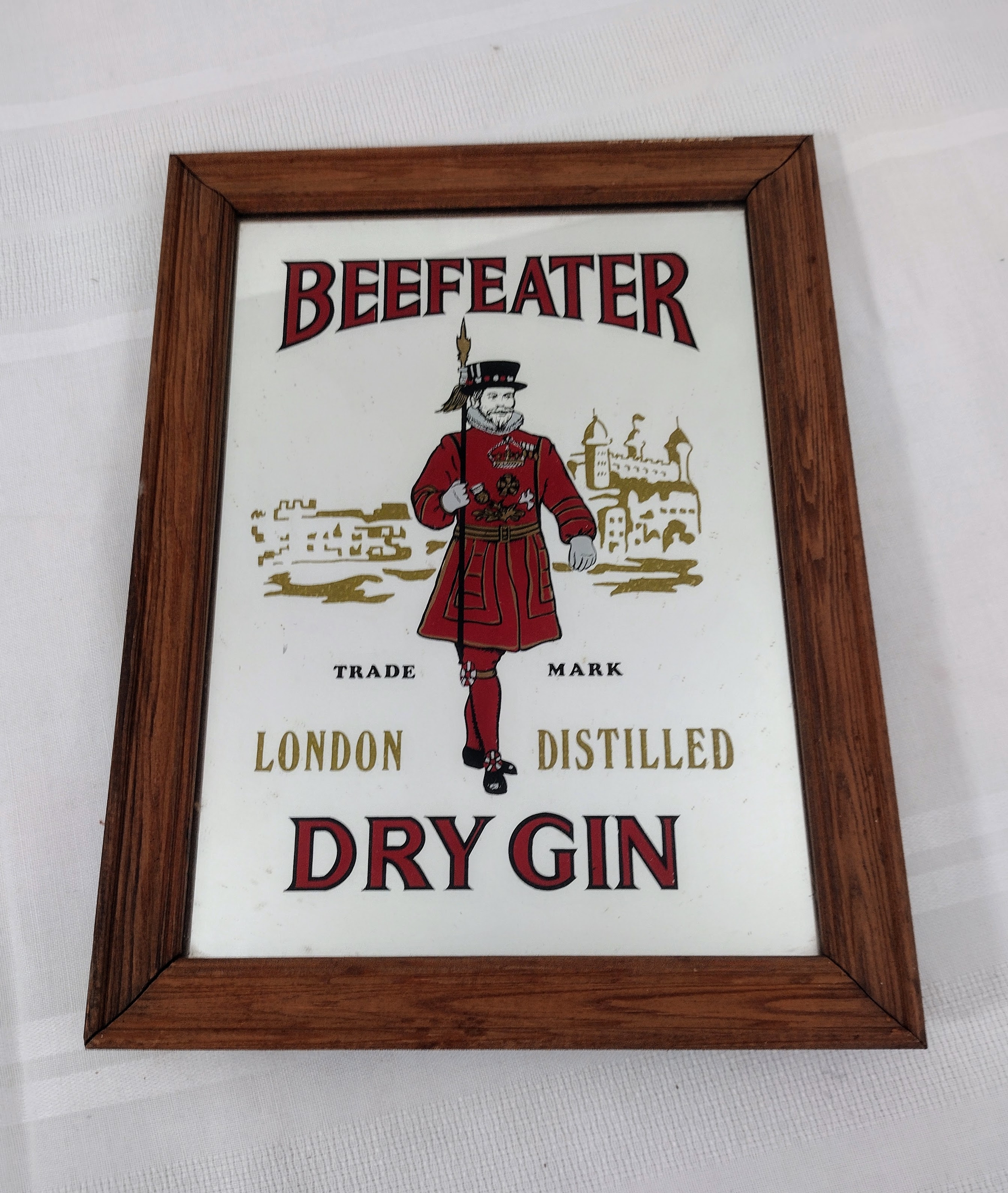 Vintage Advertising Pub Mirror Beefeater Dry Gin approx 12.5" x 9.5"