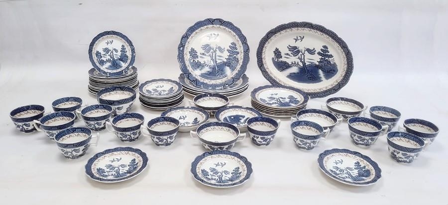Booths Real Old Willow pattern part table service comprising plates, side plates, cups, oval serving dish etc.