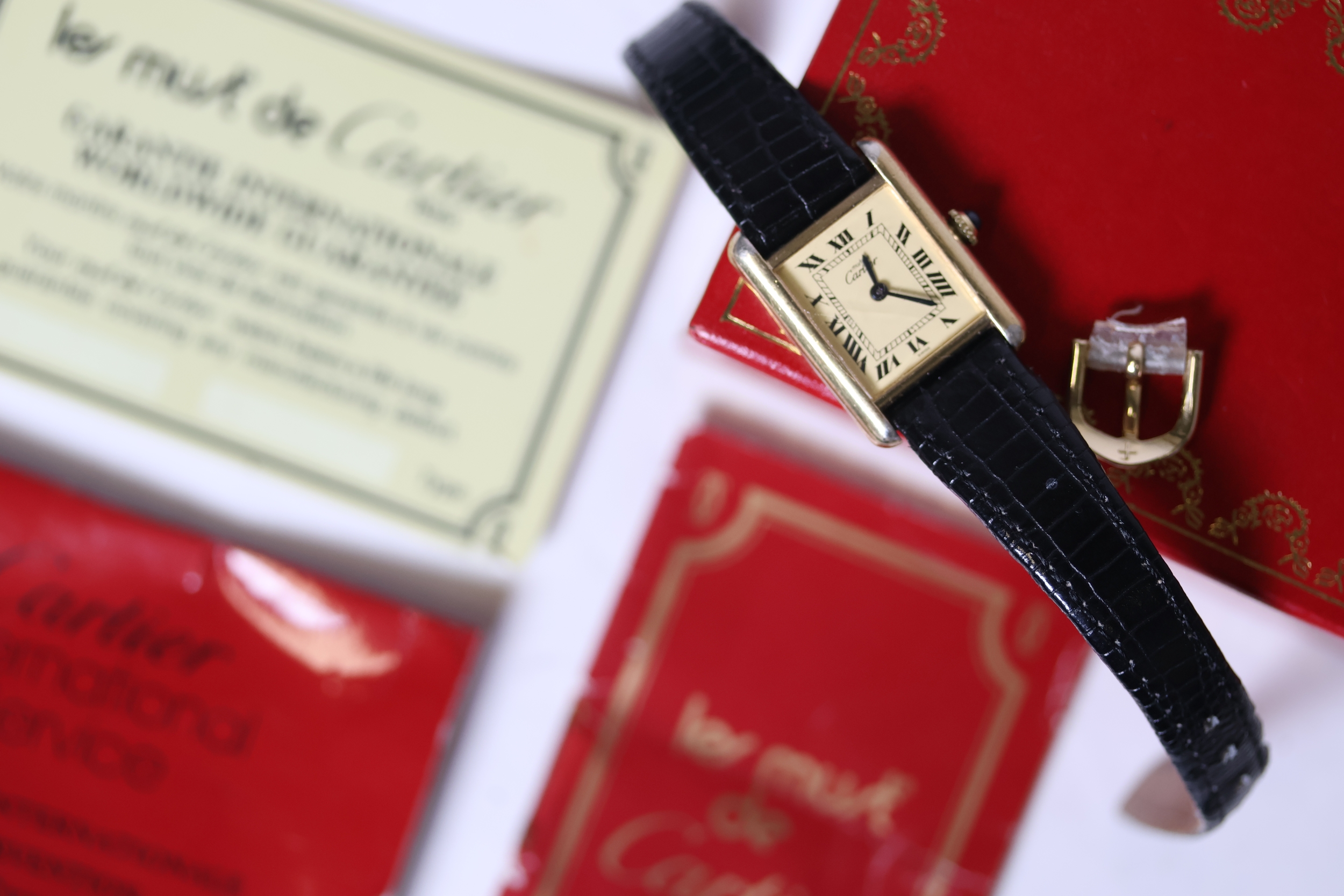 Auctioneer's notes: Comes with the original box, un-dated warranty card, Cartier service papers from 1996,