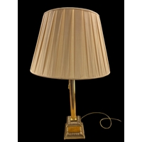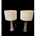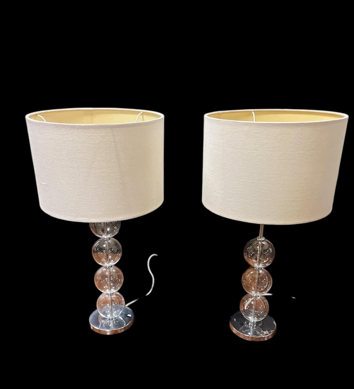 A PAIR OF CLEAR GLASS AND CHROME TABLE LAMPS each with a knopped column above a circular foot with shades 58cm (h), IRISH SCHOOL