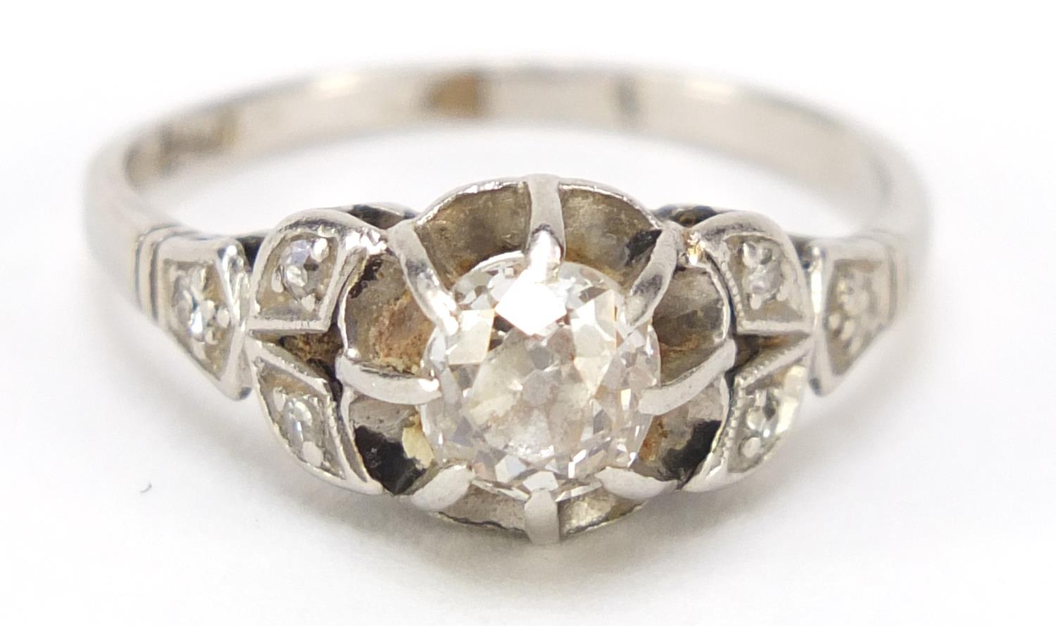 Art Deco 18ct gold solitaire diamond ring, size O, 3.6g