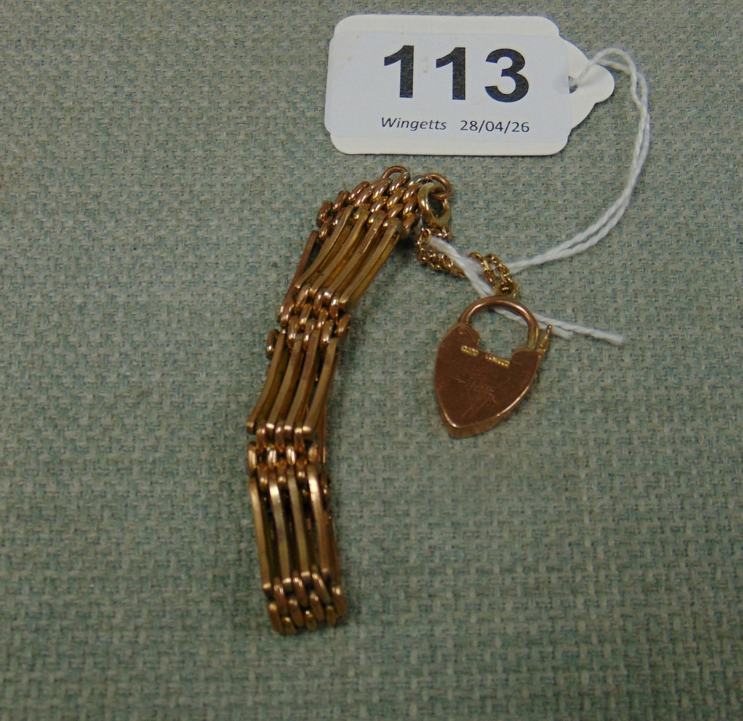9ct gold gate bracelet, having heart shaped padlock, 15.3 gms