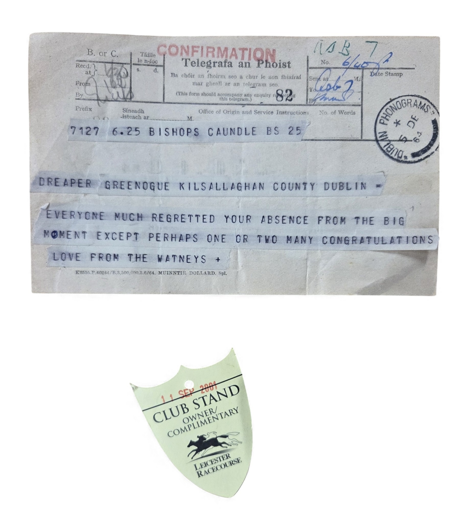 A collection of very good photographs of Lester Piggott, a vintage Telegraph along with a photograph of Vincent O'Brien.