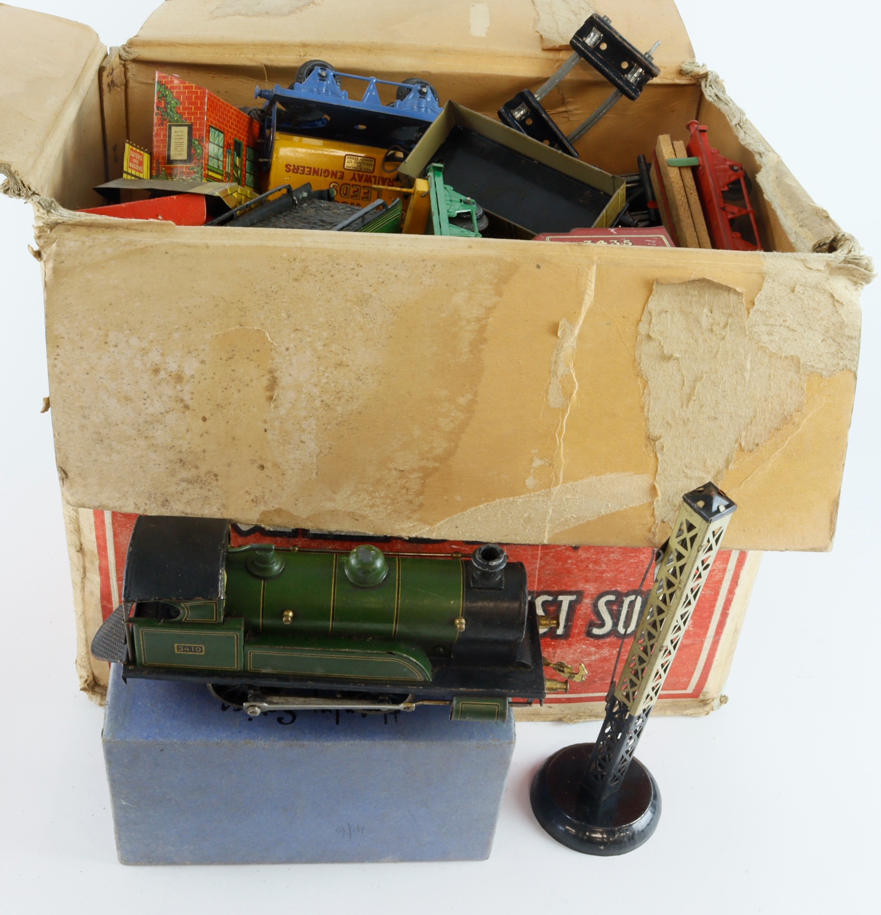 O Gauge. A collection of O Gauge model railway, including two locomotives (with tenders), wagons, track, etc.