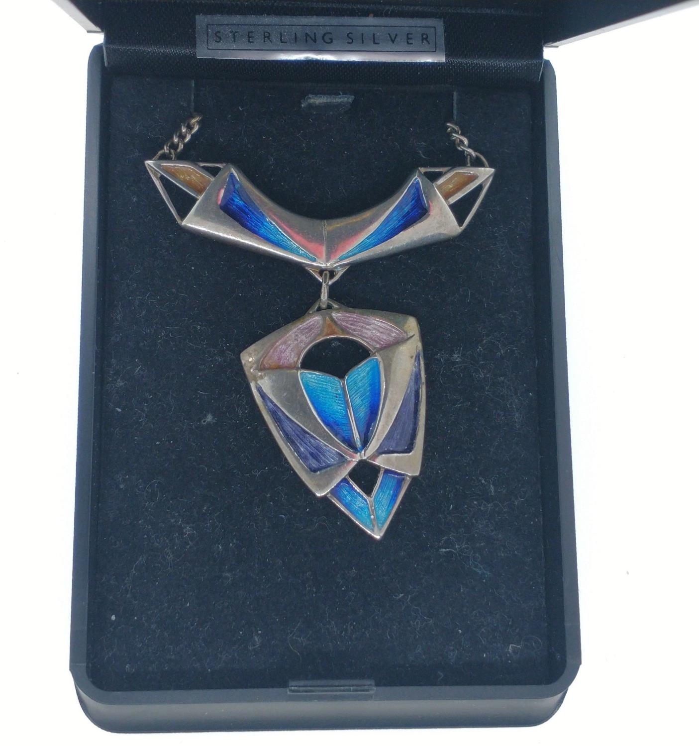 ORTAK 925 stamped silver and enamel torc. 24cm long.