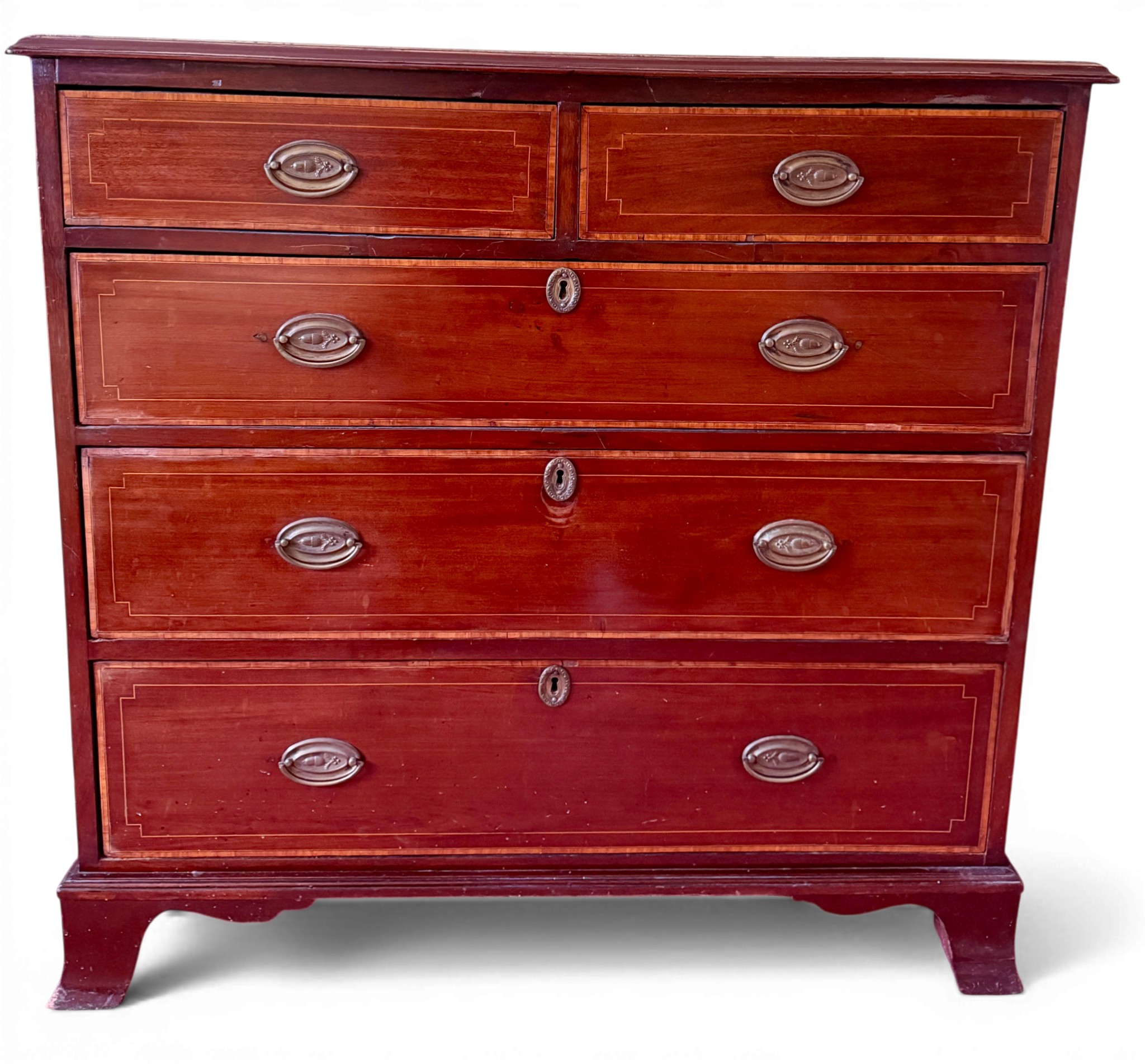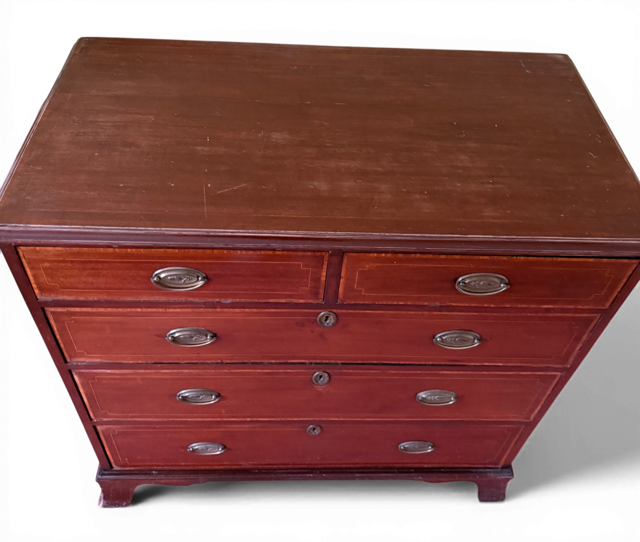 A 19thC chest of drawers, 2 over 3 with splay bracket feet. 101 w x 52 d x 96cm h.