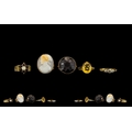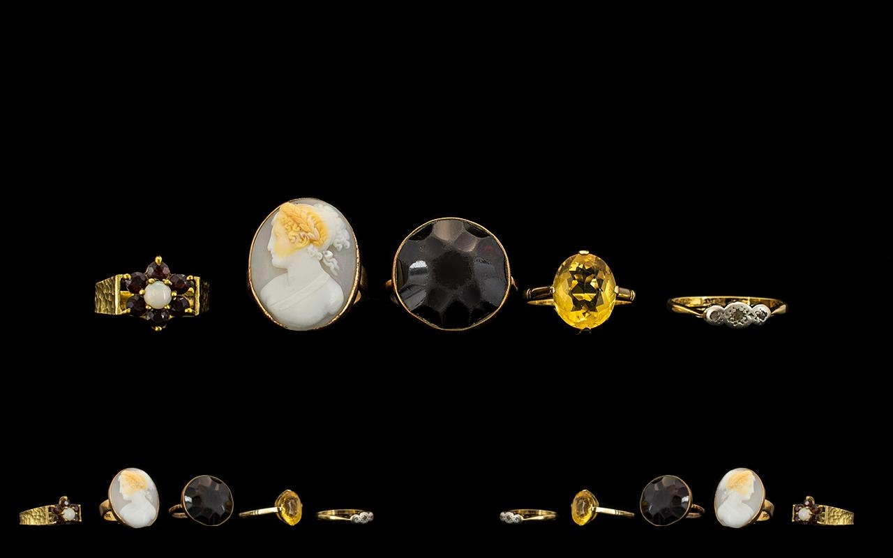 Collection of Five 9ct Gold Stone Set Ladies Rings. All rings fully hallmarked for 9ct. Please see photo. All in excellent condition. Stones include amethysts, garnet, opal and rubies. Please confirm with photo. 18.8 grams.
