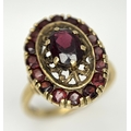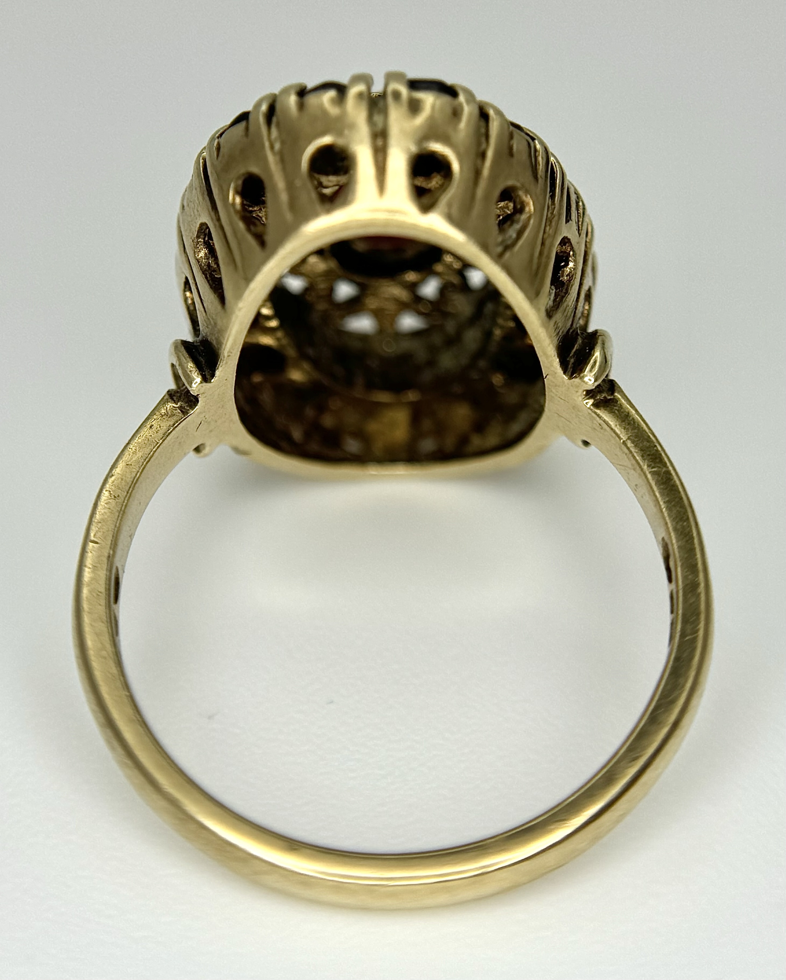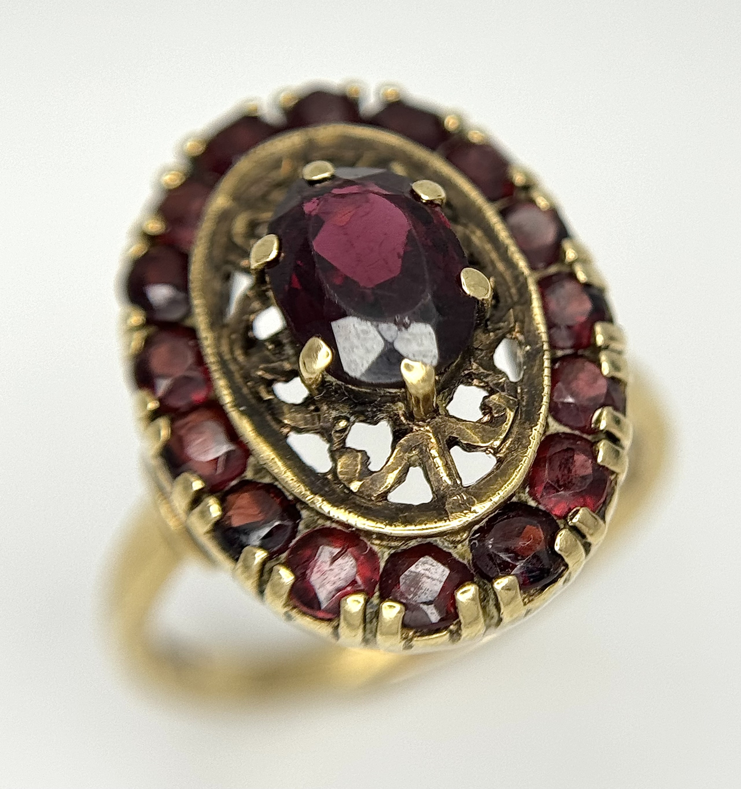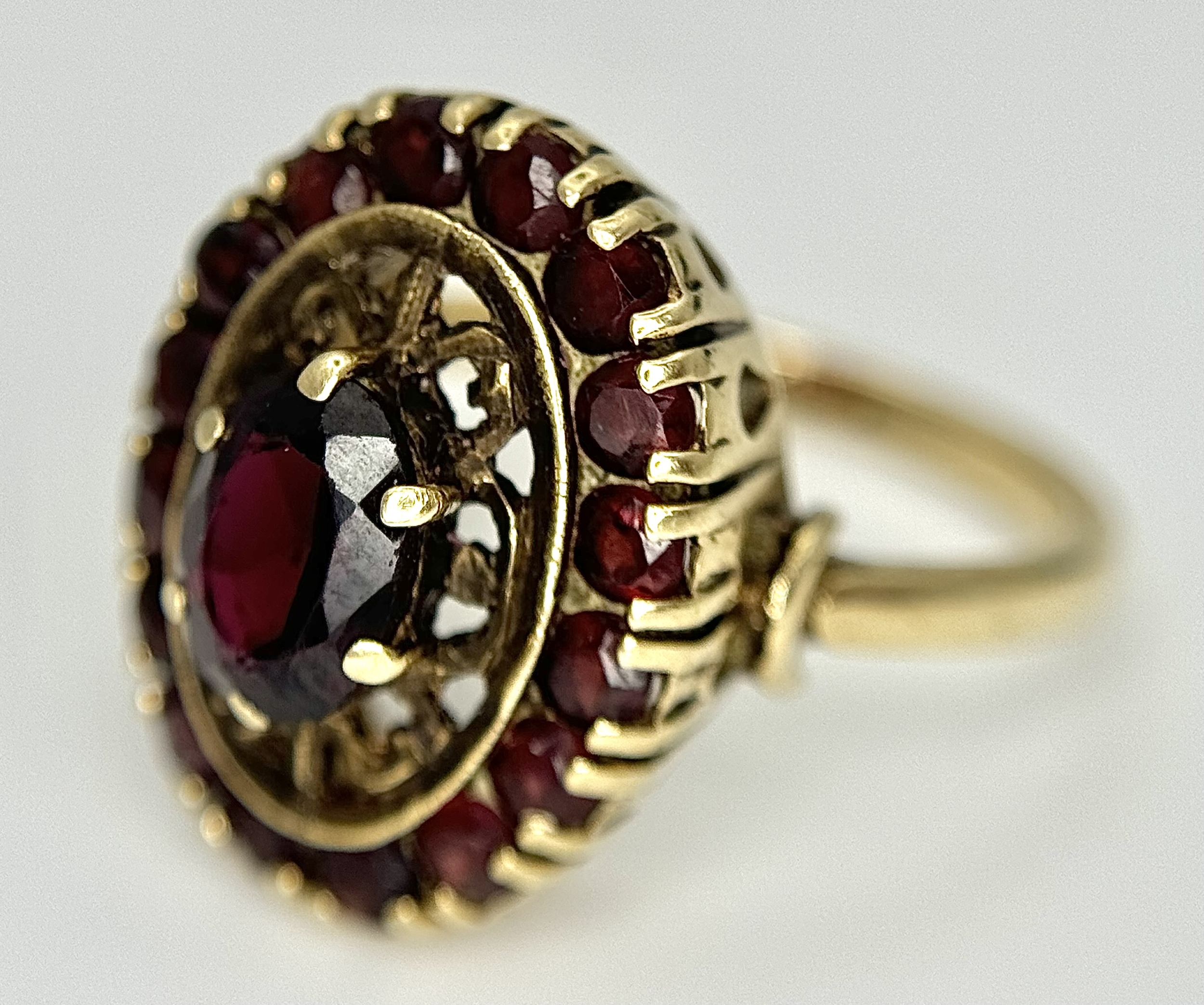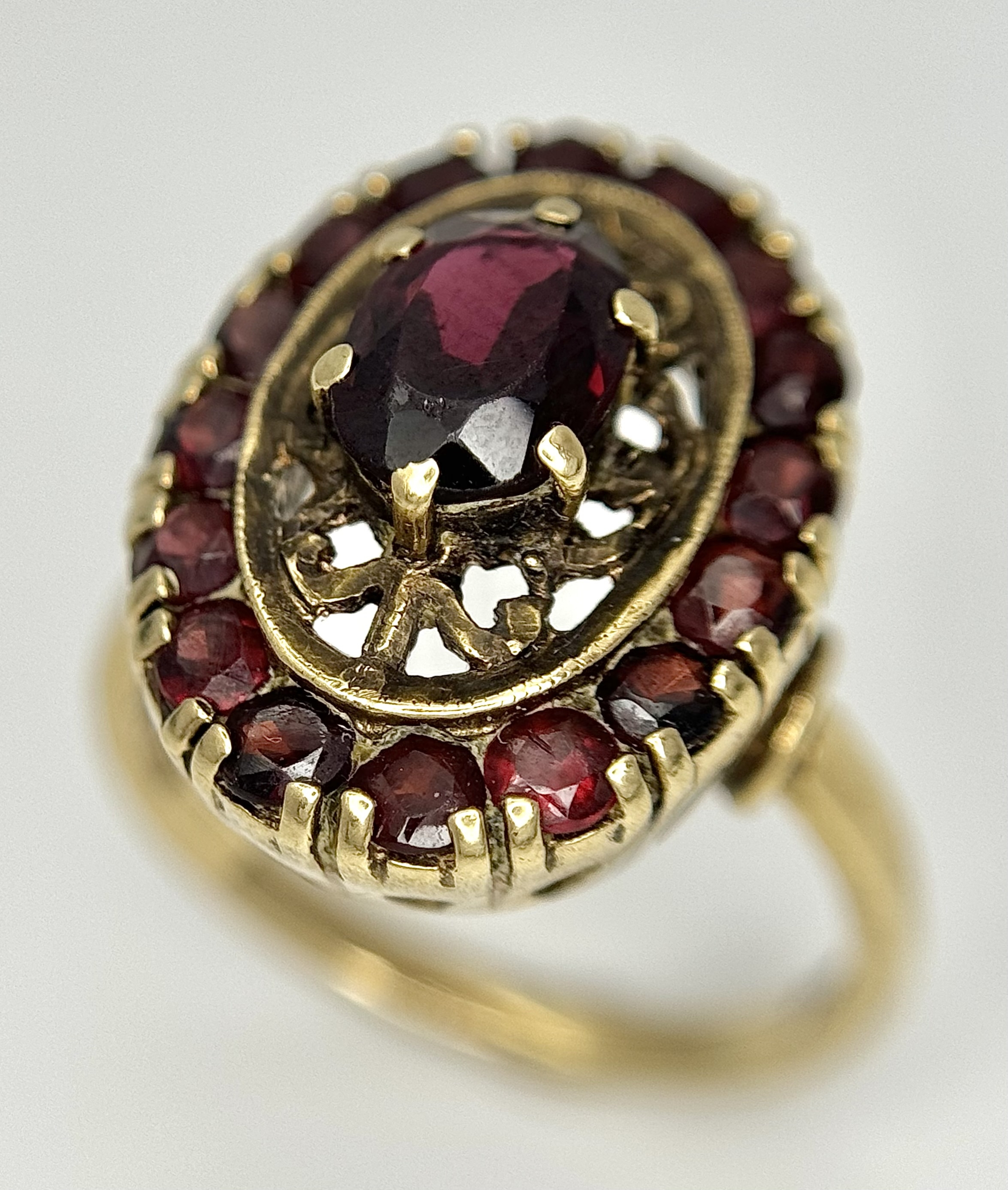 An impressive 9 CARAT GOLD GARNET DRESS RING. 4 .7 Grams. Size M.