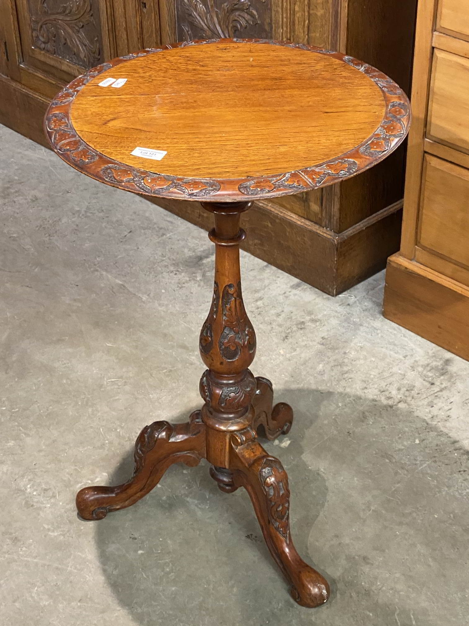 Victorian carved mahogany pedestal lamp table 70H 45cm diameter