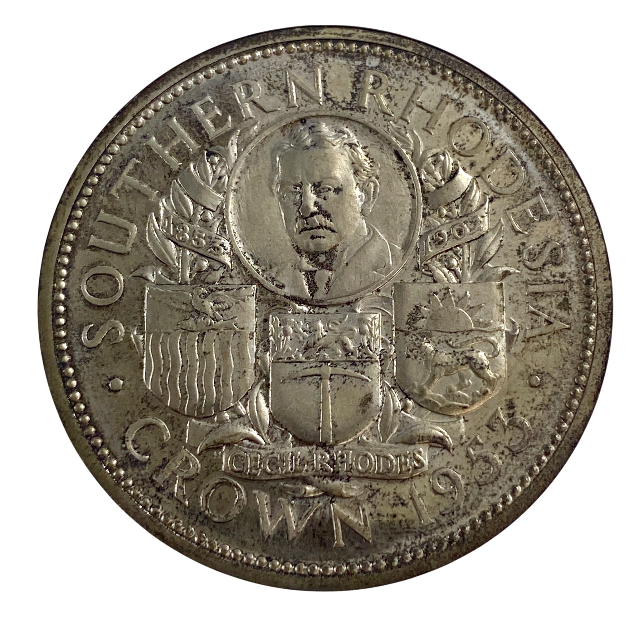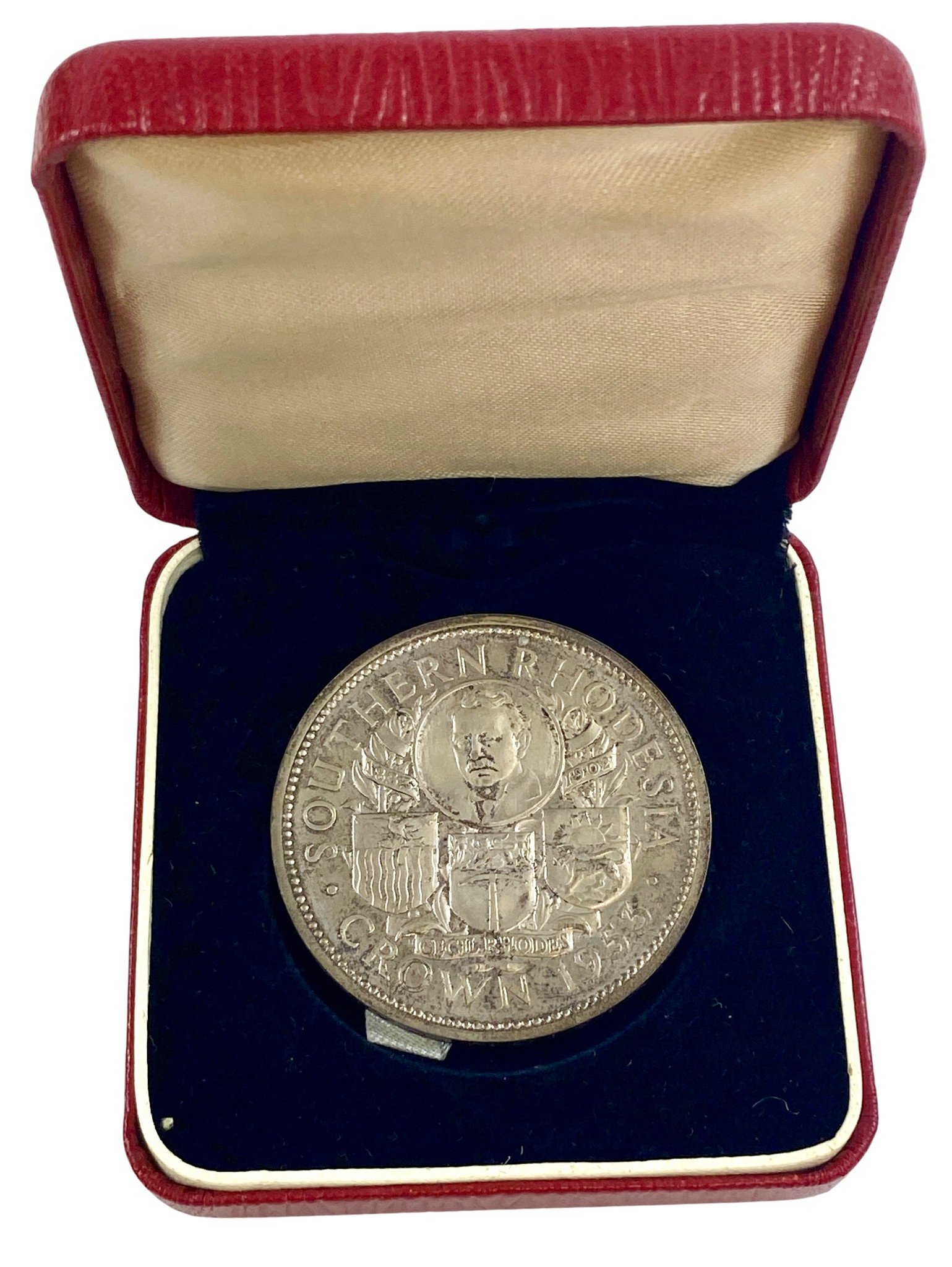 Southern Rhodesia 1953 proof silver crown in crested case of issue.
