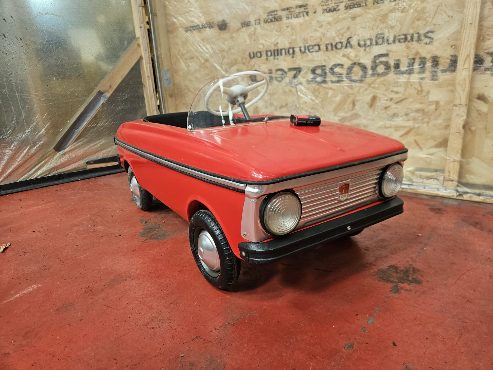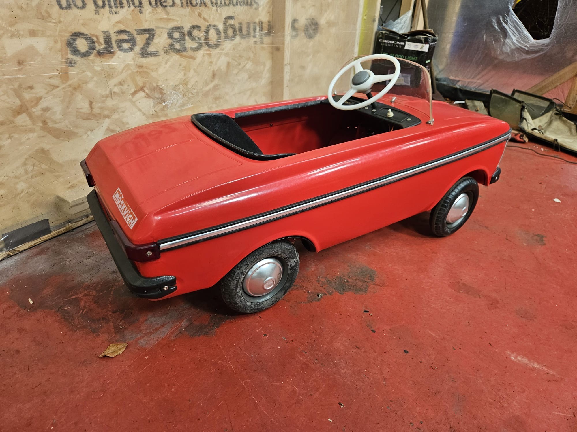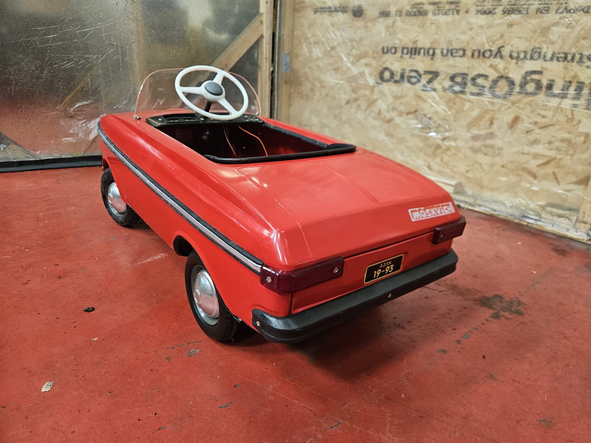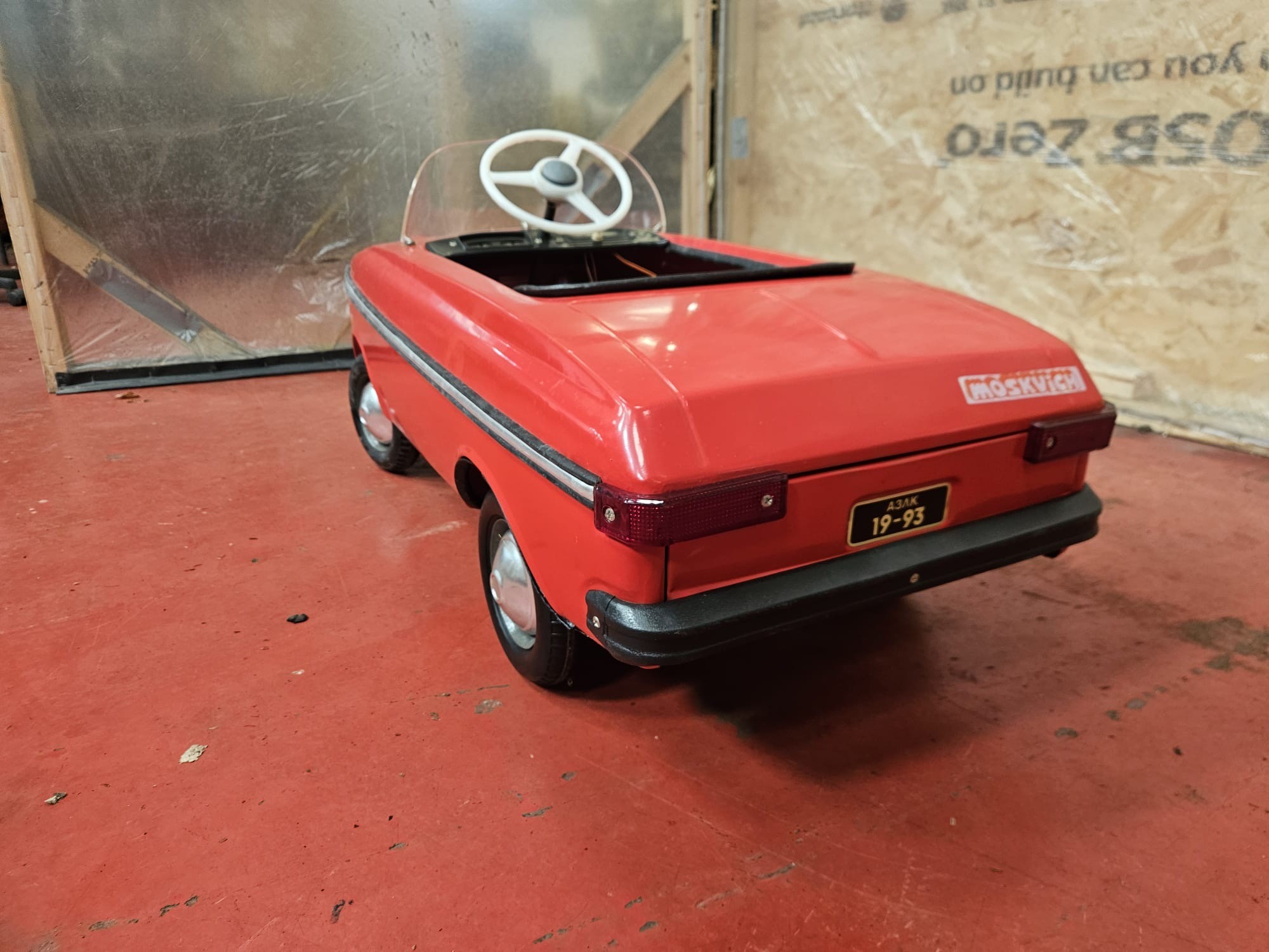 Moskvich Russian Pedal Car - Red, New Old Stock with original shipping box, battery and sales sheet