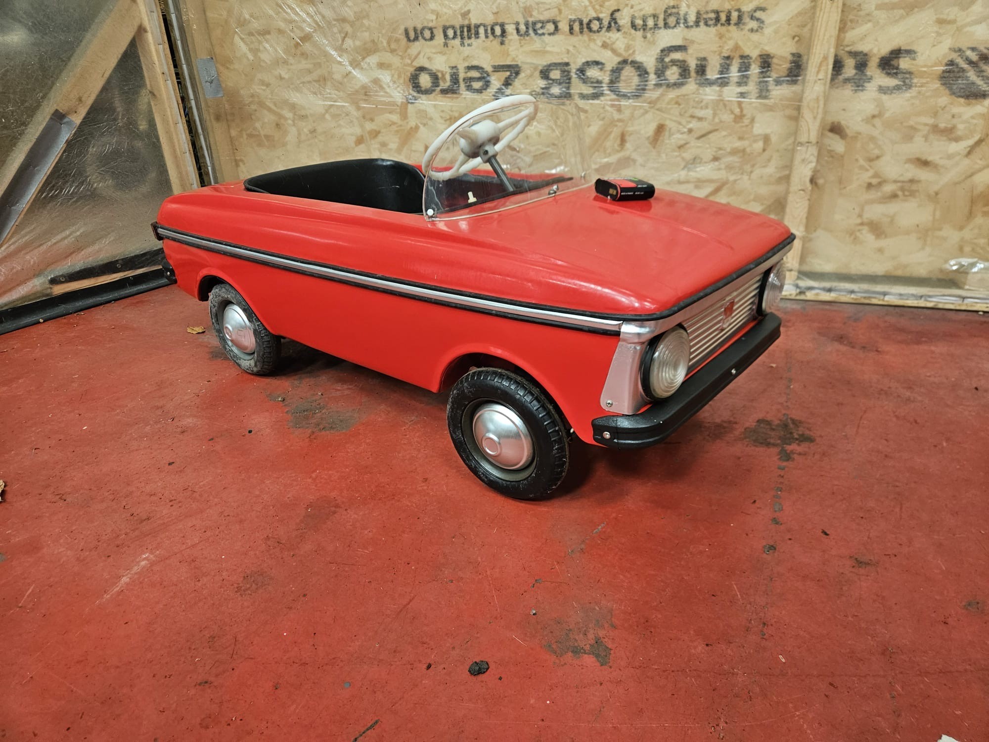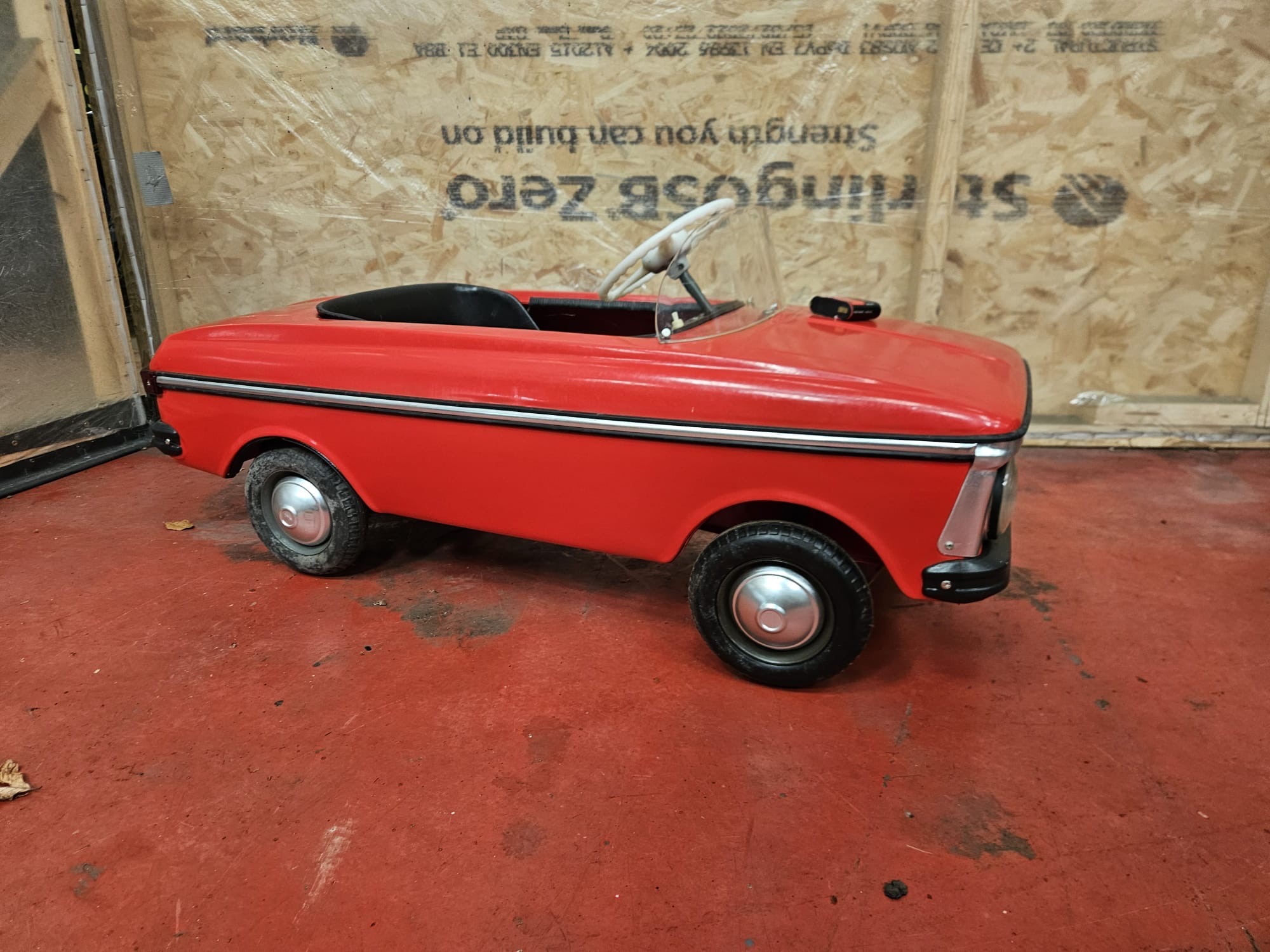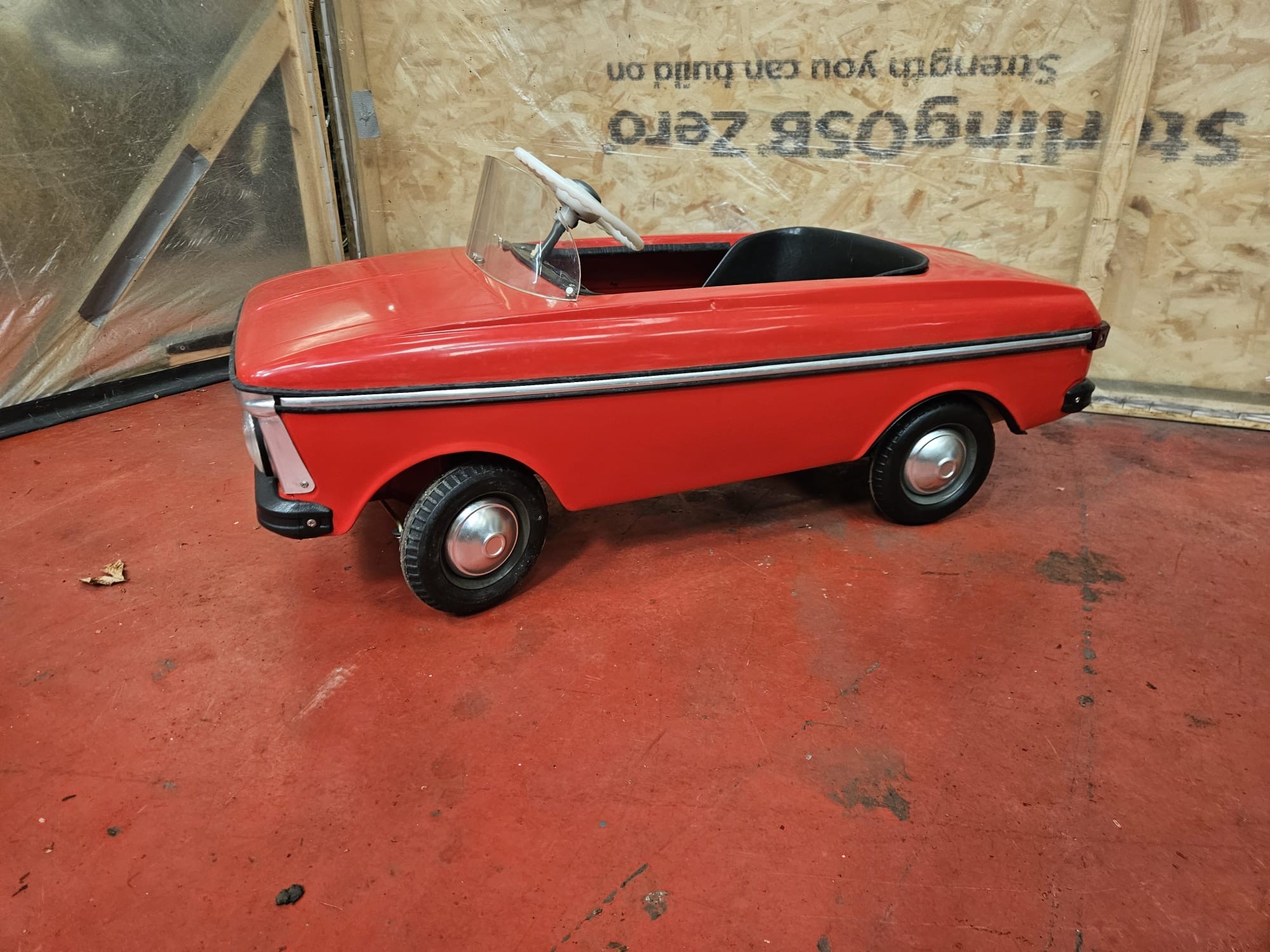 Moskvich Russian Pedal Car - Red, New Old Stock with original shipping box, battery and sales sheet