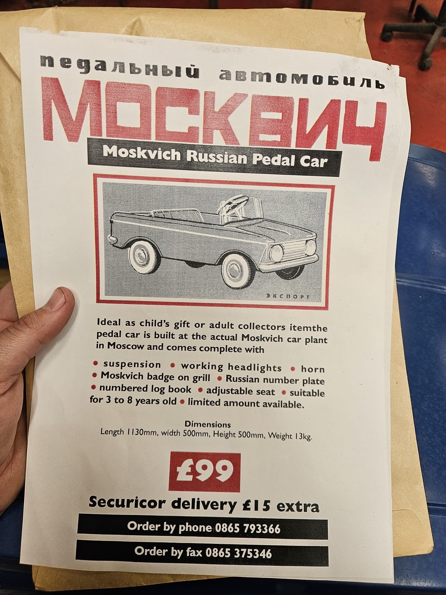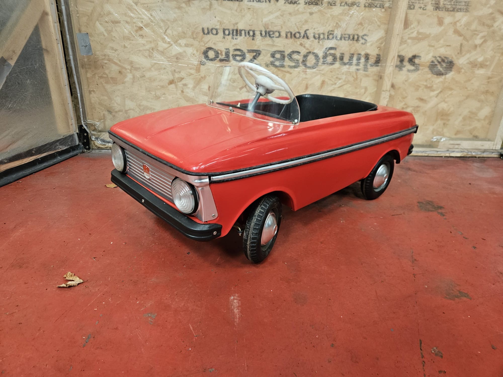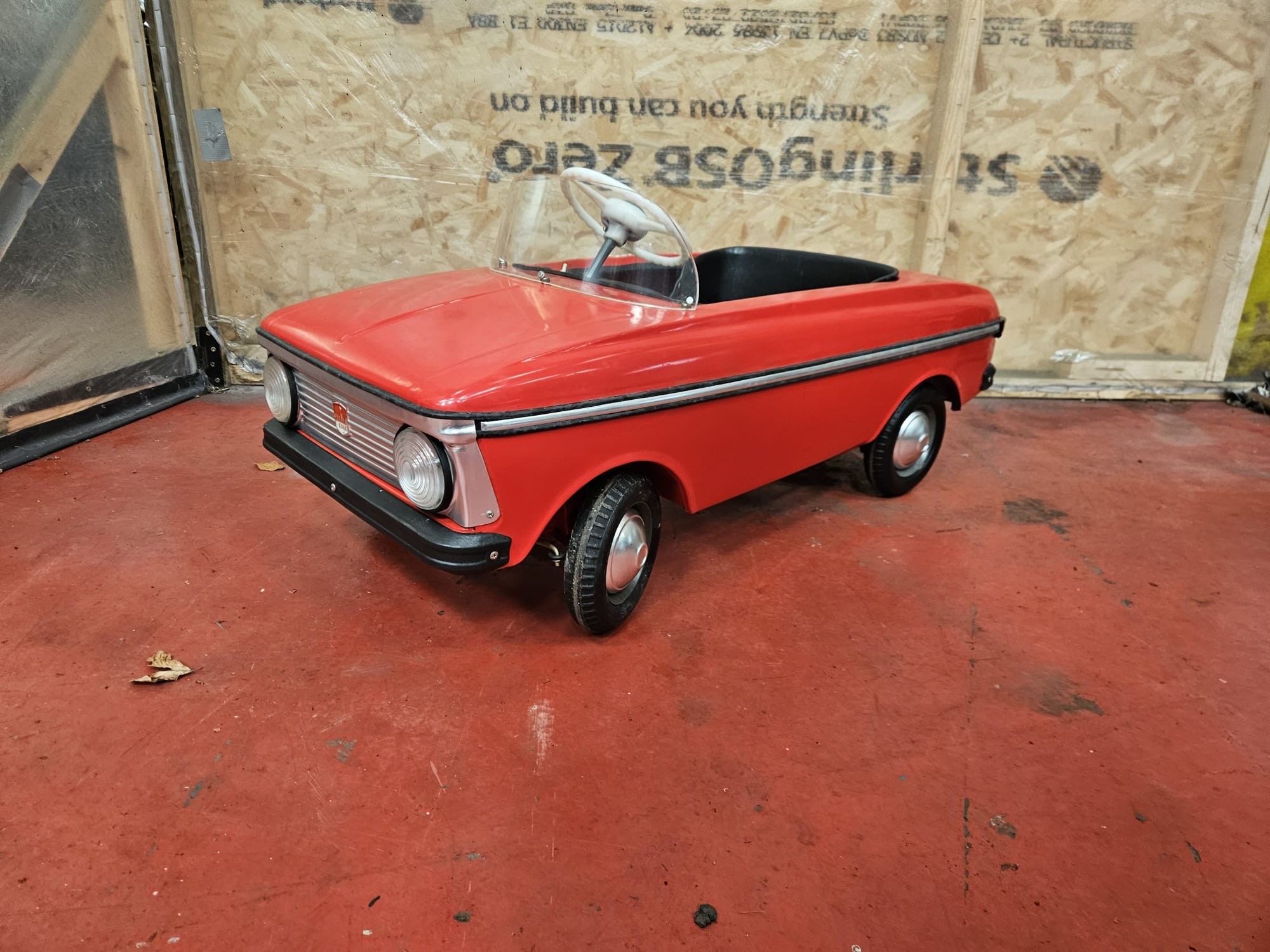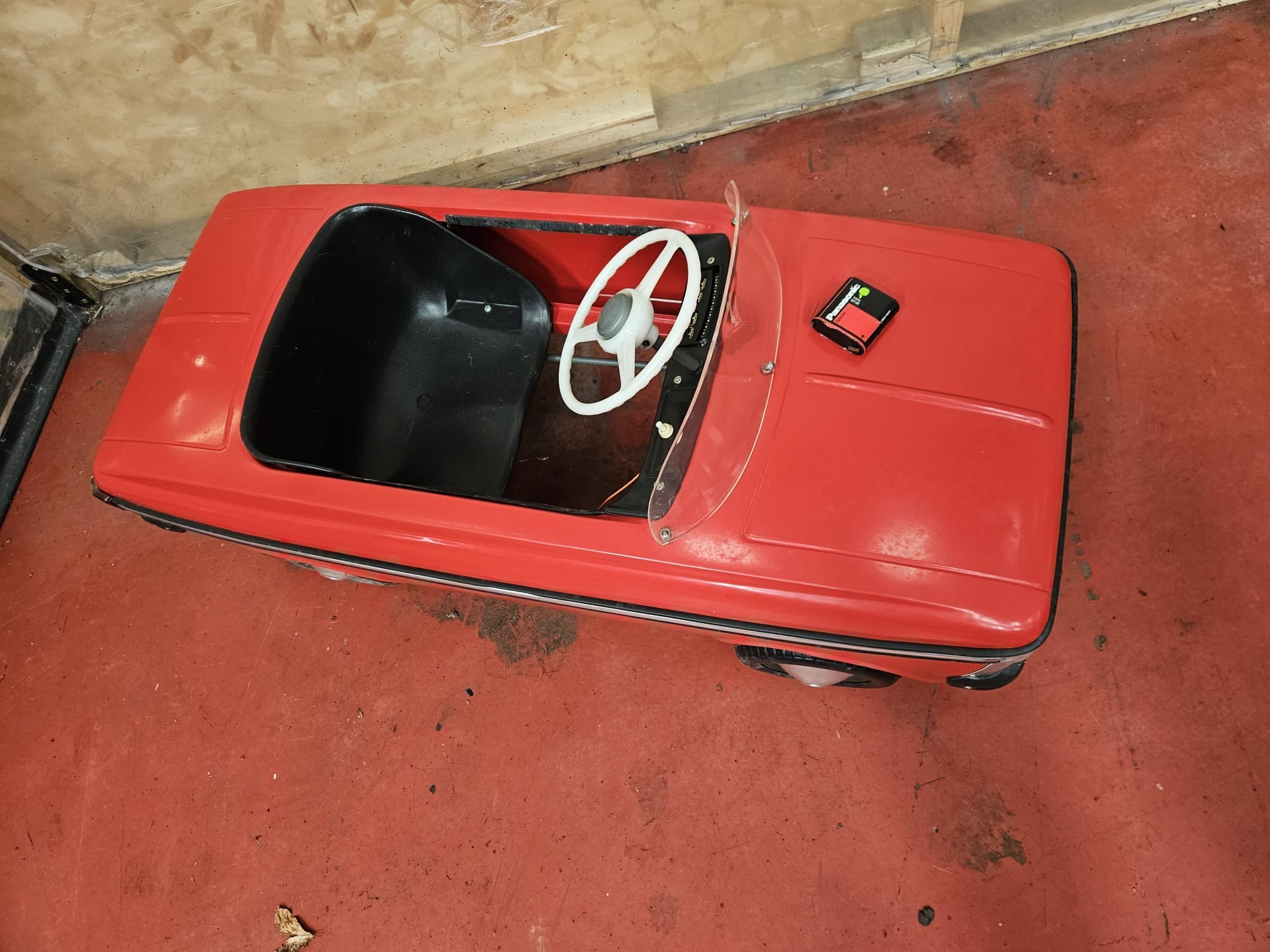Moskvich Russian Pedal Car - Red, New Old Stock with original shipping box, battery and sales sheet