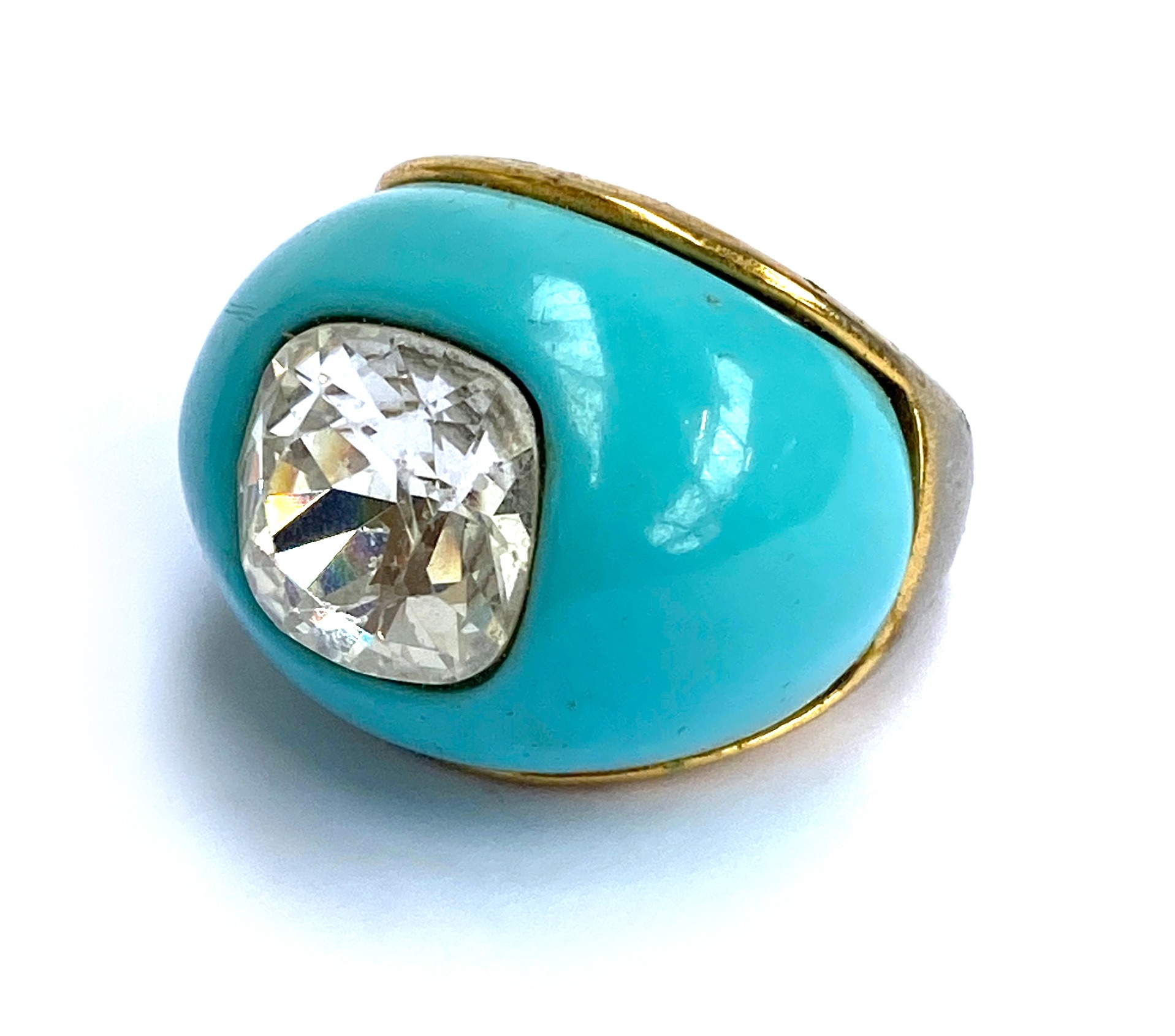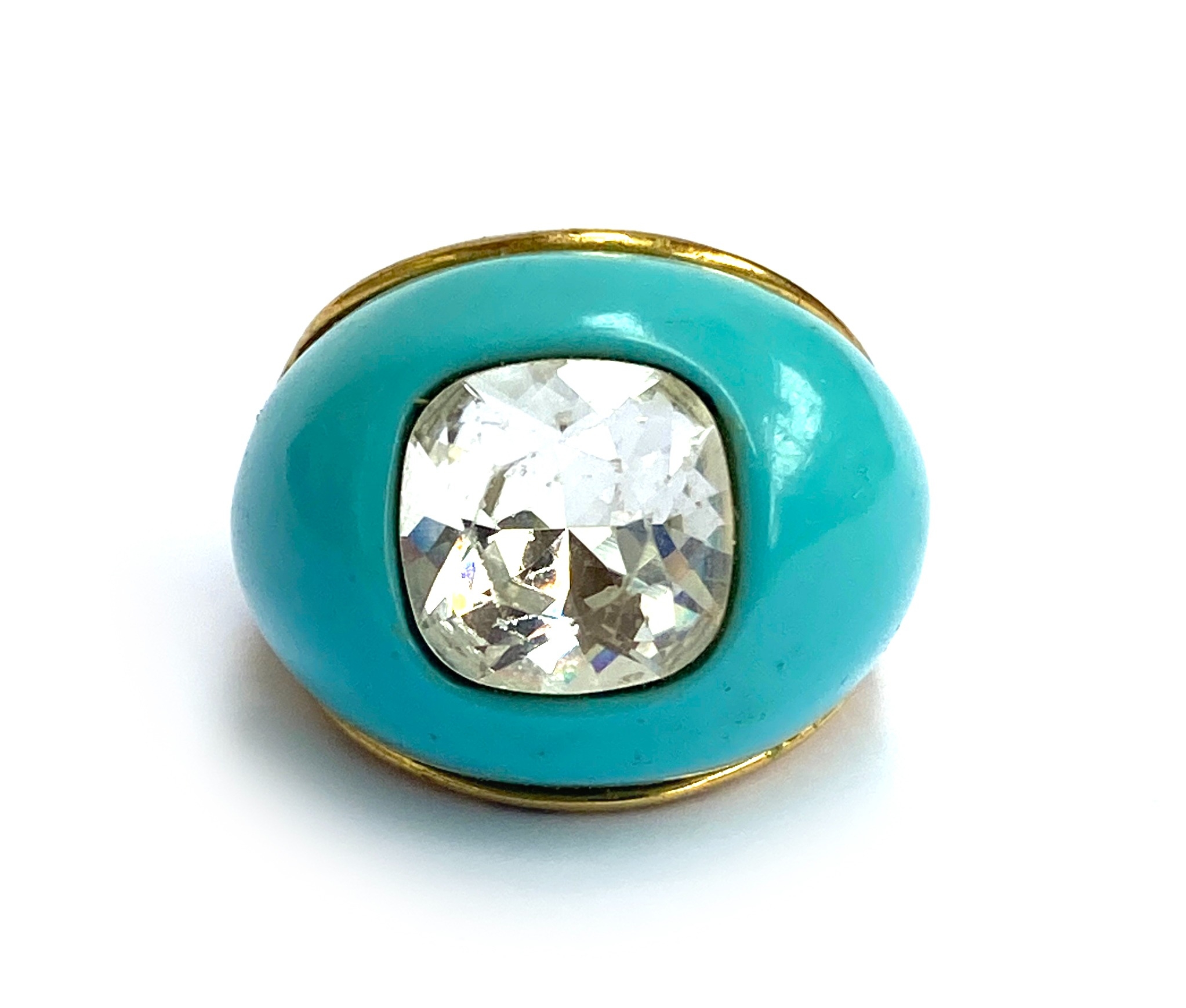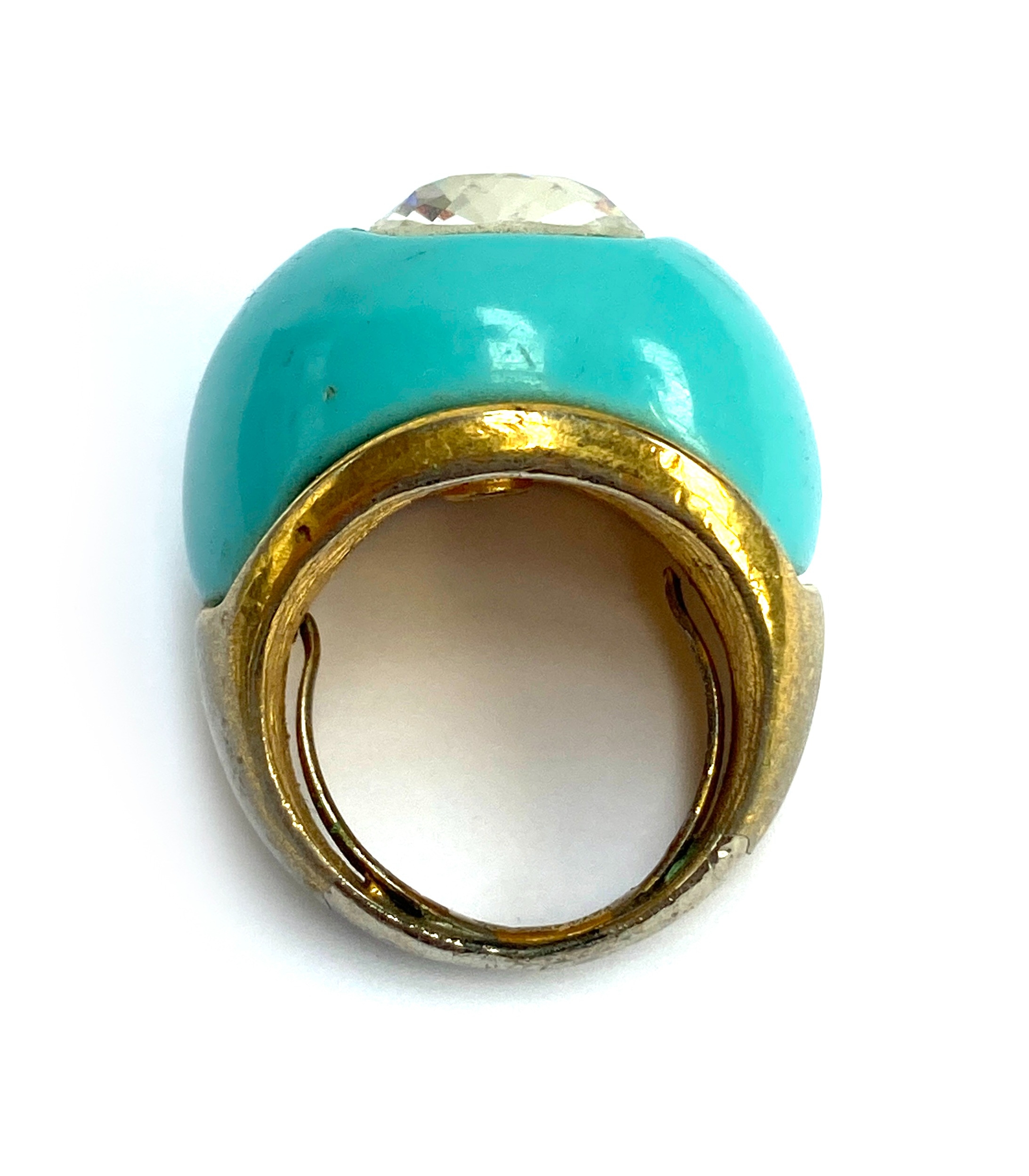 A Kenneth Jay Lane turquoise glass and paste cocktail ring, stamped KJL, size N