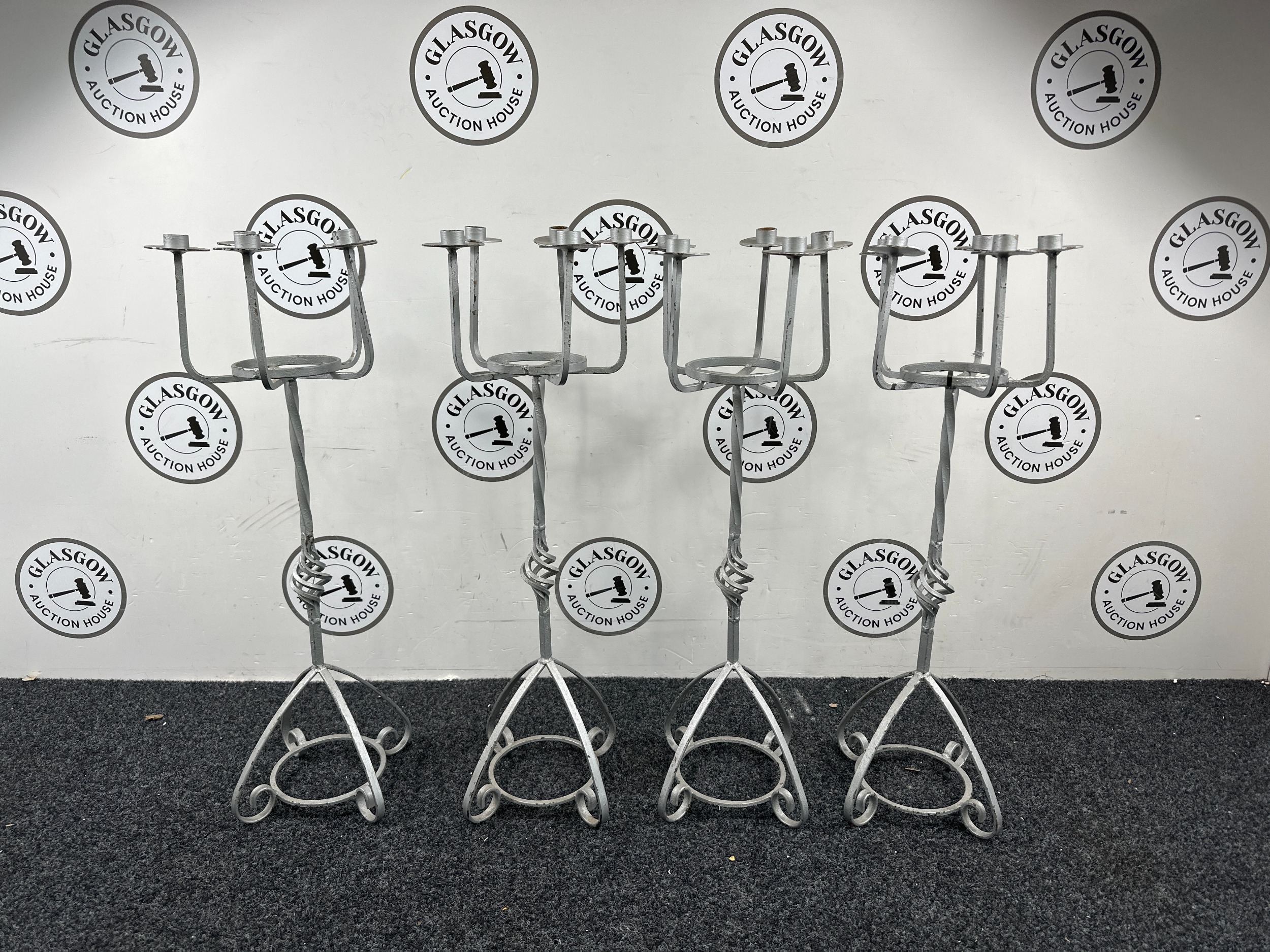 Four 32” Tall Metal Candle Stick Holders - Used