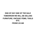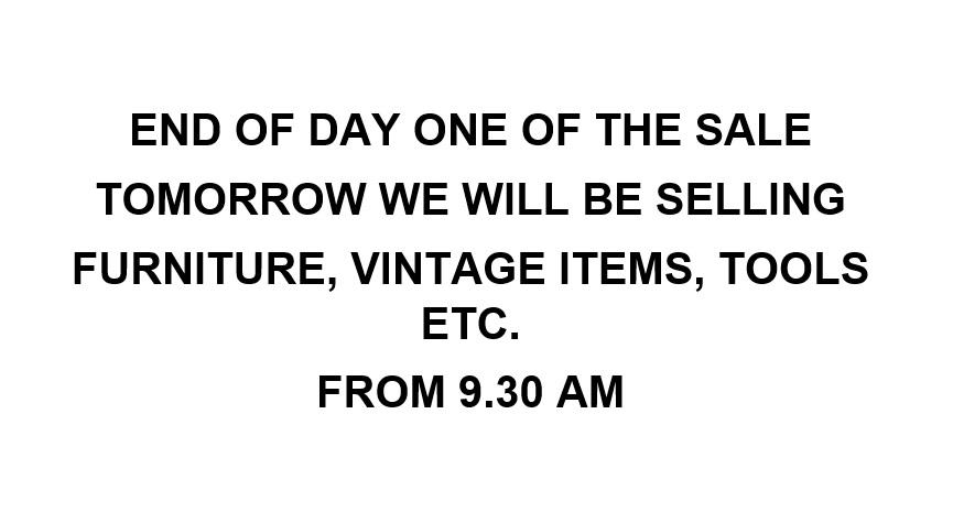 END OF DAY ONE OF THE SALE - TOMORROW WE WILL BE SELLING FURNITURE, VINTAGE ITEMS, TOOLS ETC AT 9.30 AM