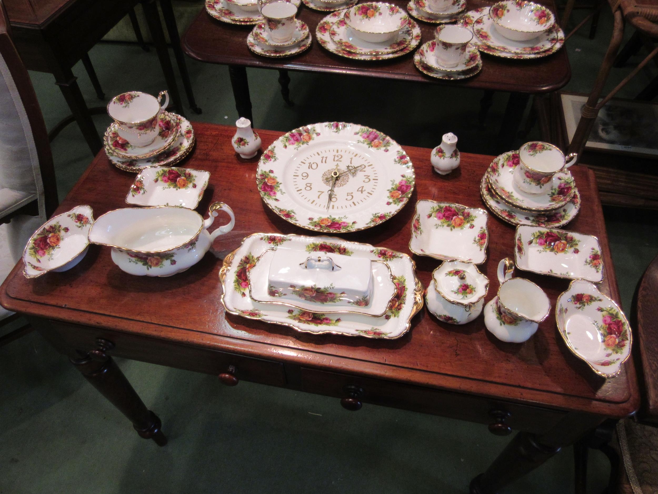 A quantity of Royal Albert "Old Country Roses" china to include clock, dinner and tea wares etc.