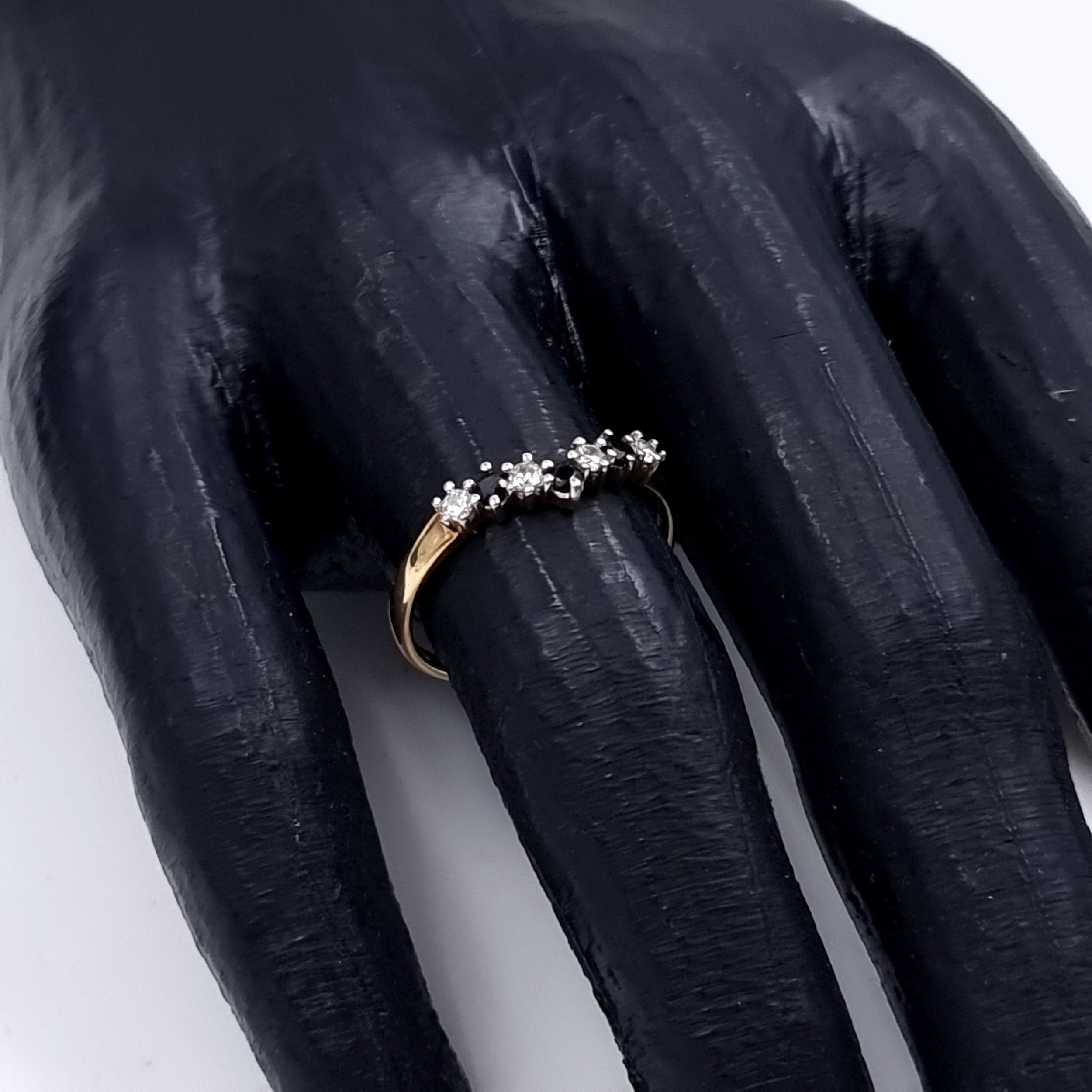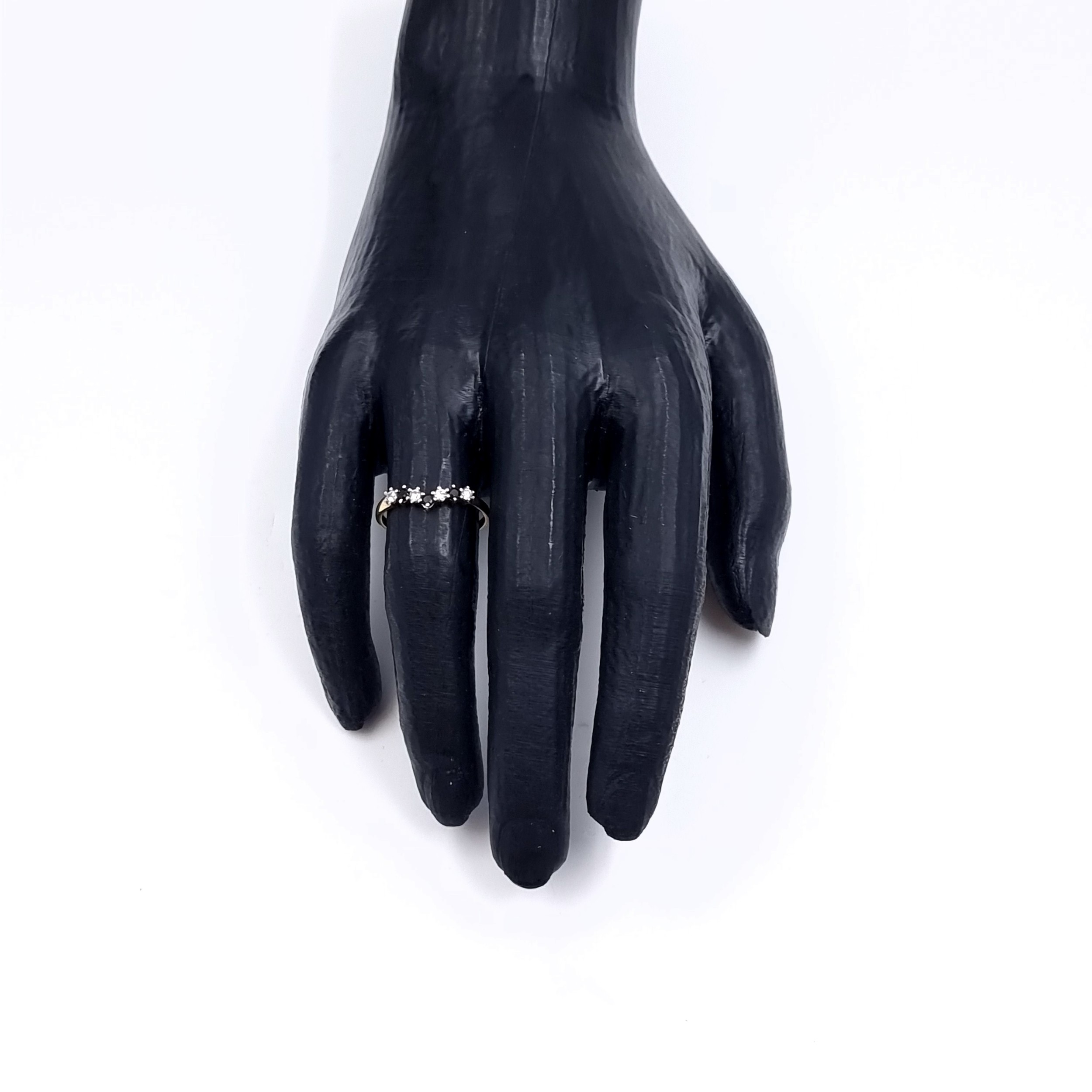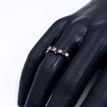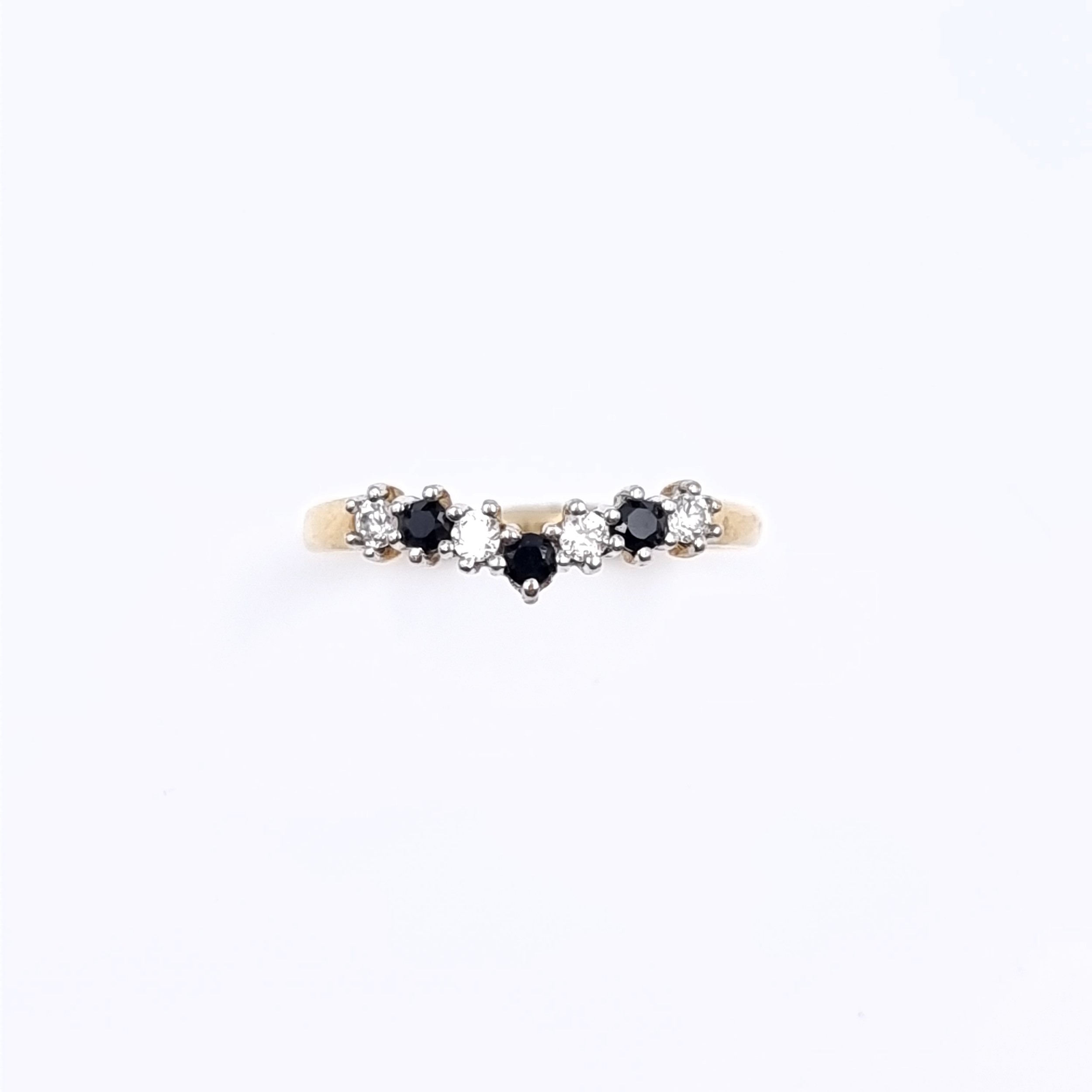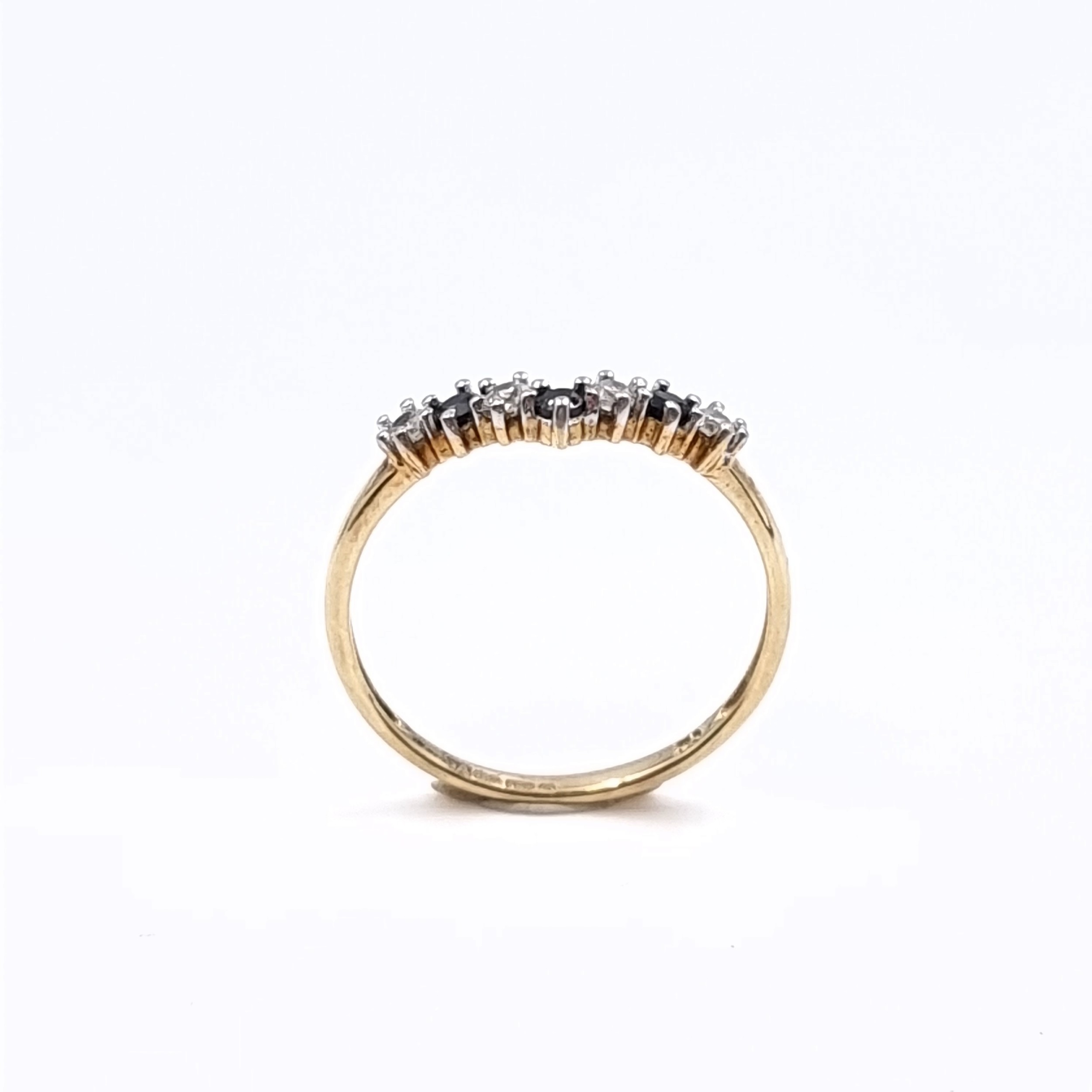 Star Lot: A nine carat gold 375 gemstone wishbone ring. Size P. Weight 1.32 grams.