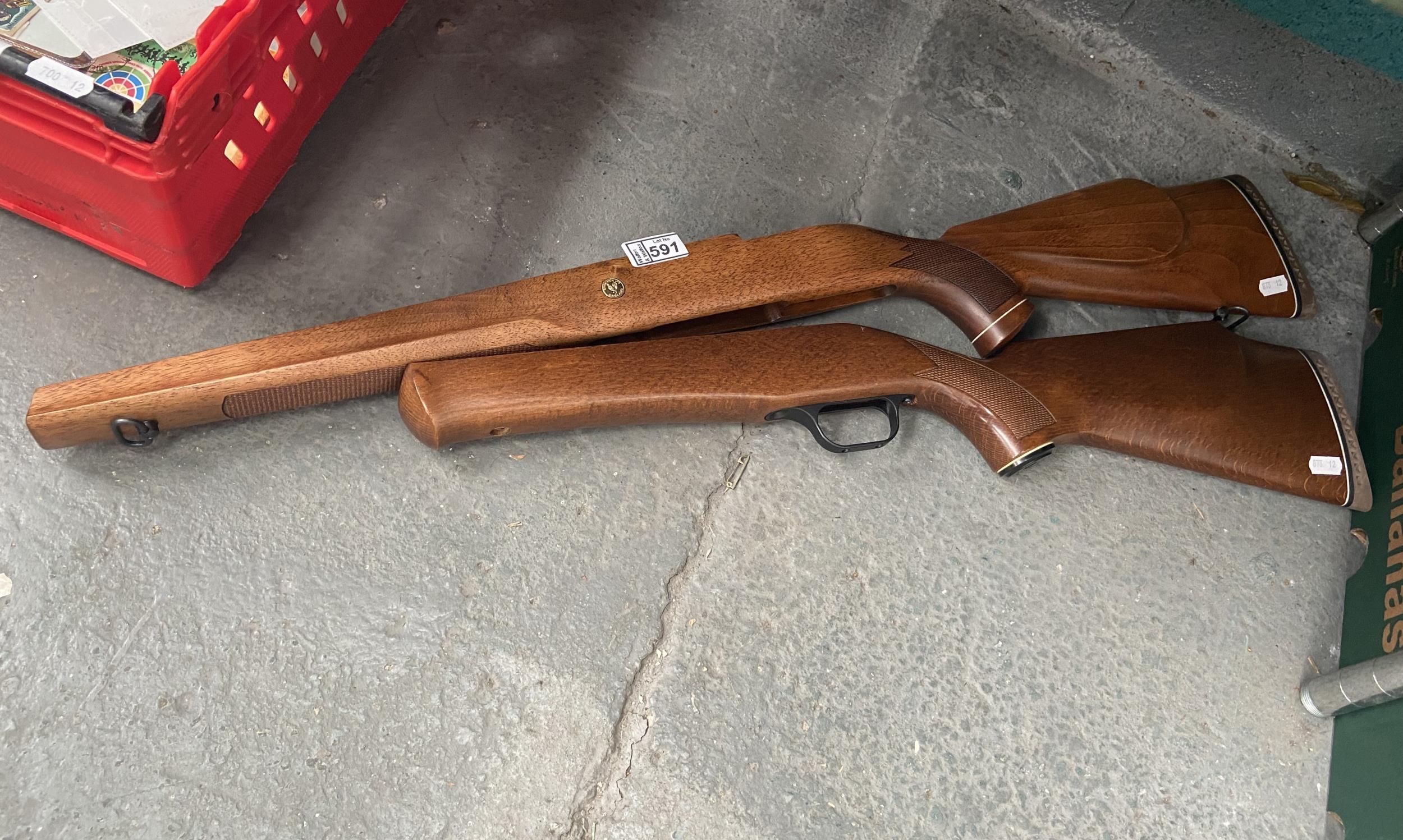 2 wooden rifle mounts including Brocock