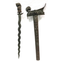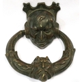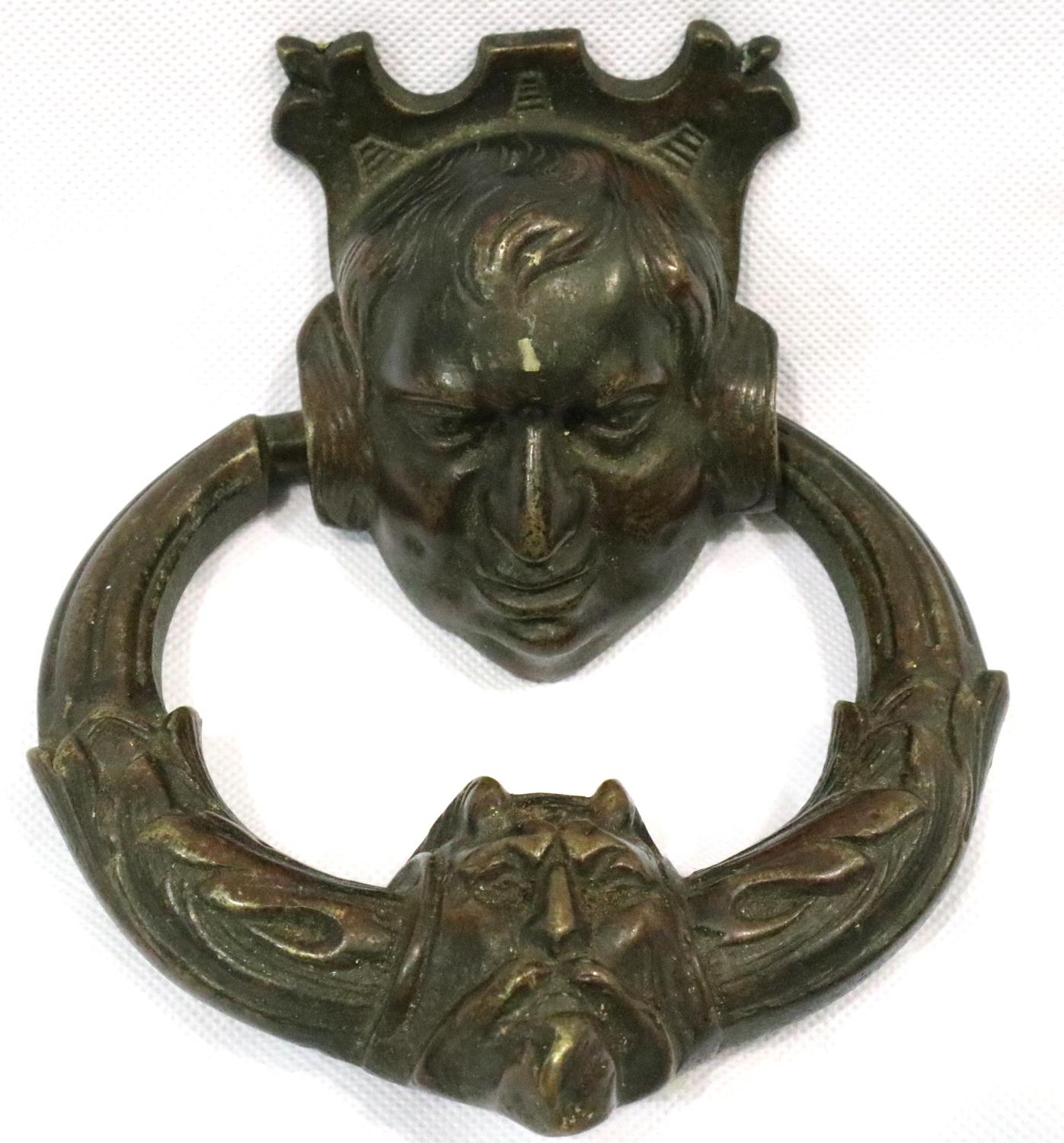 Georgian cast bronze door knocker with Cernunnos mask and gentleman's head, H: 18 cm. P&P Group 2 (£18+VAT for the first lot and £3+VAT for subsequent lots)