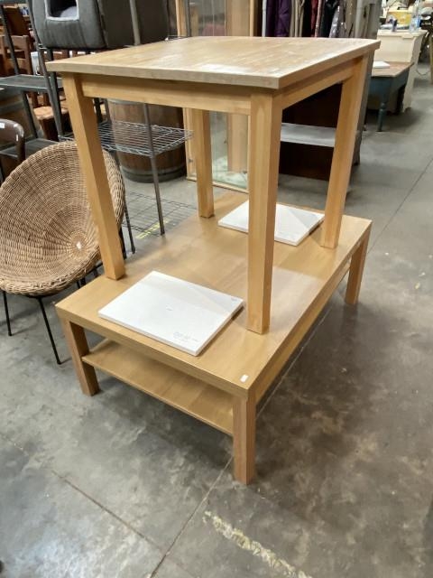 Oak effect coffee table 45H 118W 78D & a beech effect dining table 75H 74W 74D