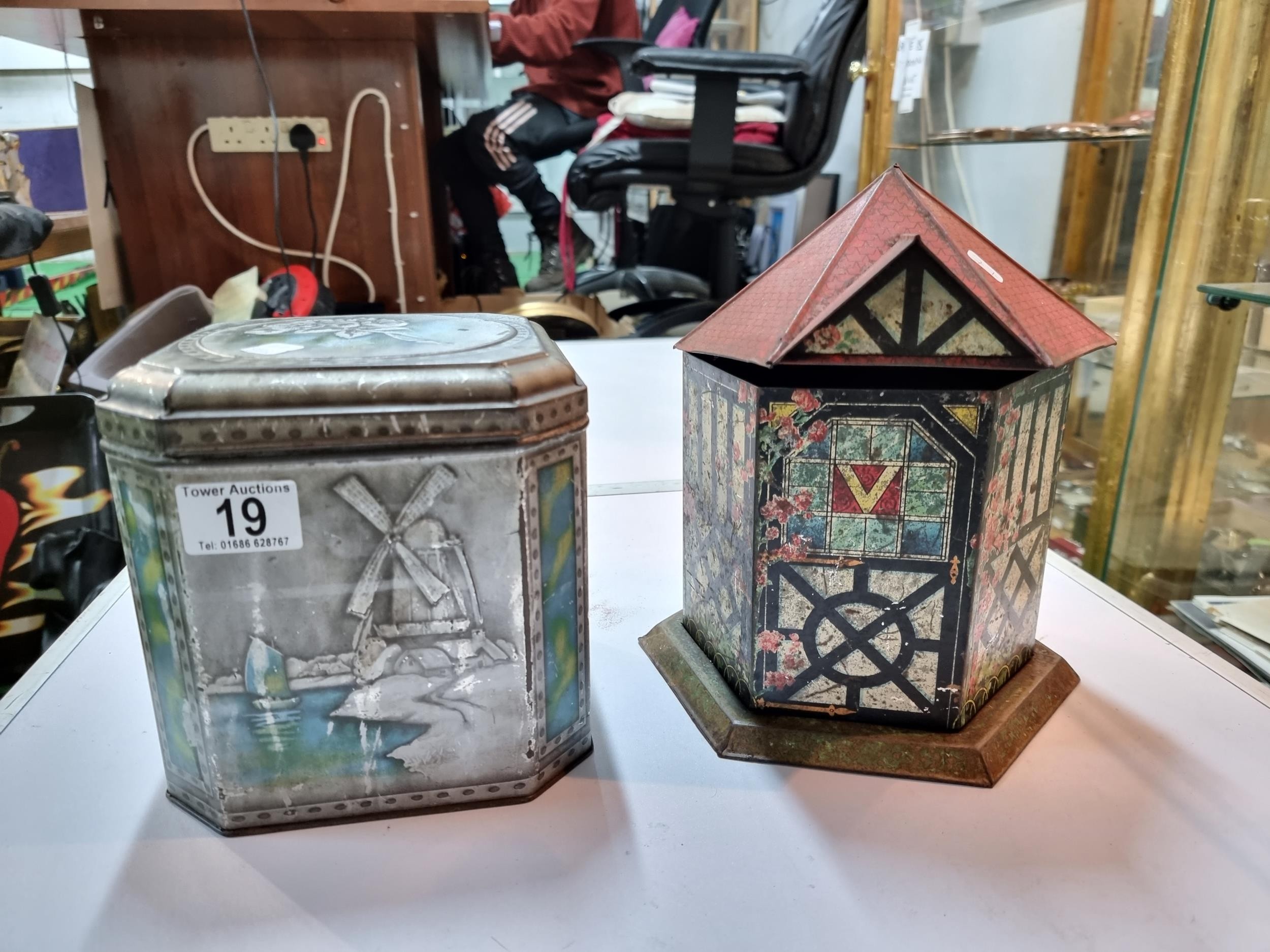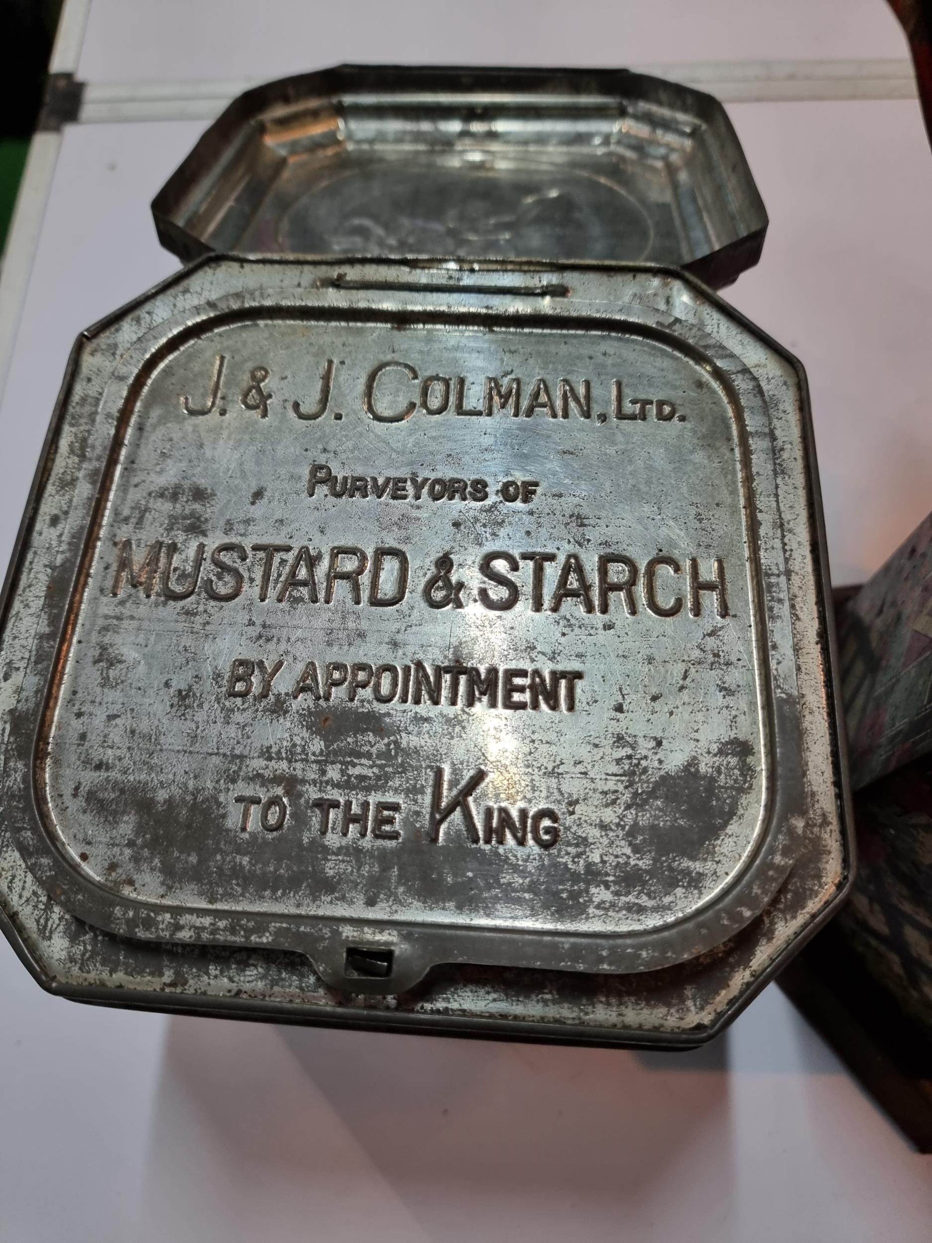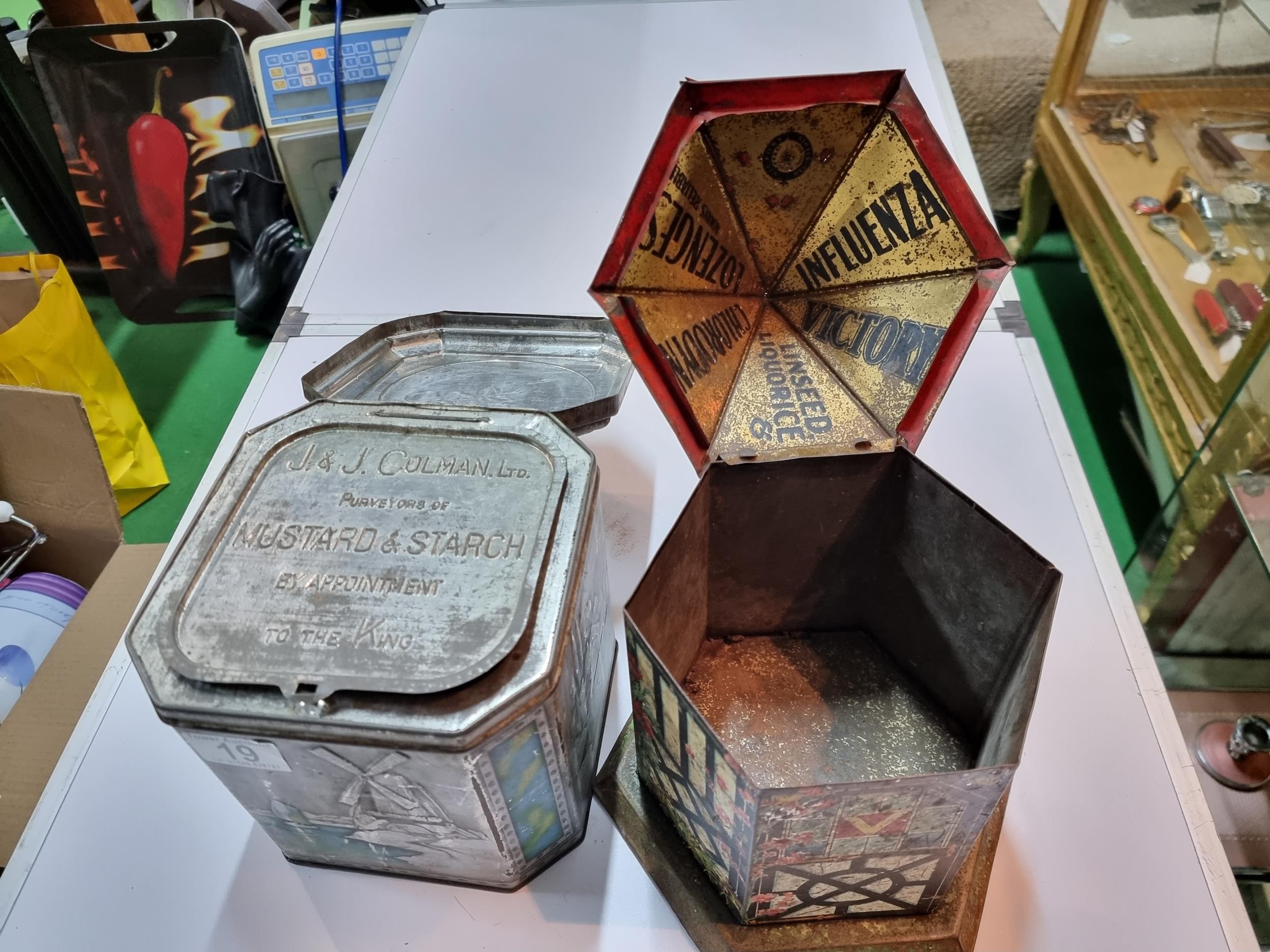 2x good antique vintage tins, 1x is house formed lozenges by Victory and the other J & J Colman Mustard & Starch