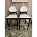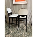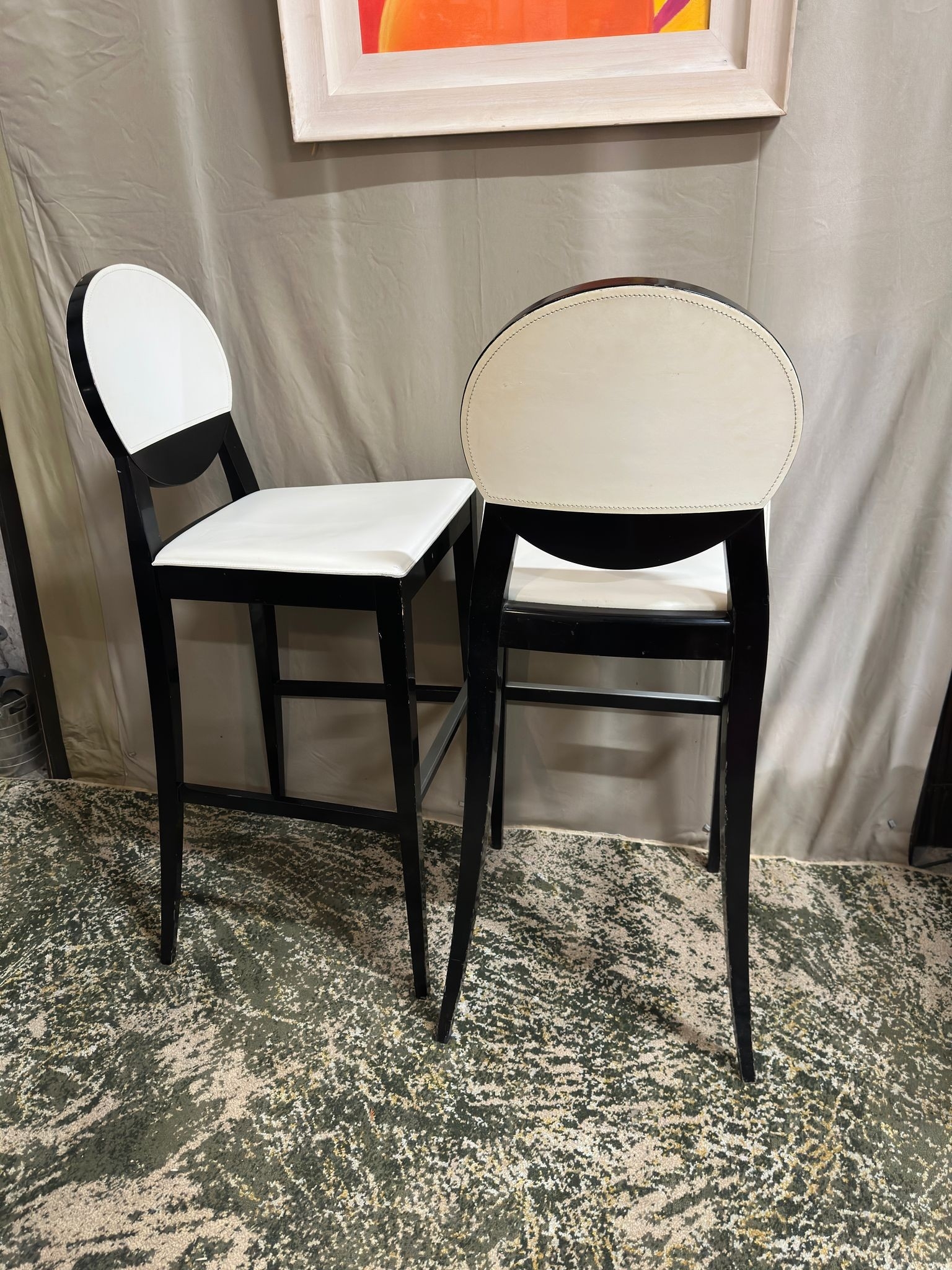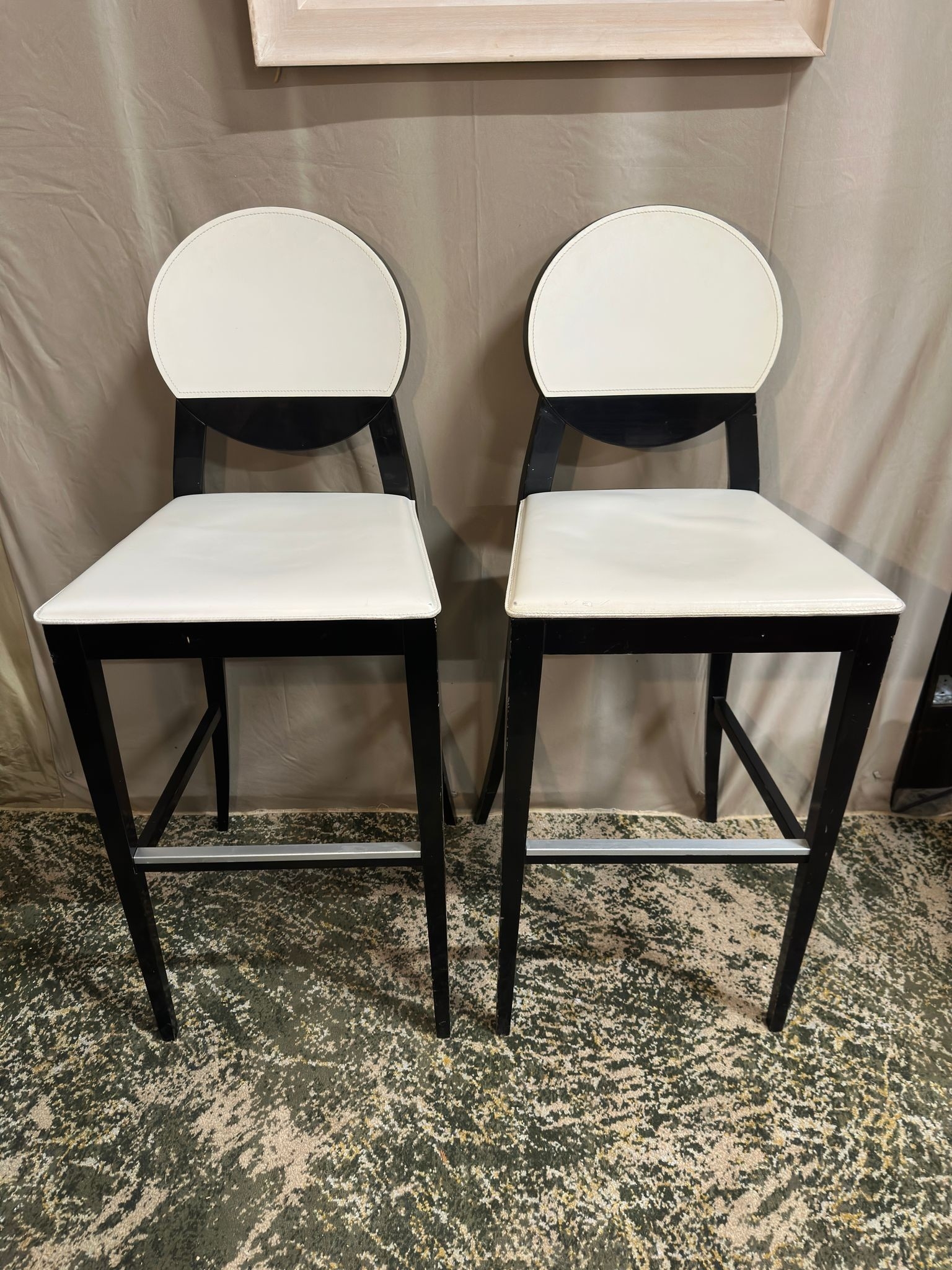 Pair of Designer High Stools, Cream Leather and Black Wood