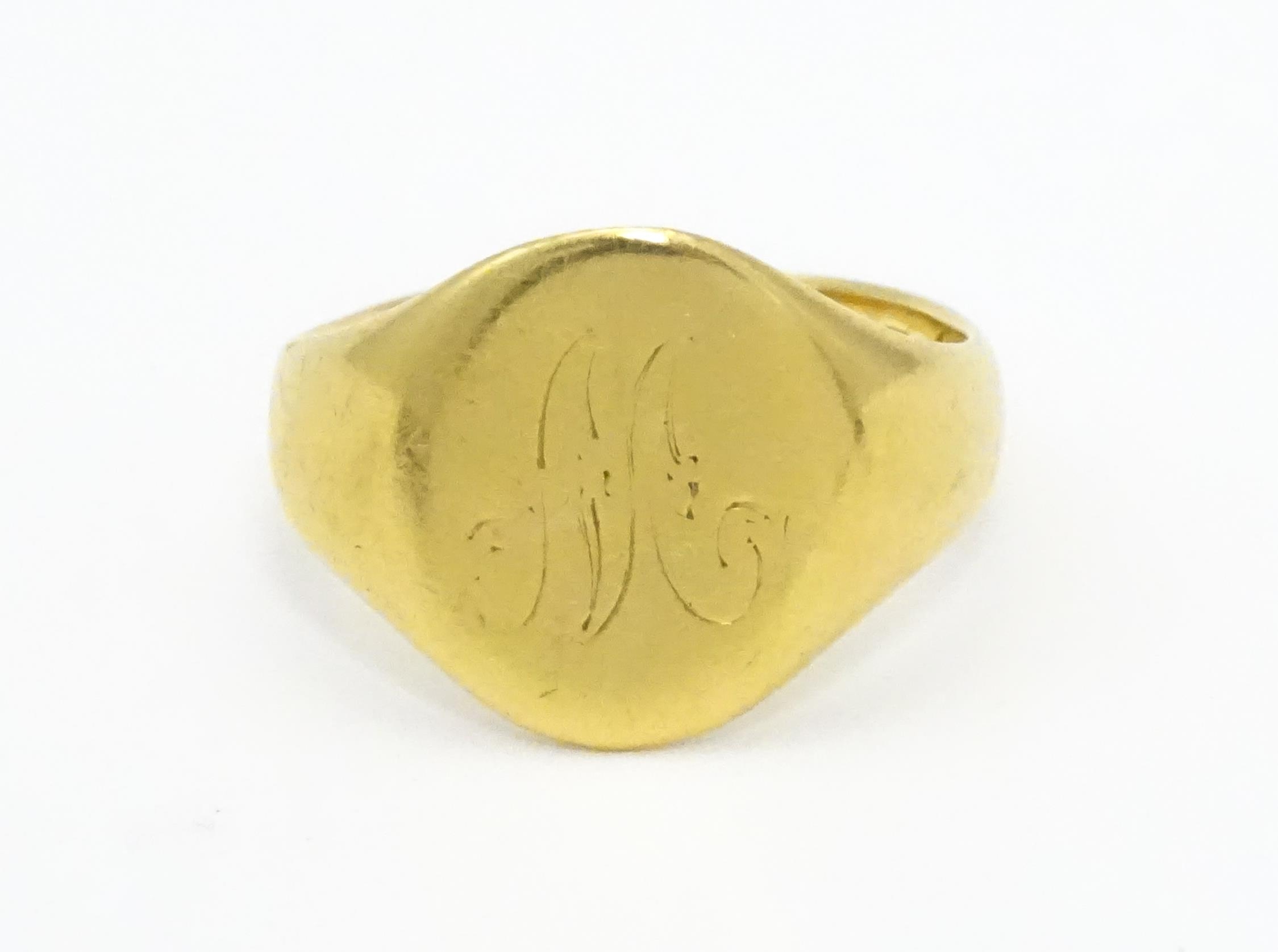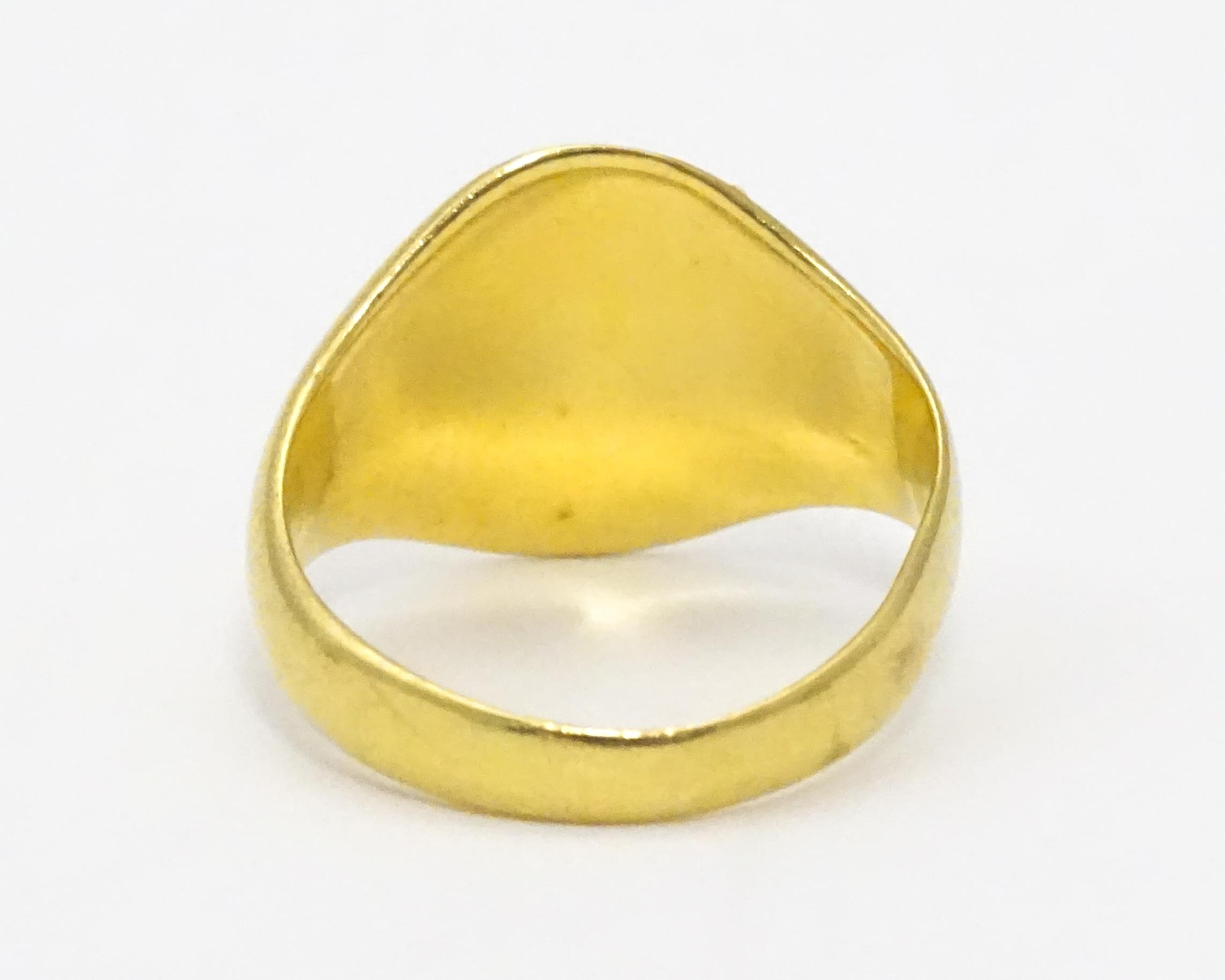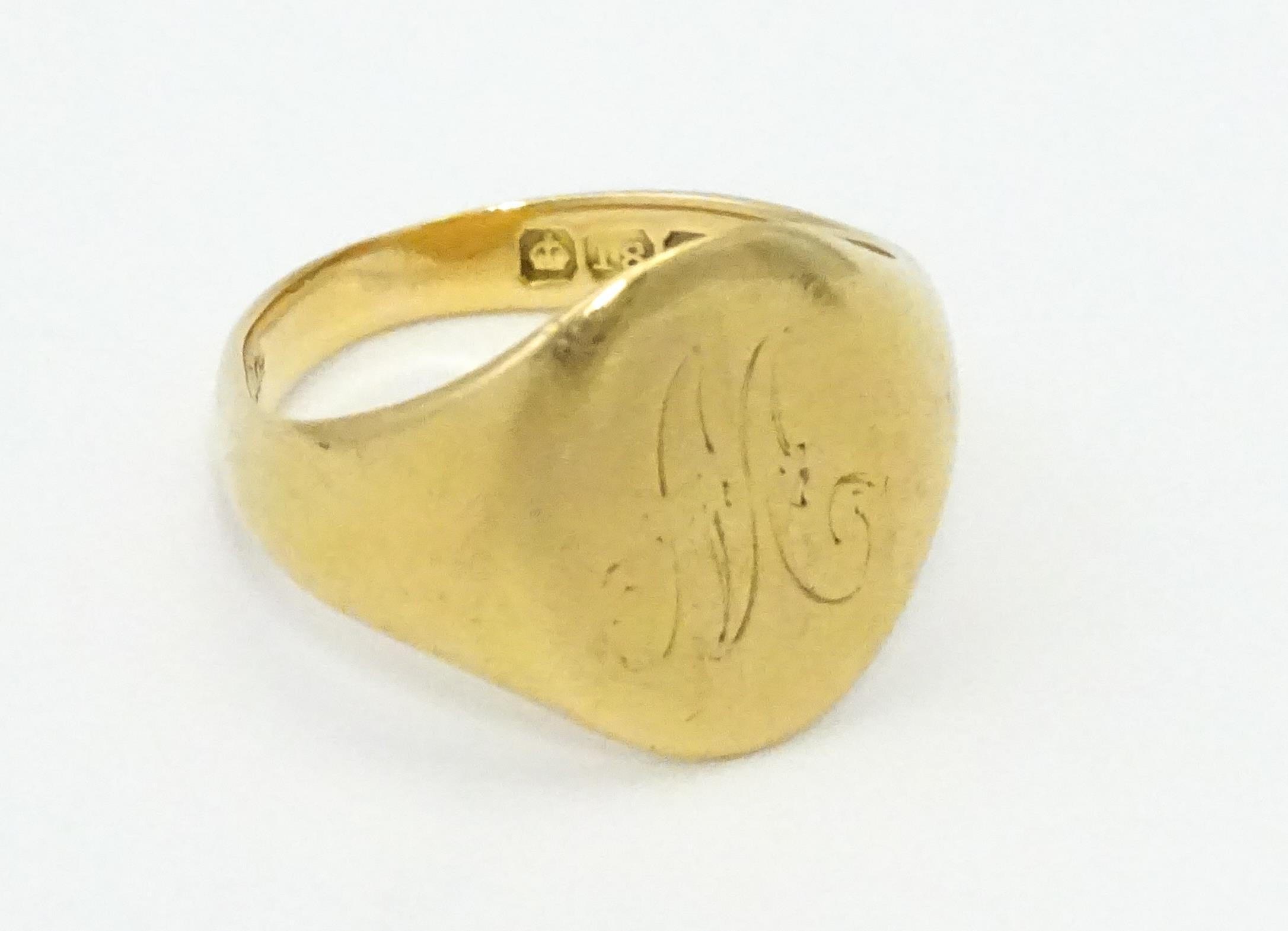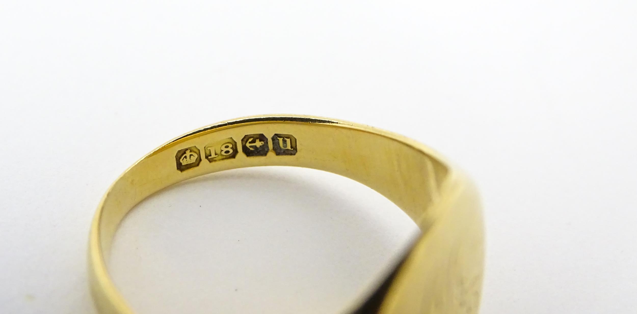 An 18ct gold ring. Ring size approx. M 1/2 (Approx 6.9g)