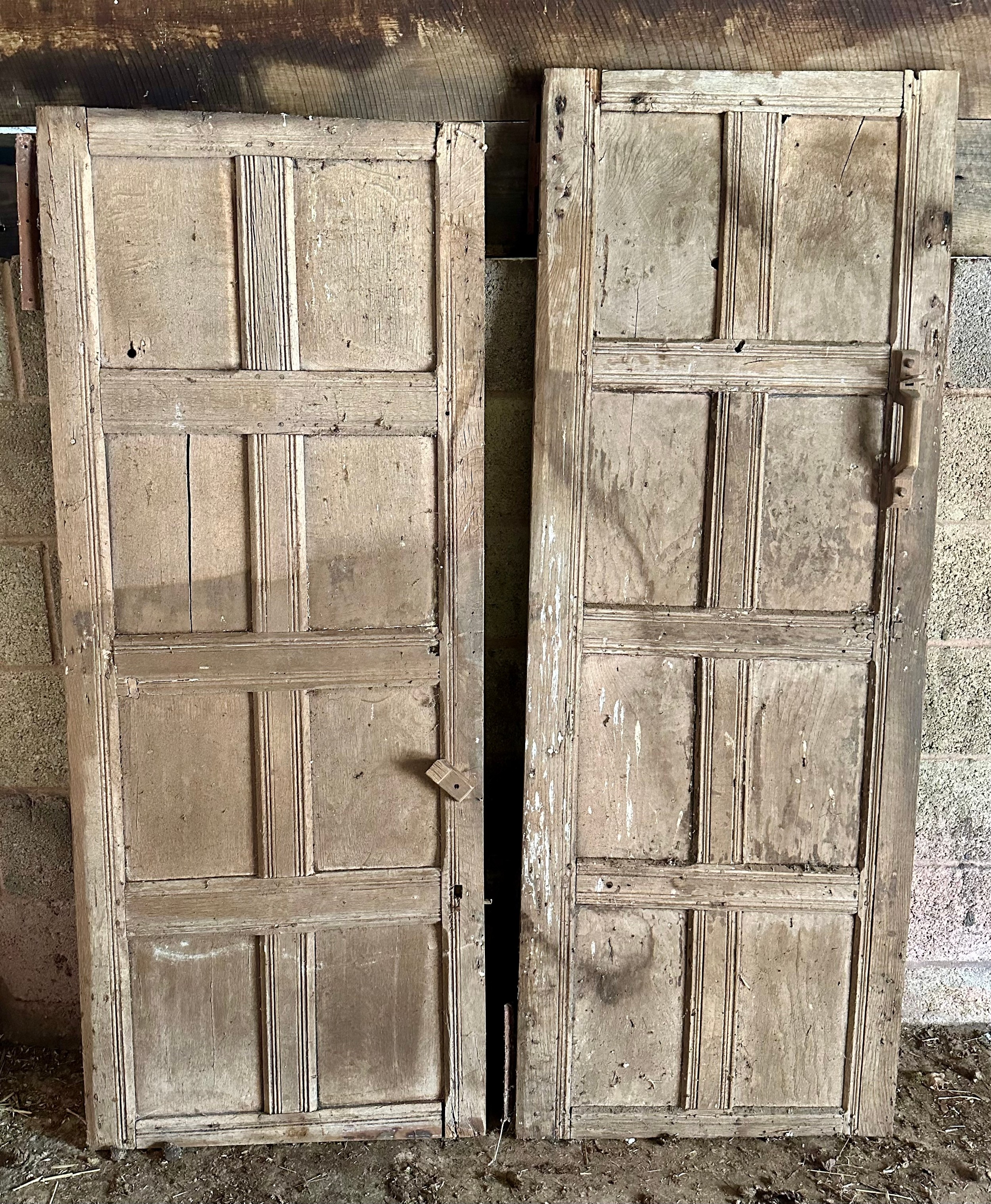 TWO PANELLED OAK DOORS, approx. 68 x 181 cm and 67 x 169 cm